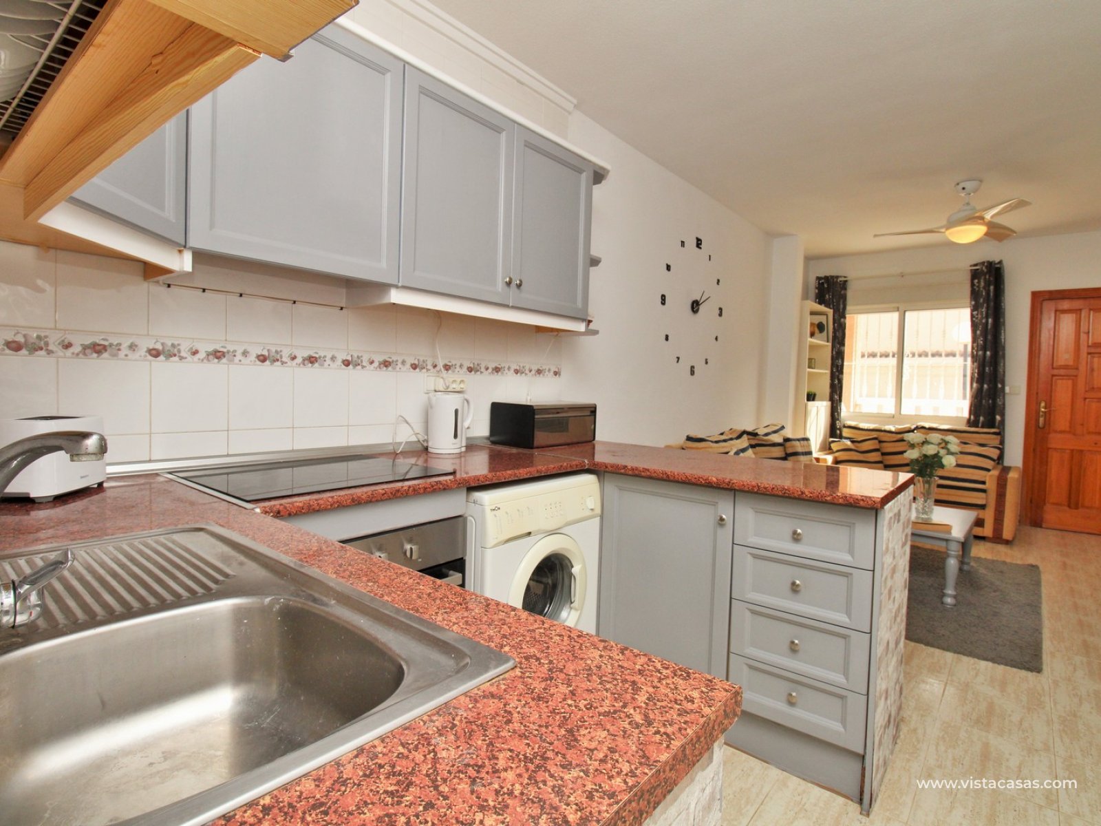 Ten zadbany apartament na parterze z 2 sypialniami i ekspozycją południową znajduje się na osiedlu Florida Golf w Villamartin, oferując komfortowe wnętrza oraz przestrzenie zewnętrzne.