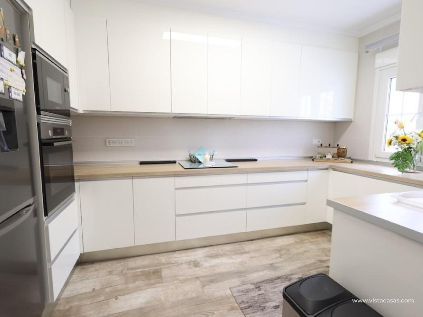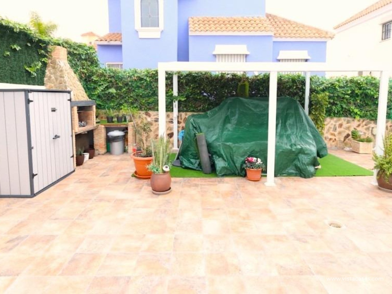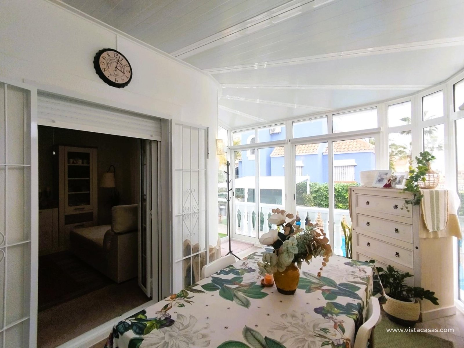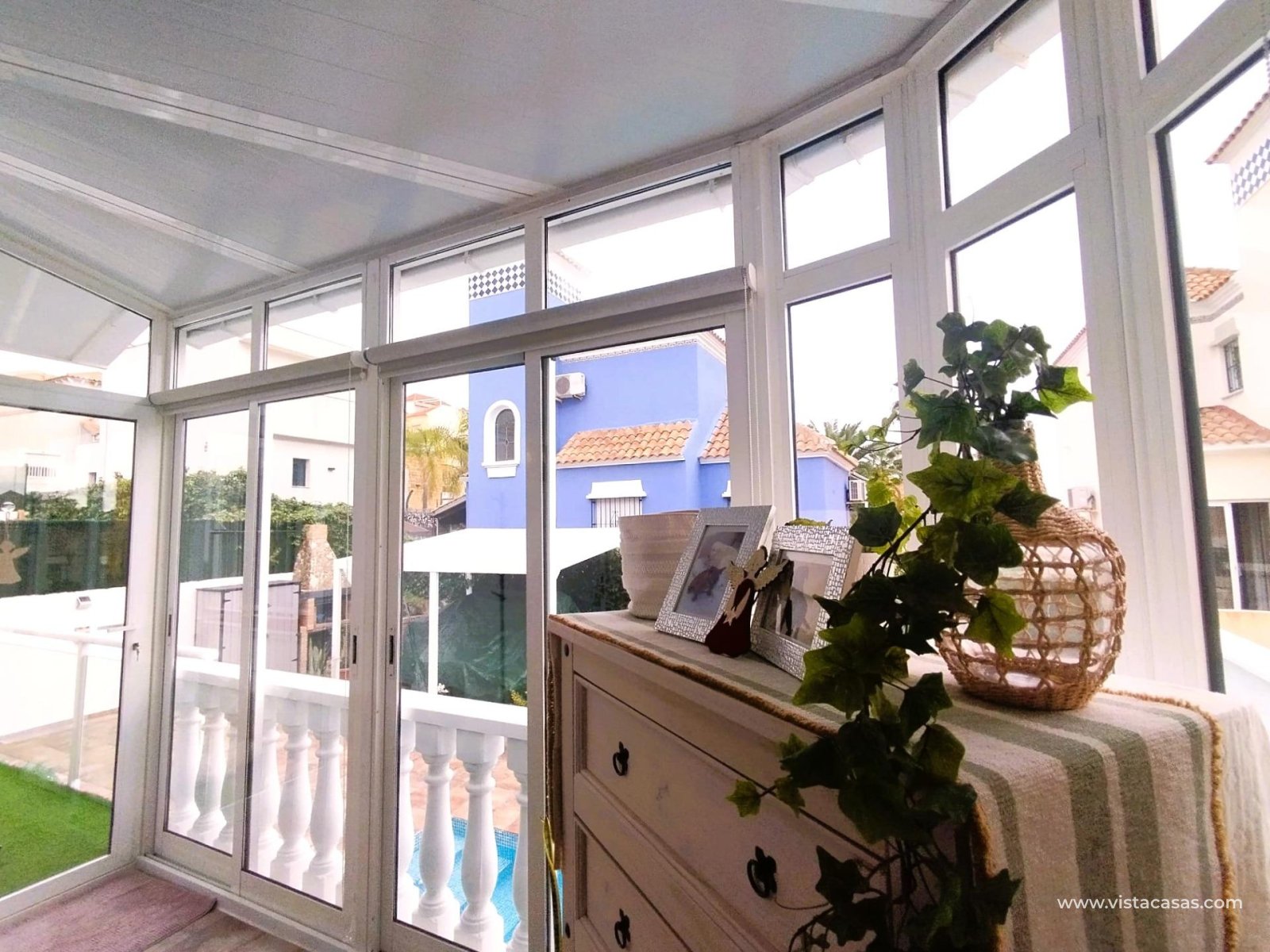 Klejnot w Villamartin! Piękna, niedawno i pięknie odnowiona wolnostojąca willa z przestronnym apartamentem, słoneczna i z dużą ilością przestrzeni wewnętrznej i zewnętrznej.. . Nieruchomość posiada prywatny basen, parking i przyjemne przestrzenie zewnętrzne. Znajduje się w spokojnej okolicy, naprzeciwko parku, ale jednocześnie jest bardzo dobrze skomunikowana i znajduje się w pobliżu supermarketów, restauracji, barów, aptek, banków i wszystkich niezbędnych udogodnień.. . W piwnicy, z osobnym wejściem, znajduje się apartament o powierzchni około 60 m2, obecnie podzielony na przedpokój, przestronną część biurową i salon, jedną sypialnię dwuosobową, w pełni wyposażoną łazienkę, pralnię i garderobę. Istnieje możliwość stworzenia jednej lub dwóch dodatkowych sypialni w części biurowej. W piwnicy znajduje się również duży schowek, oddzielony od tej części.. . Główny budynek ma dwa piętra. Na parterze znajduje się przeszklona weranda, przyjemny hol wejściowy, sypialnia z podwójnym łóżkiem i szafą wnękową, w pełni wyposażona łazienka, przestronny salon z jadalnią oraz oddzielna kuchnia. Stąd można przejść do jasnej oranżerii z bezpośrednim dostępem do ogrodu z tyłu domu.. . Na piętrze znajdują się dwie sypialnie z podwójnymi łóżkami (z których jedna jest obecnie wykorzystywana jako garderoba), w pełni wyposażona łazienka oraz taras z widokiem na ogród.. . W tylnej części ogrodu znajduje się piękny basen, strefa relaksu z pergolą oraz miejsce na grilla. Z przodu, oprócz miejsca parkingowego, zainstalowano niedawno szafki i aluminiową pergolę.. . Sprzedaje się w stanie częściowo umeblowanym (zgodnie z wykazem wyposażenia).. . Bardzo zadbana, wszechstronna, przestronna, jasna, komfortowa i cicha nieruchomość, w 100% gotowa do zamieszkania. Idealna jako dom rodzinny, a także dla osób poszukujących dodatkowej niezależnej przestrzeni. Pokochasz ją!