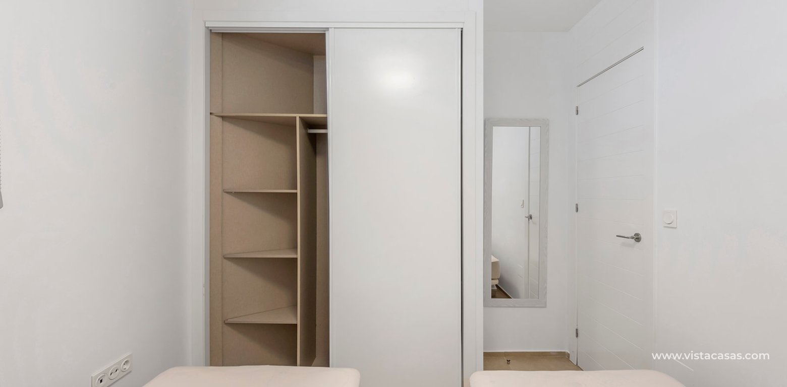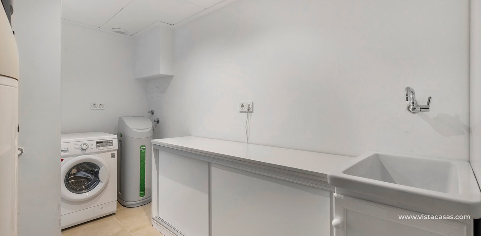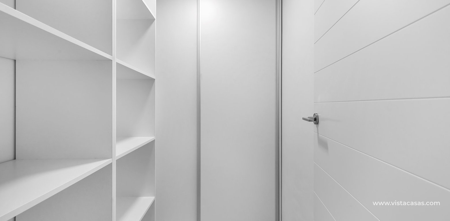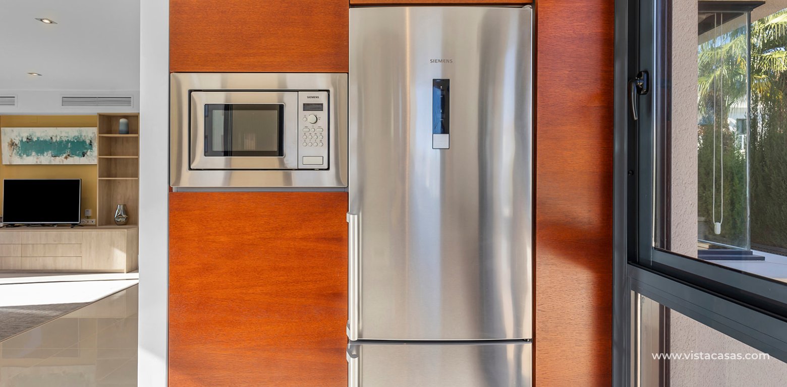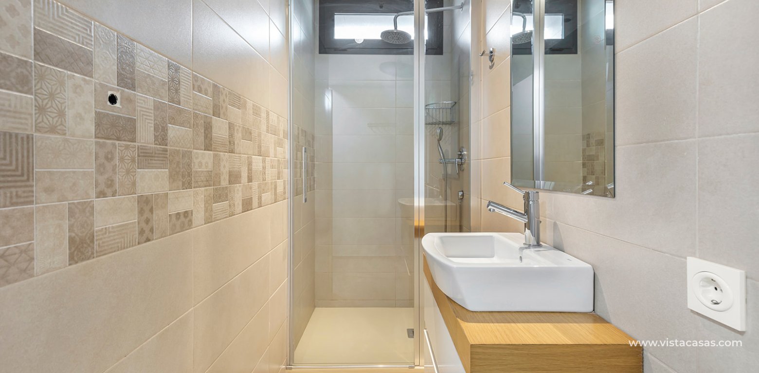 Luxury villa in La Zenia, Orihuela Costa. This villa is situated in an exclusive residential area and has its own private pool and a plot of 410m2. The property has 250m2 built area divided into 4 floors. On the ground floor there is a spacious living room with open plan kitchen, 1 bedroom, 1 bathroom and terrace with access to the pool. On the semi-basement floor there is a living room with open plan kitchen, 2 bedrooms and 1 bathroom. This floor also has a sauna and shower. On the first floor there are 2 bedrooms, each with en-suite bathroom and a large terrace. On the top floor there is a large solarium of 46m2. La Zenia is close to Cabo Roig, Campoamor and Playa Flamenca. It is a tourist area located close to all amenities of the famous La Zenia Boulevard shopping centre. A few minutes from the N-332 and the Mediterranean motorway AP-7 towards Alicante and Cartagena. There are also around the golf courses of Villamartin, Las Ramblas, Campoamor and Las Colinas.