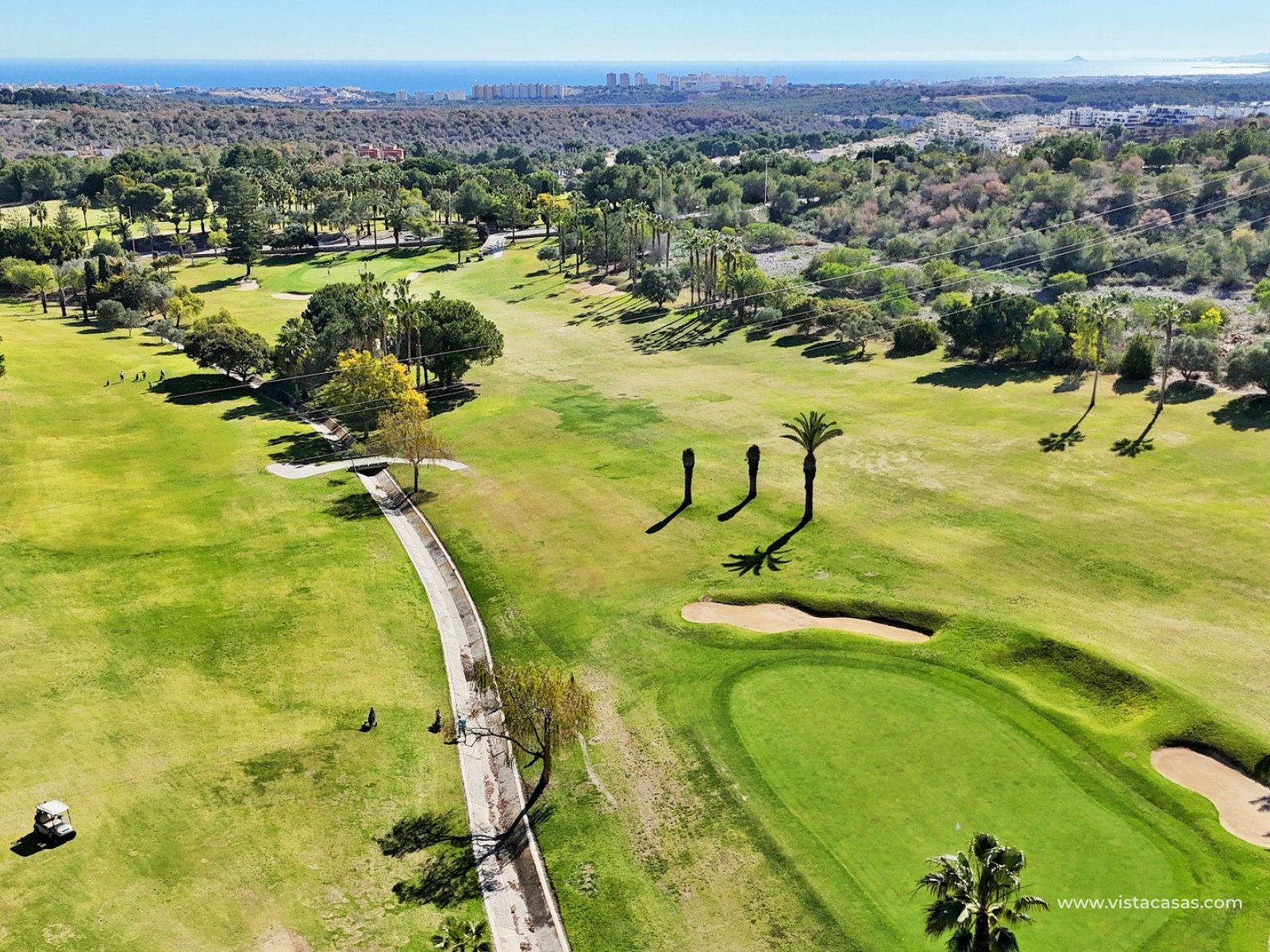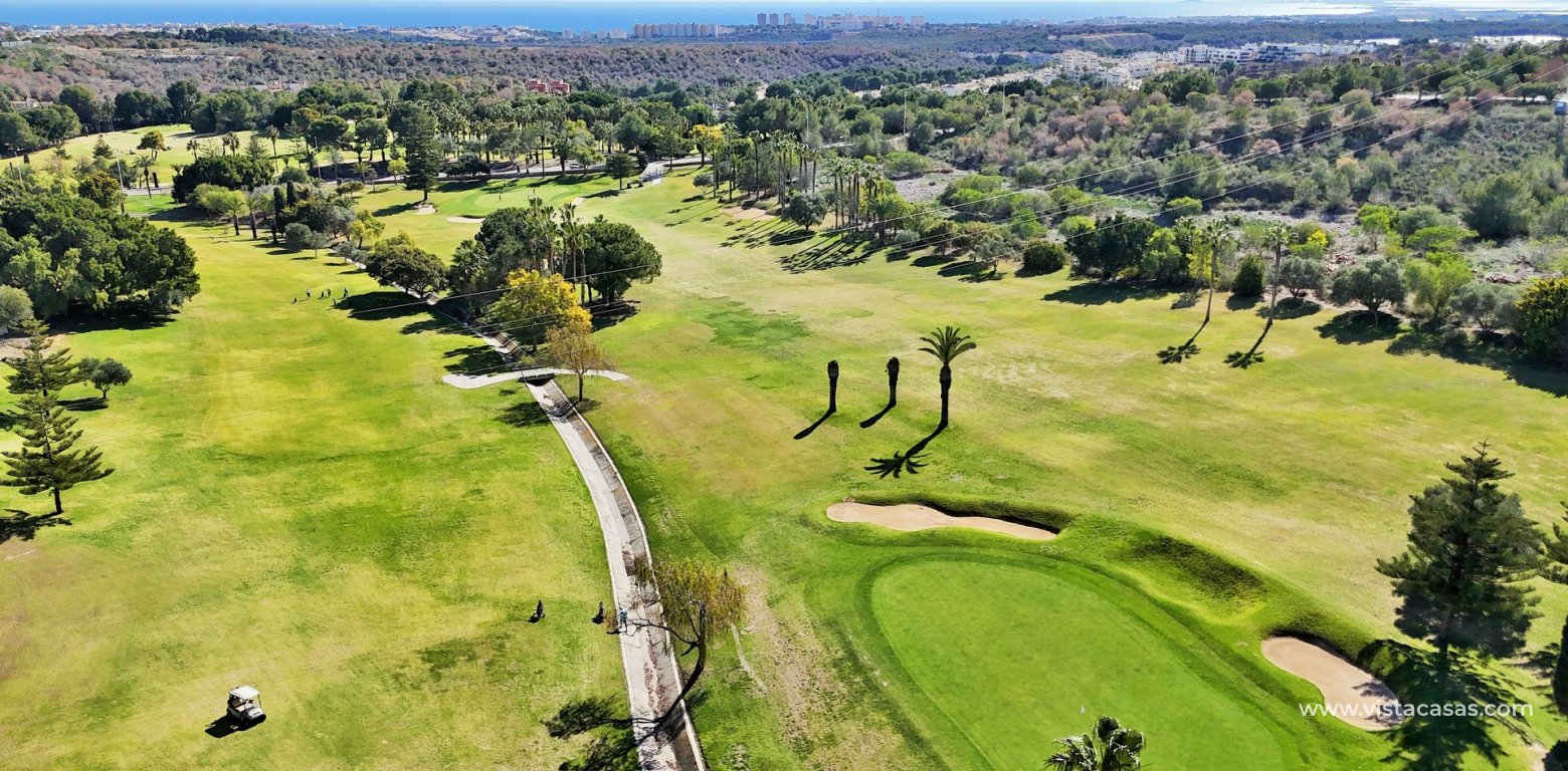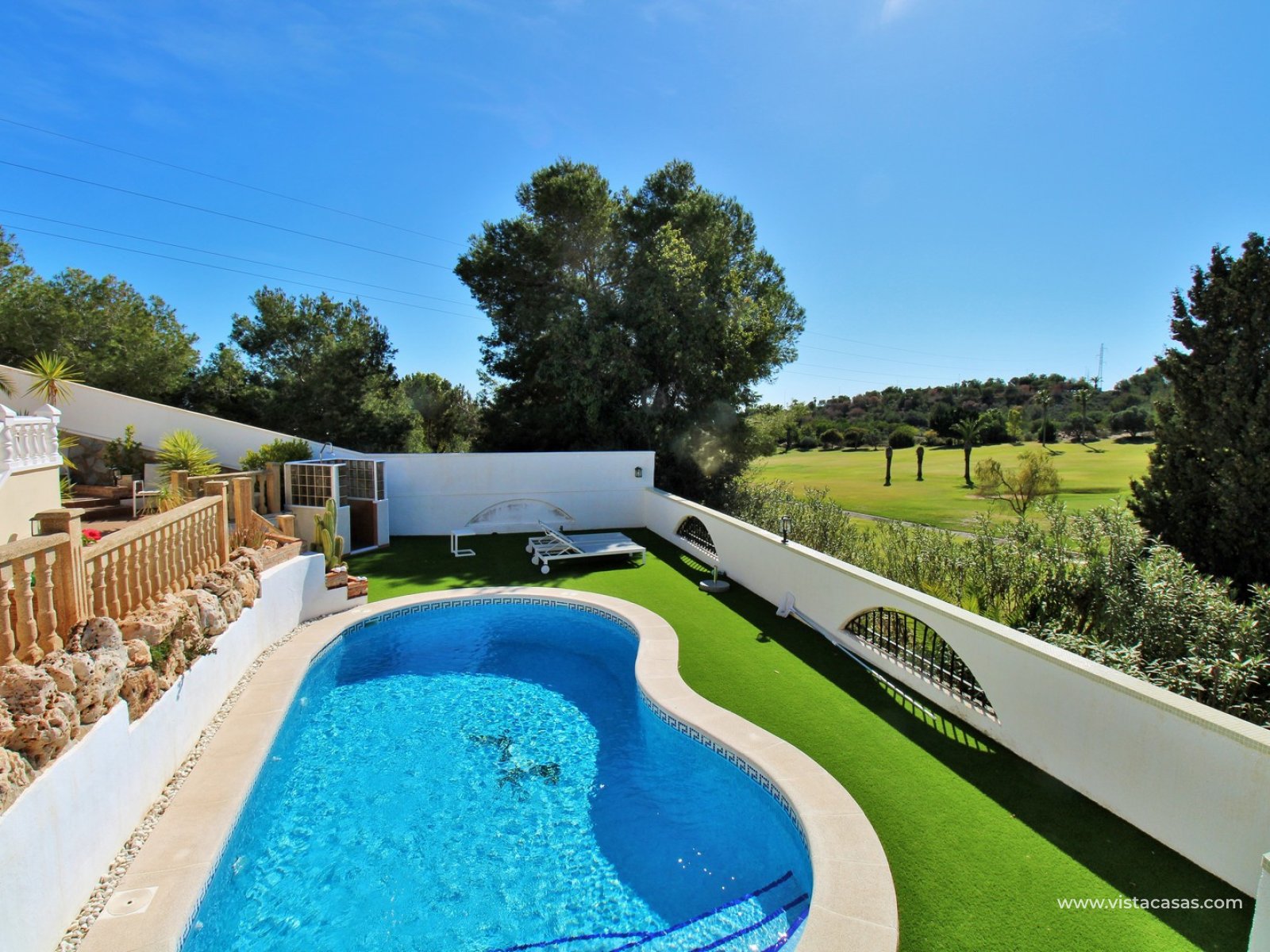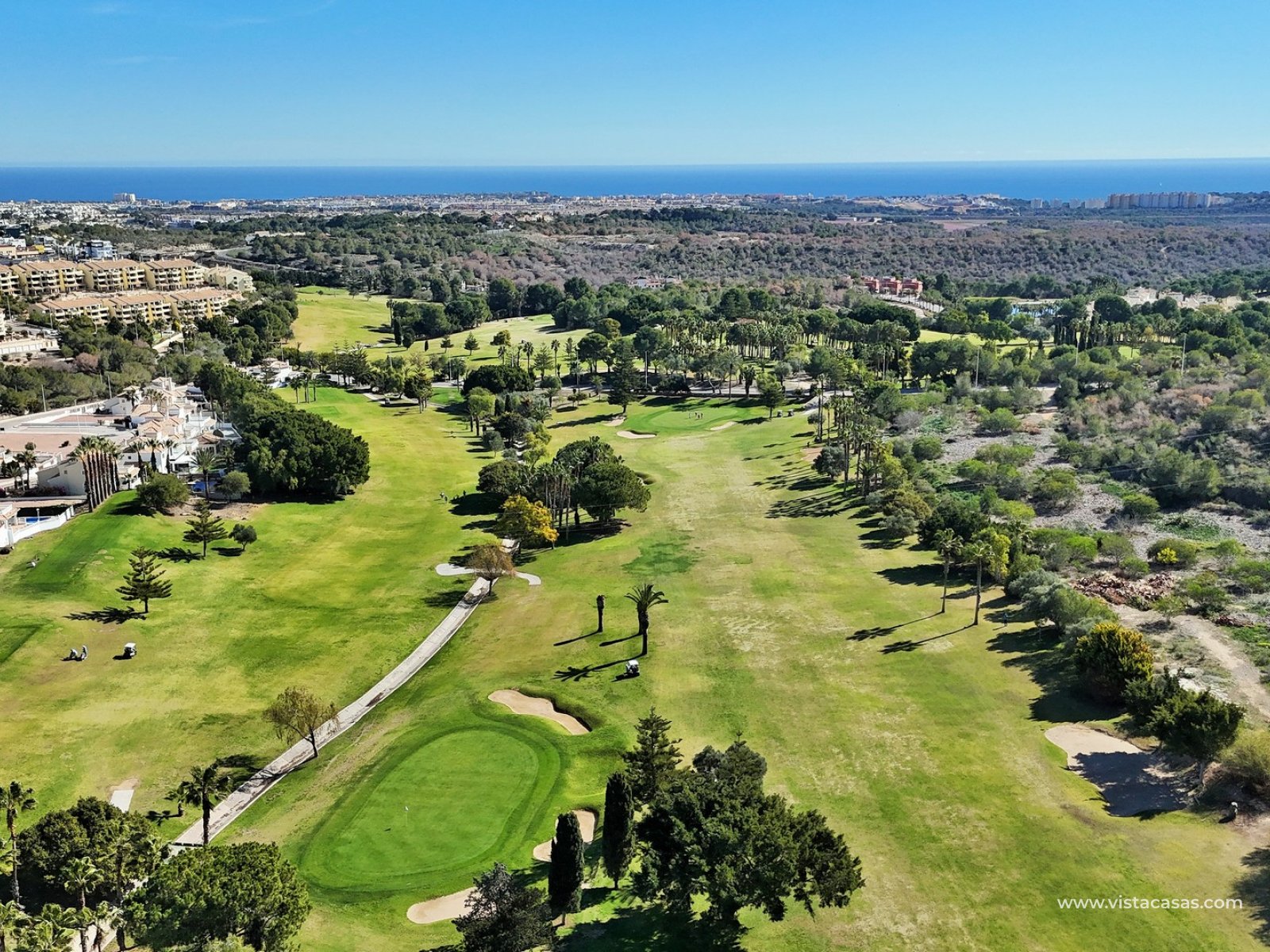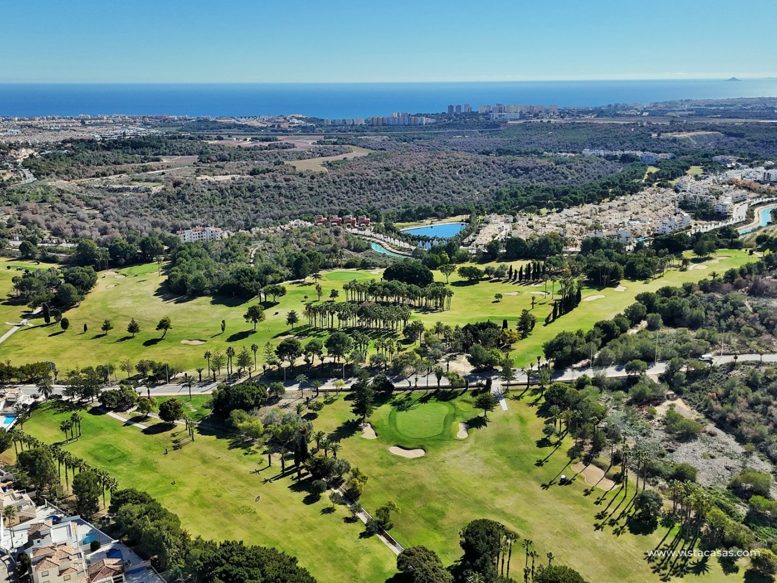 This beautifully updated front-line villa offers an unrivalled position on Campoamor Golf Course, with stunning elevated views over the 9th fairway, 8th green, and 1st tee, extending towards the coastline. Set on a 600m² plot with a 150m² build, the villa has been extensively upgraded for comfort and security. Recent improvements include a new alarm system with window grate alarms, new air conditioning throughout, and electric shutters. The pool has been refurbished, including regrouting, new coping stones, fresh astro turf, a new pump, and an air source heat pump for the pool. Inside, the home features three modern shower rooms, a fully refurbished kitchen by Costa Kitchens, and new ceiling fans. The entire property, both inside and out, has been freshly painted, complemented by new external lighting and a new irrigation system. Additionally, an electric garage door enhances convenience.
