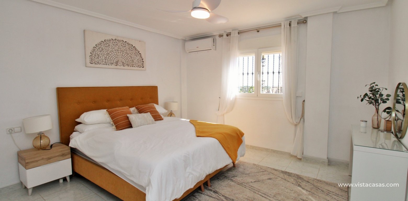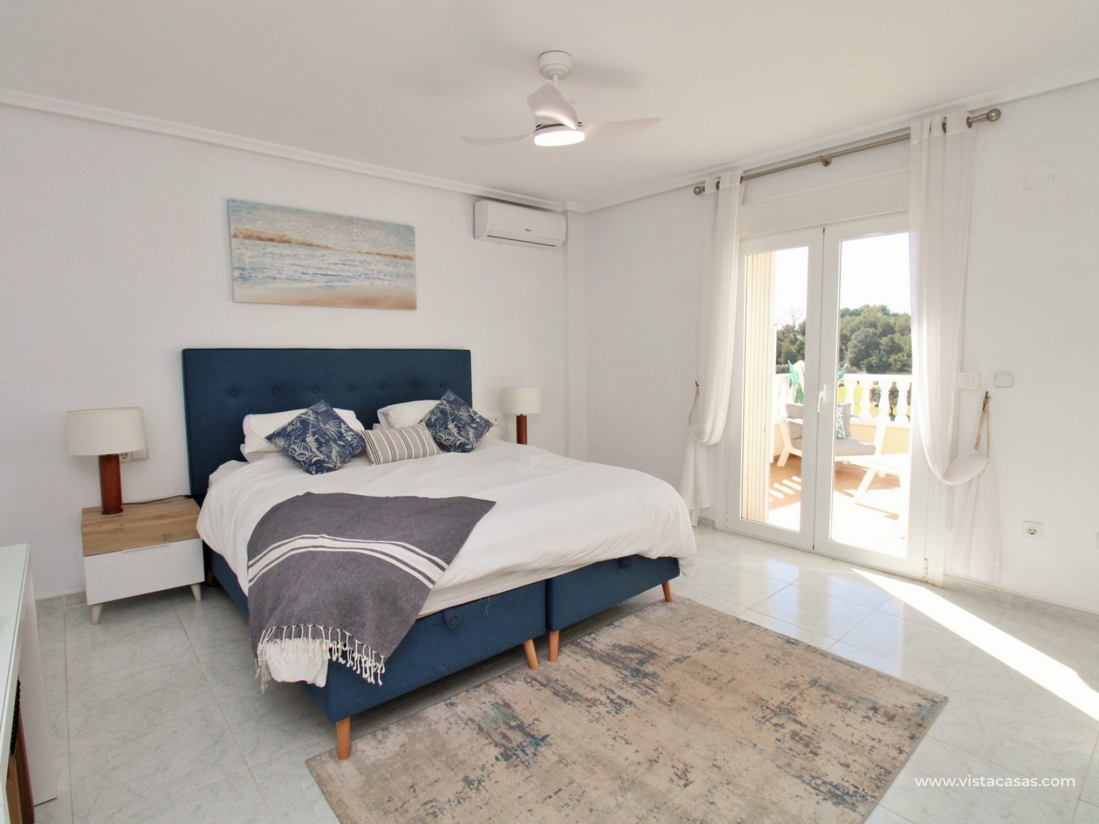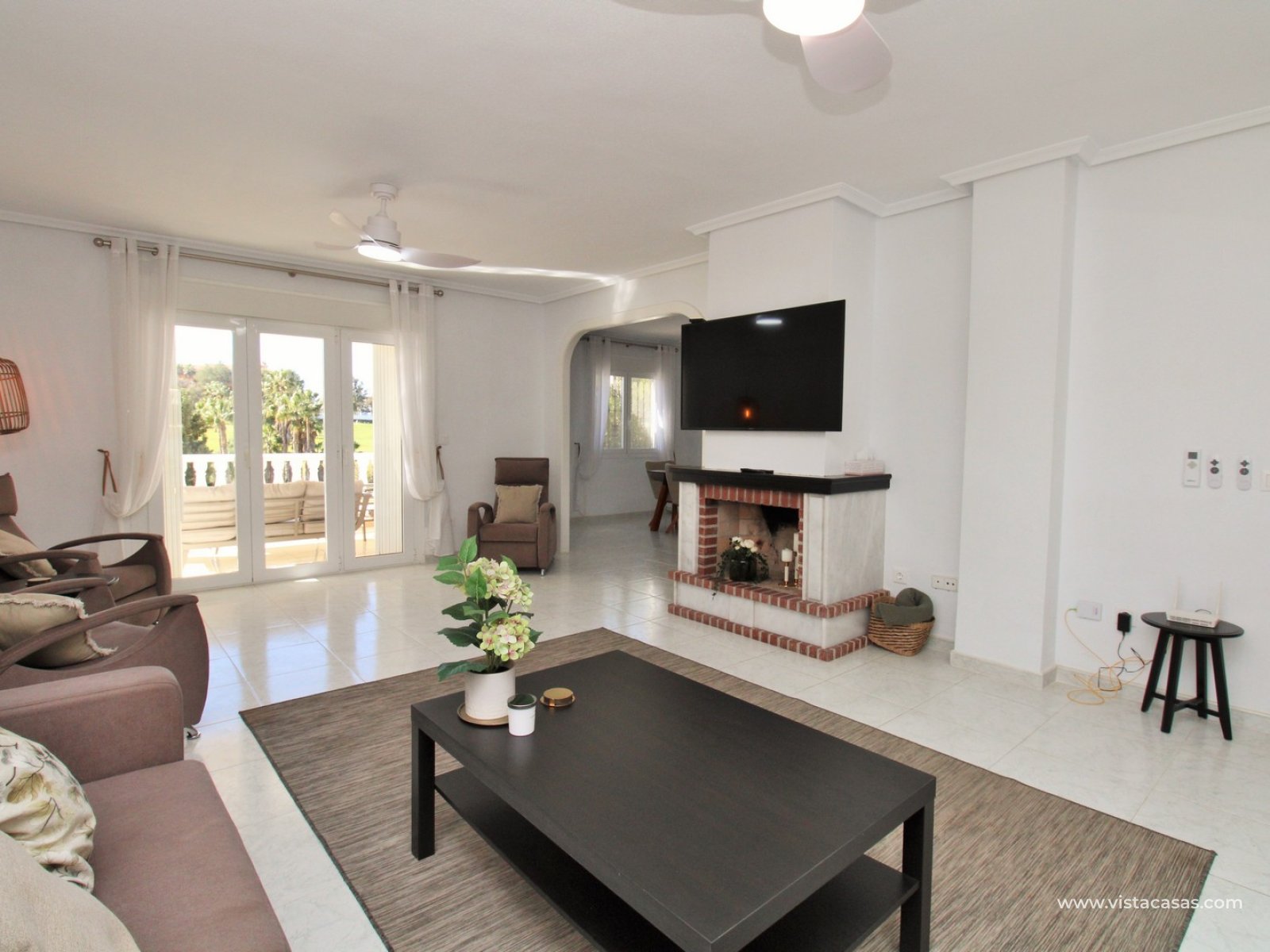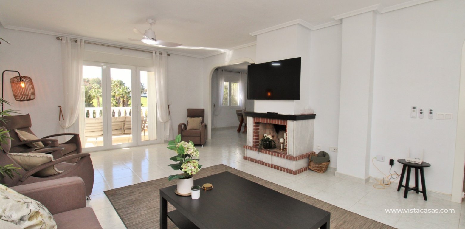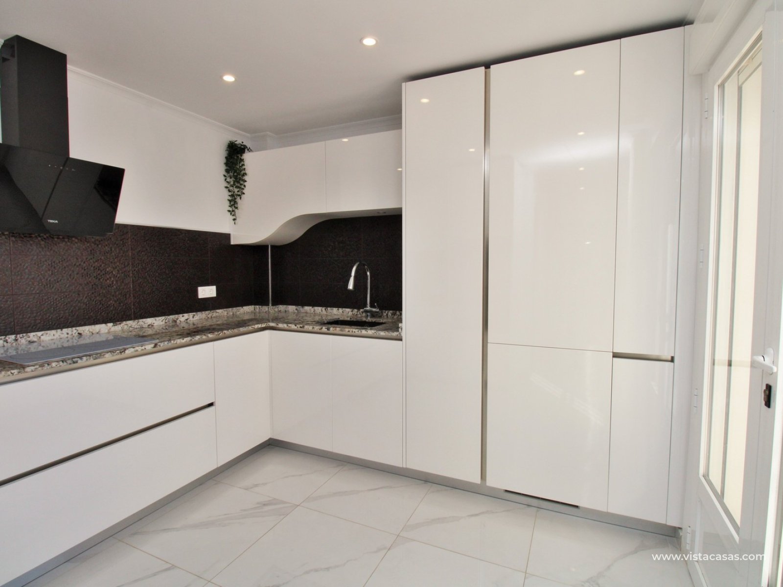 This beautifully updated front-line villa offers an unrivalled position on Campoamor Golf Course, with stunning elevated views over the 9th fairway, 8th green, and 1st tee, extending towards the coastline. Set on a 600m² plot with a 150m² build, the villa has been extensively upgraded for comfort and security. Recent improvements include a new alarm system with window grate alarms, new air conditioning throughout, and electric shutters. The pool has been refurbished, including regrouting, new coping stones, fresh astro turf, a new pump, and an air source heat pump for the pool. Inside, the home features three modern shower rooms, a fully refurbished kitchen by Costa Kitchens, and new ceiling fans. The entire property, both inside and out, has been freshly painted, complemented by new external lighting and a new irrigation system. Additionally, an electric garage door enhances convenience.