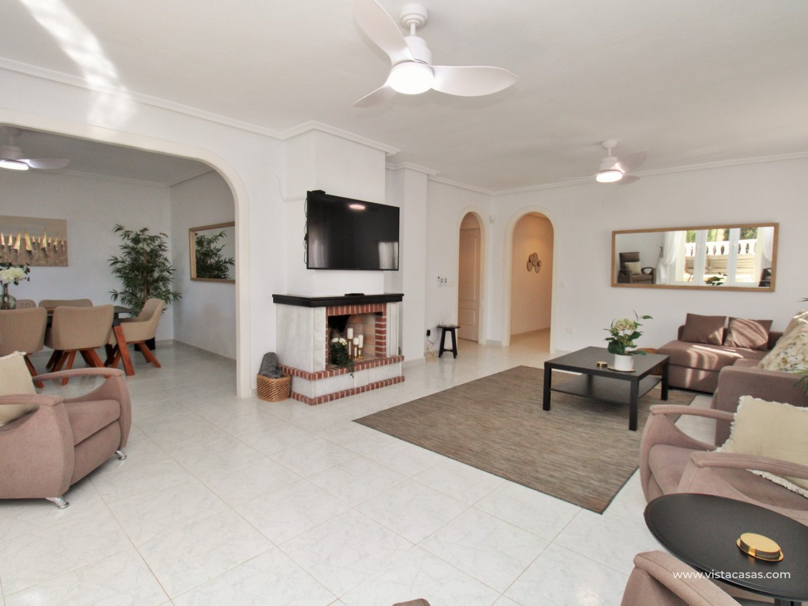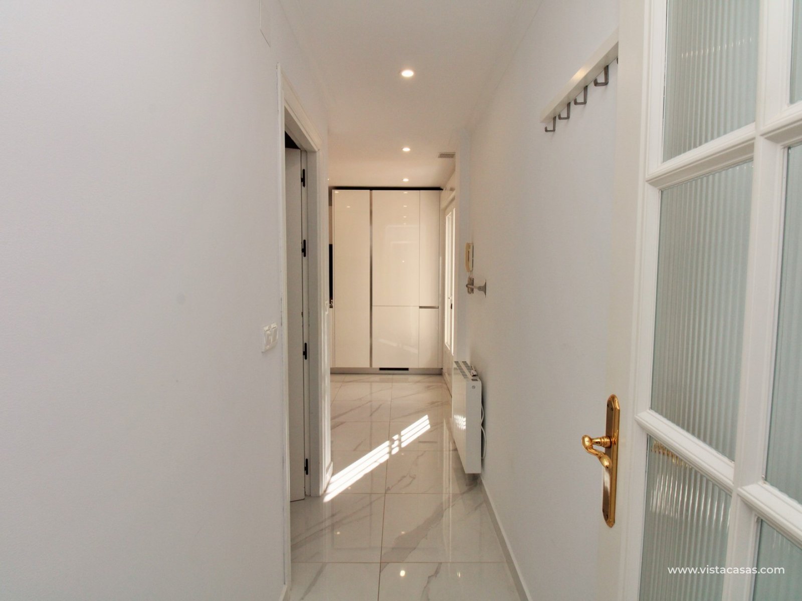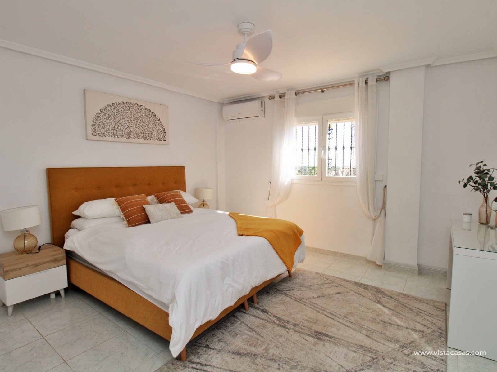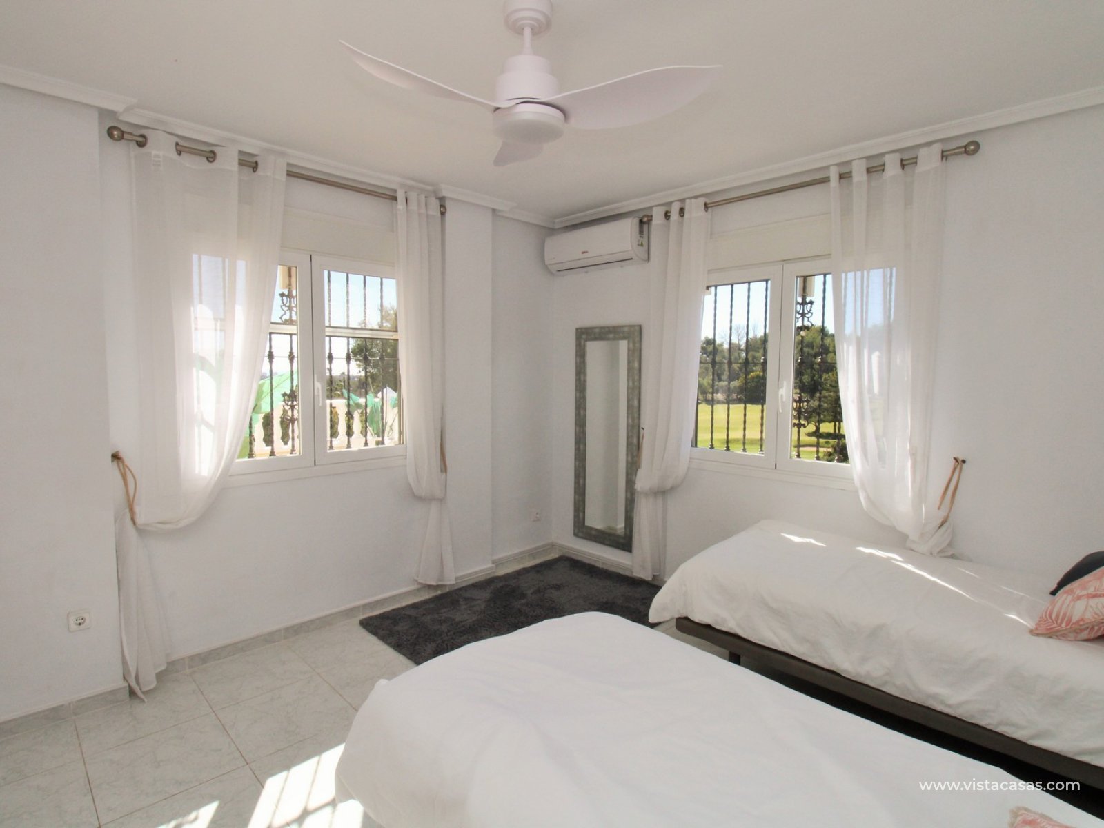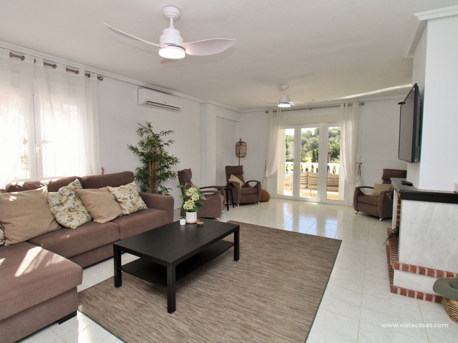 This beautifully updated front-line villa offers an unrivalled position on Campoamor Golf Course, with stunning elevated views over the 9th fairway, 8th green, and 1st tee, extending towards the coastline. Set on a 600m² plot with a 150m² build, the villa has been extensively upgraded for comfort and security. Recent improvements include a new alarm system with window grate alarms, new air conditioning throughout, and electric shutters. The pool has been refurbished, including regrouting, new coping stones, fresh astro turf, a new pump, and an air source heat pump for the pool. Inside, the home features three modern shower rooms, a fully refurbished kitchen by Costa Kitchens, and new ceiling fans. The entire property, both inside and out, has been freshly painted, complemented by new external lighting and a new irrigation system. Additionally, an electric garage door enhances convenience.