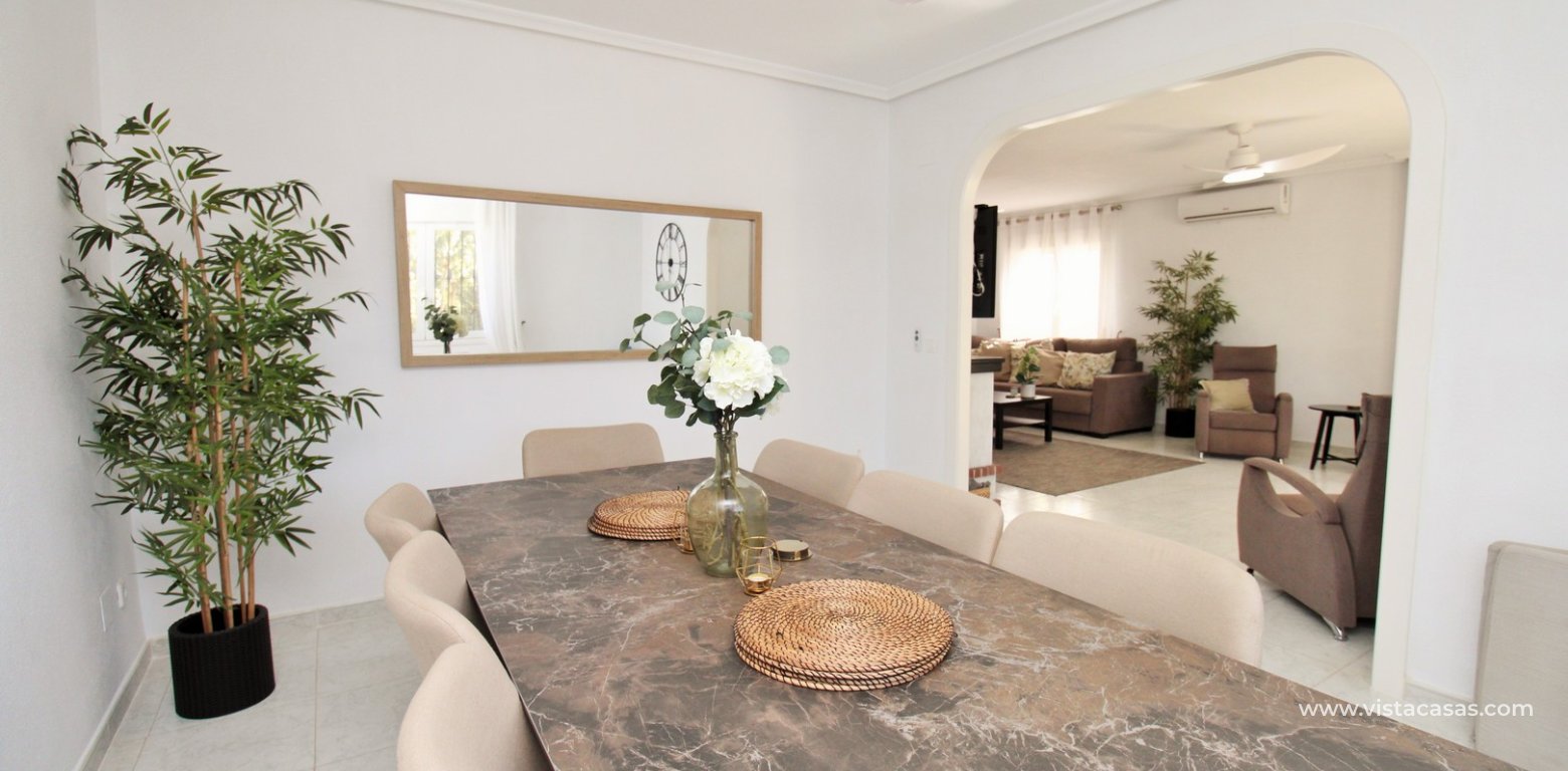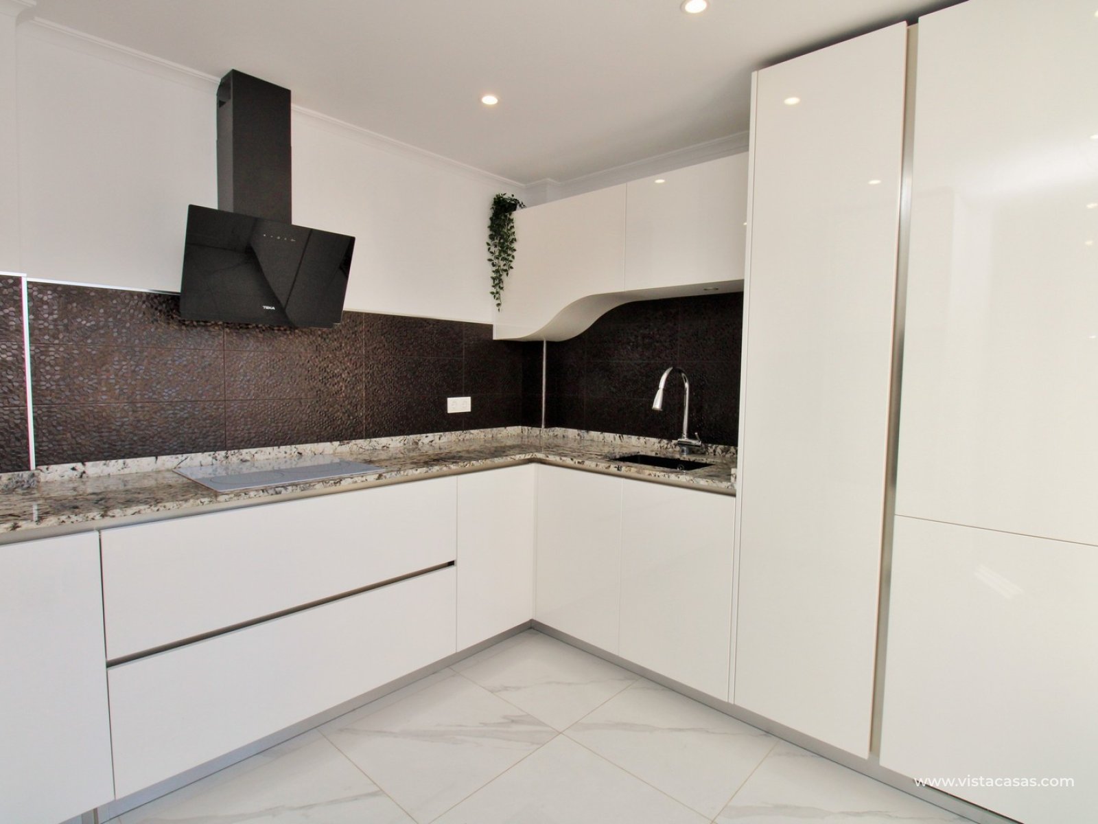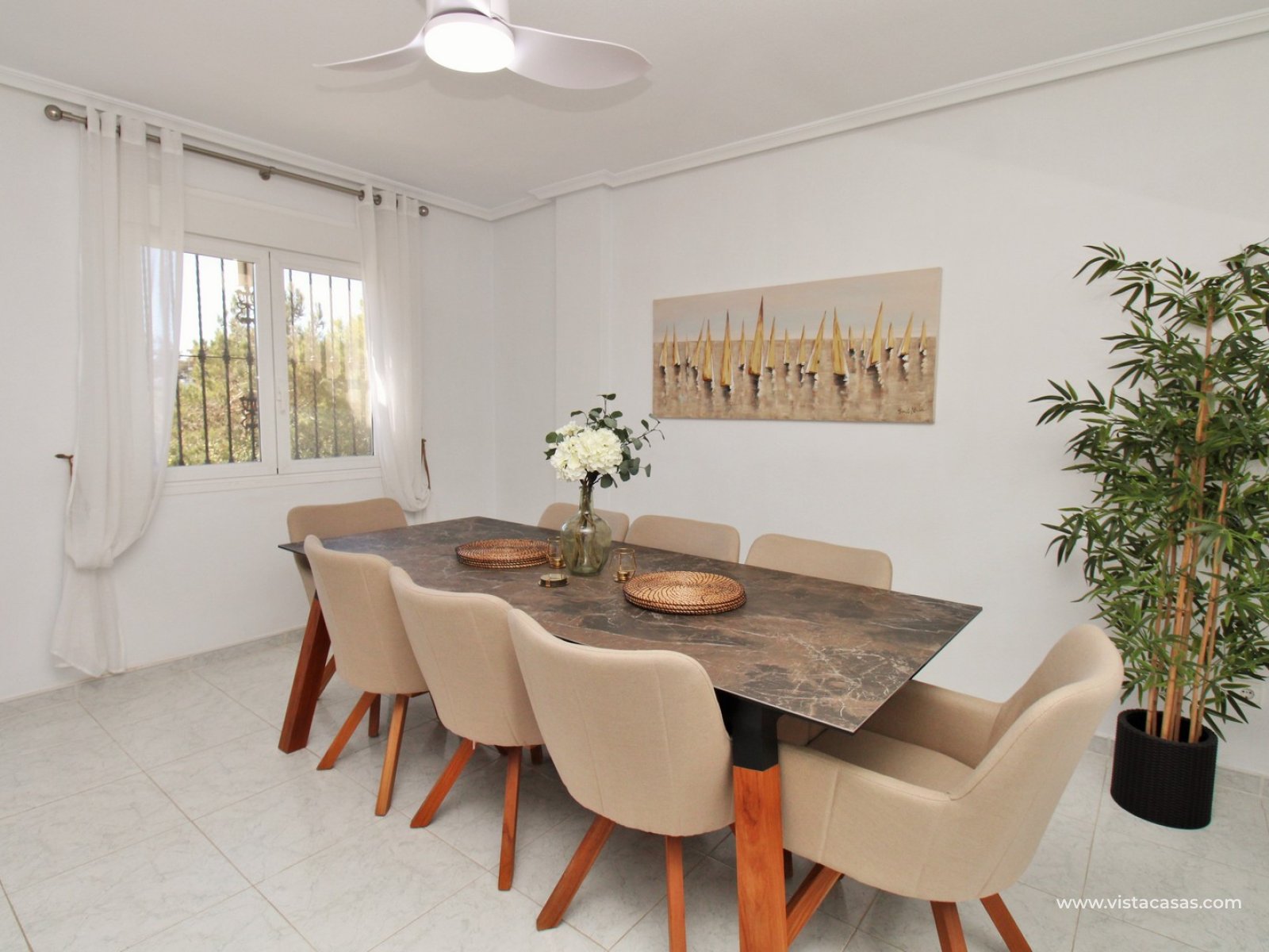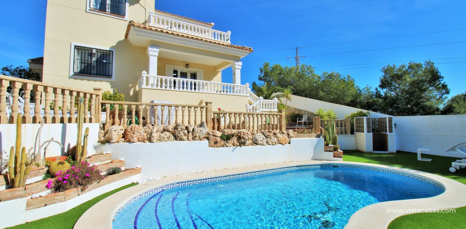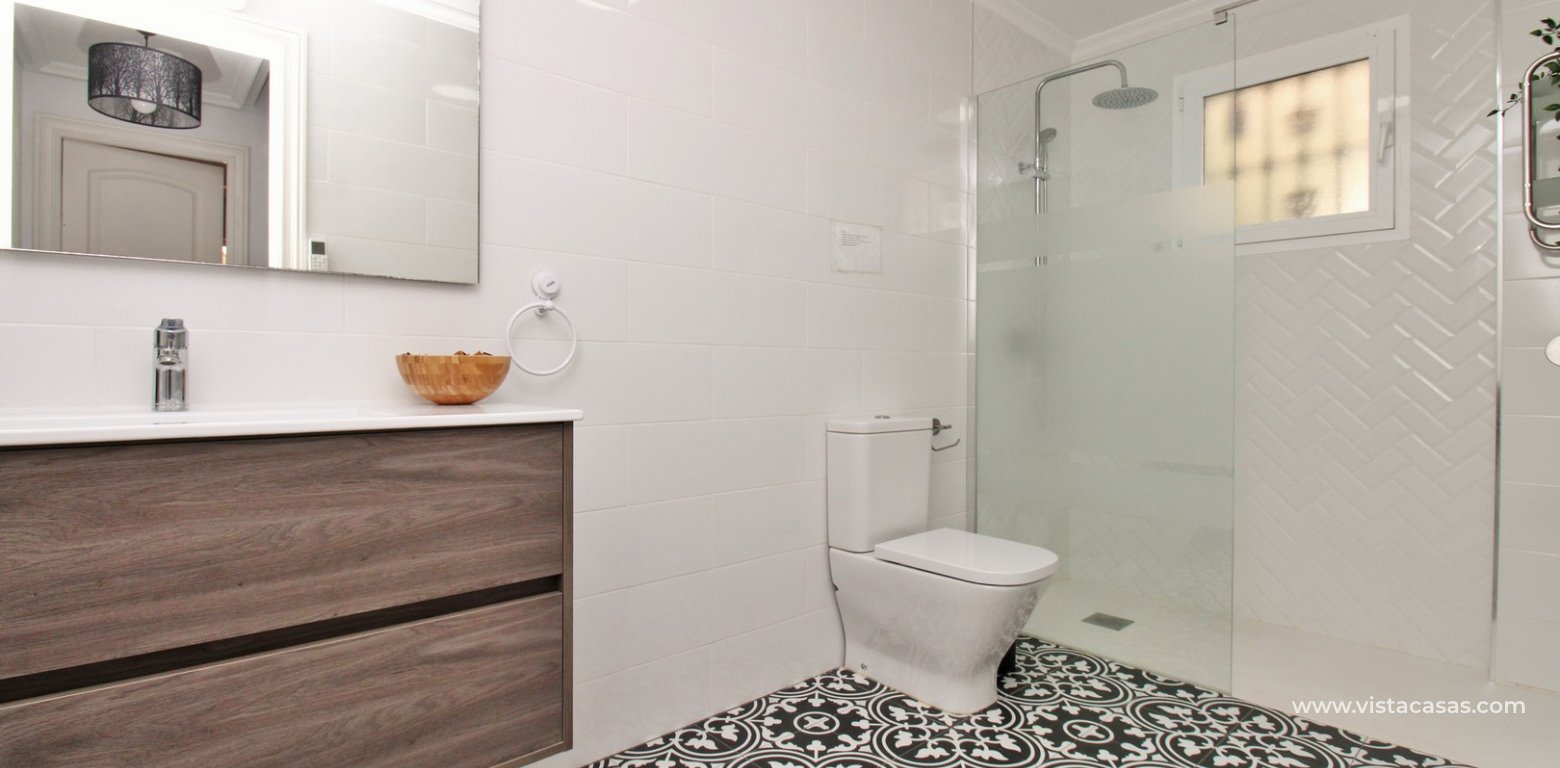 This beautifully updated front-line villa offers an unrivalled position on Campoamor Golf Course, with stunning elevated views over the 9th fairway, 8th green, and 1st tee, extending towards the coastline. Set on a 600m² plot with a 150m² build, the villa has been extensively upgraded for comfort and security. Recent improvements include a new alarm system with window grate alarms, new air conditioning throughout, and electric shutters. The pool has been refurbished, including regrouting, new coping stones, fresh astro turf, a new pump, and an air source heat pump for the pool. Inside, the home features three modern shower rooms, a fully refurbished kitchen by Costa Kitchens, and new ceiling fans. The entire property, both inside and out, has been freshly painted, complemented by new external lighting and a new irrigation system. Additionally, an electric garage door enhances convenience.