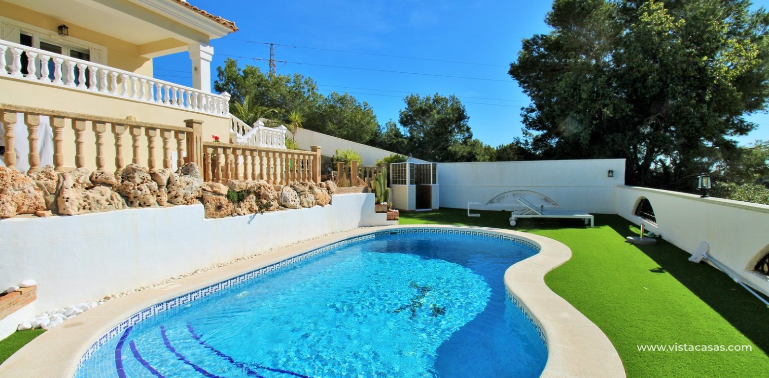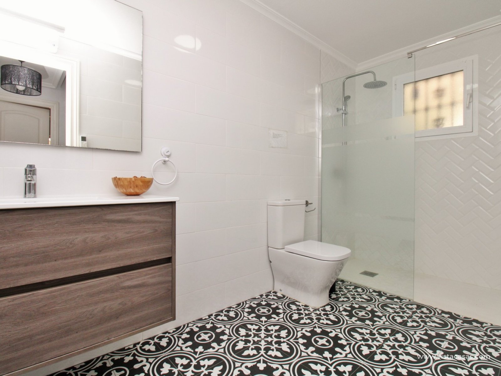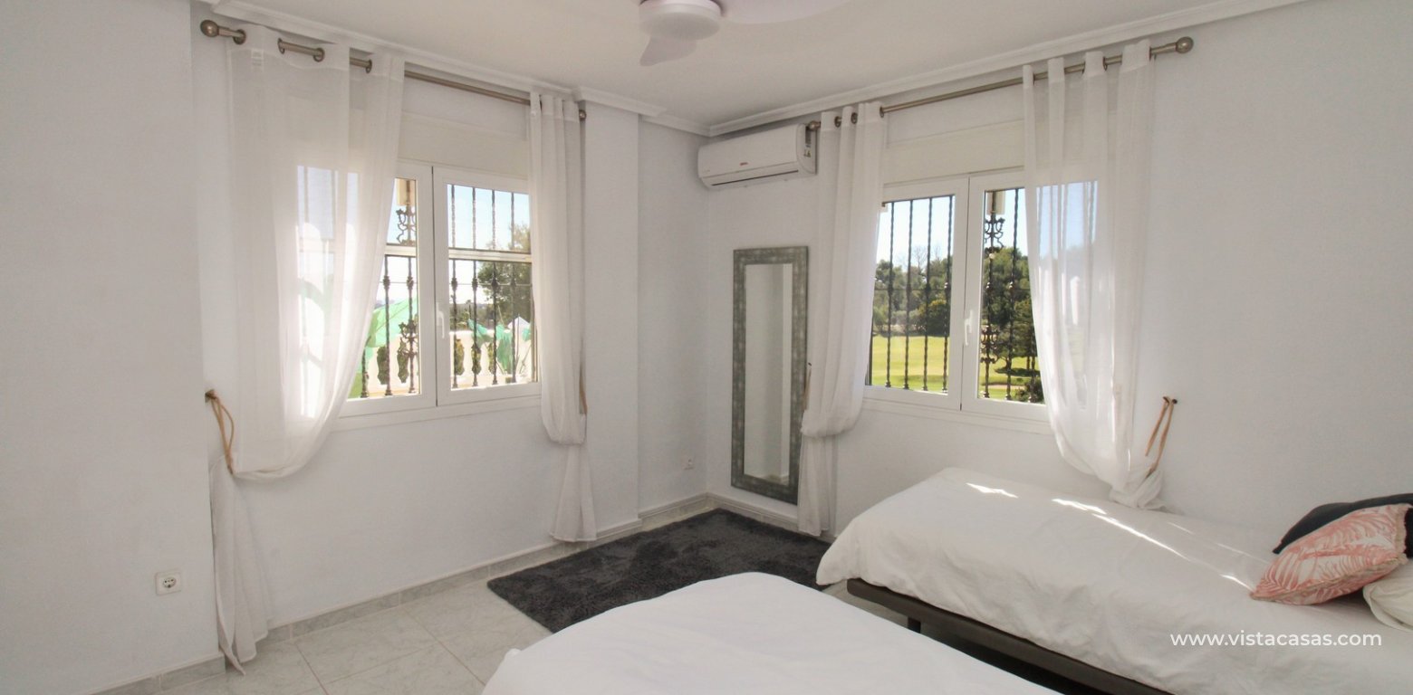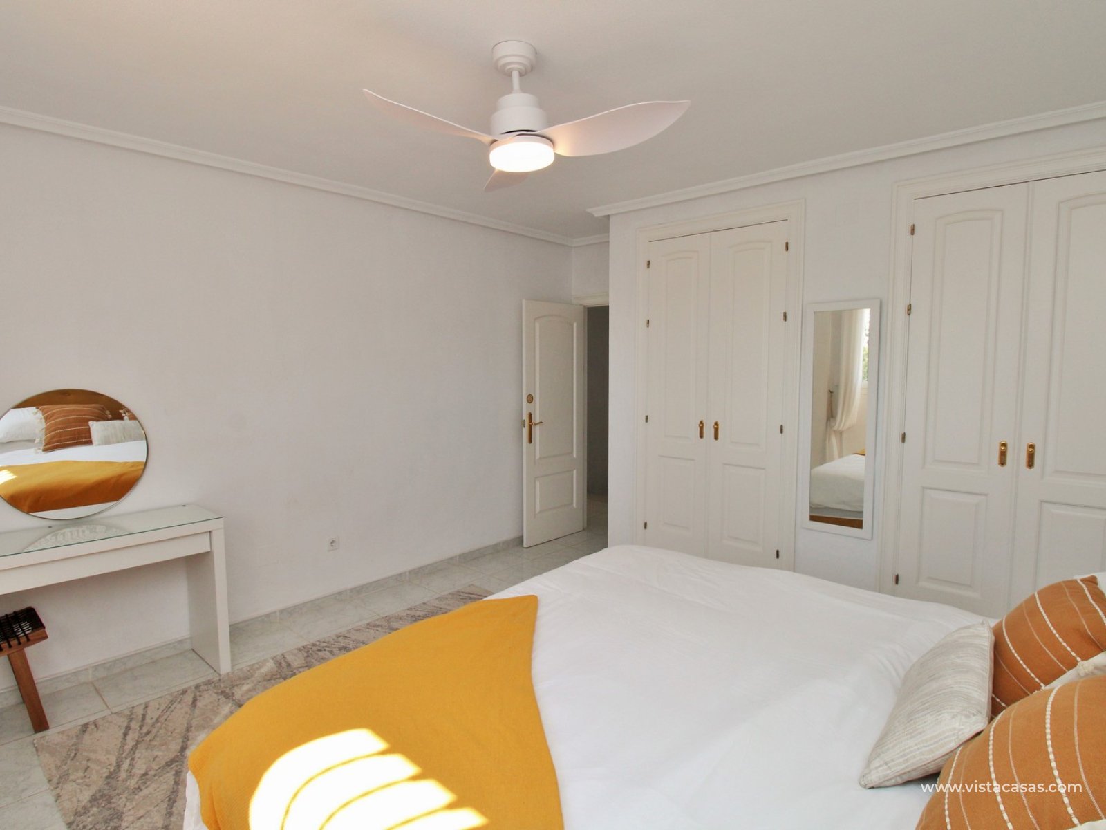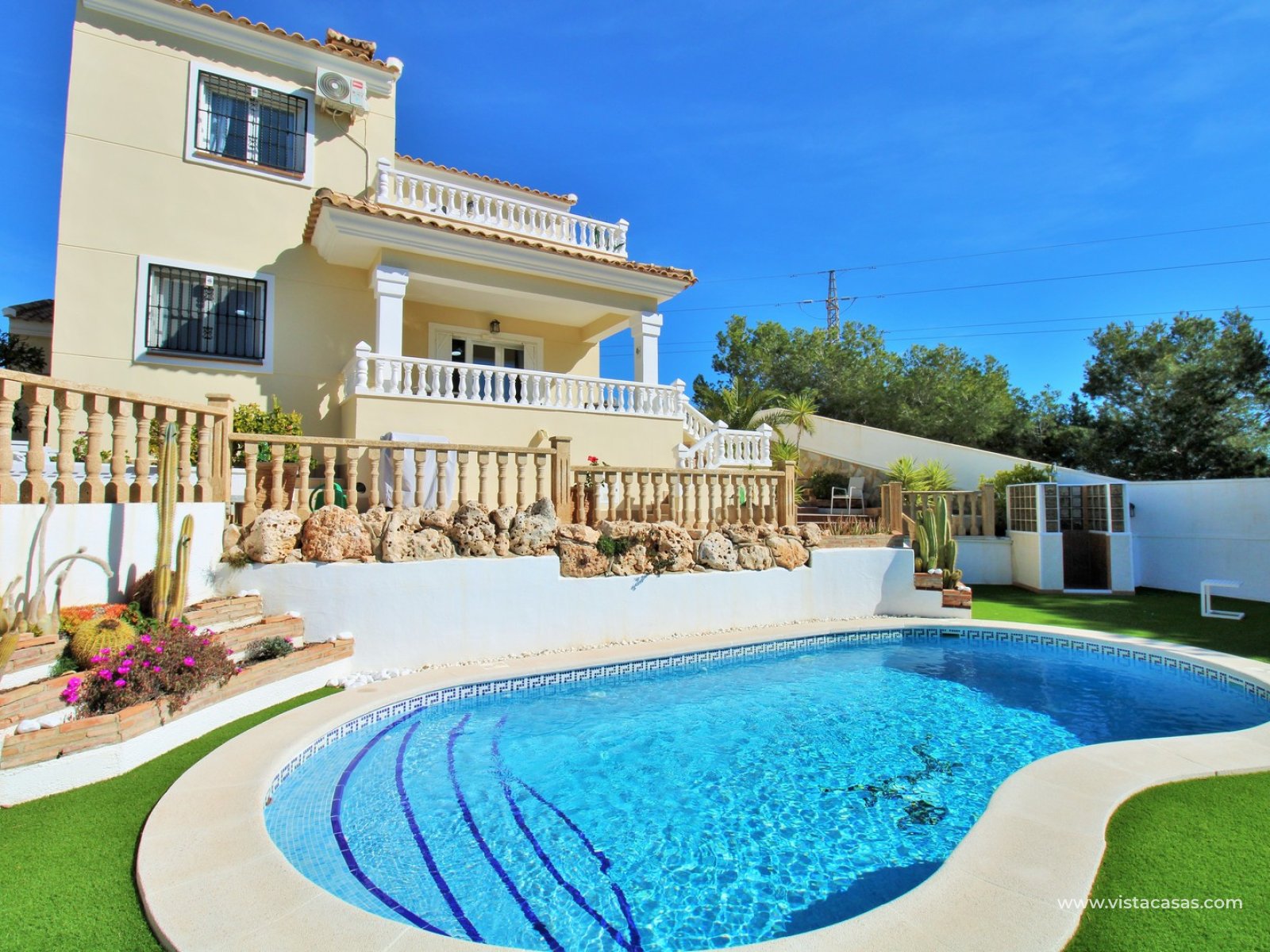 This beautifully updated front-line villa offers an unrivalled position on Campoamor Golf Course, with stunning elevated views over the 9th fairway, 8th green, and 1st tee, extending towards the coastline. Set on a 600m² plot with a 150m² build, the villa has been extensively upgraded for comfort and security. Recent improvements include a new alarm system with window grate alarms, new air conditioning throughout, and electric shutters. The pool has been refurbished, including regrouting, new coping stones, fresh astro turf, a new pump, and an air source heat pump for the pool. Inside, the home features three modern shower rooms, a fully refurbished kitchen by Costa Kitchens, and new ceiling fans. The entire property, both inside and out, has been freshly painted, complemented by new external lighting and a new irrigation system. Additionally, an electric garage door enhances convenience.