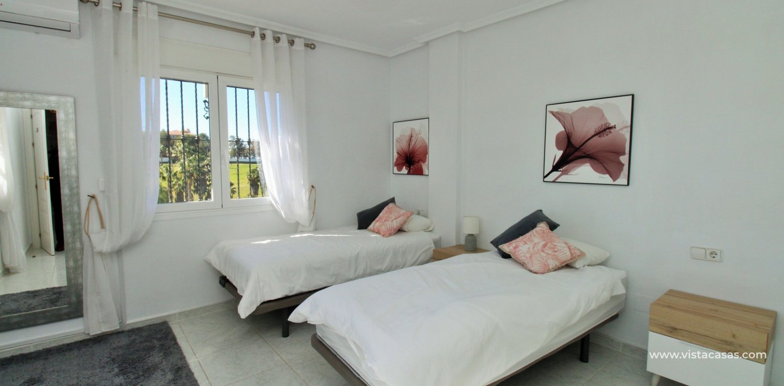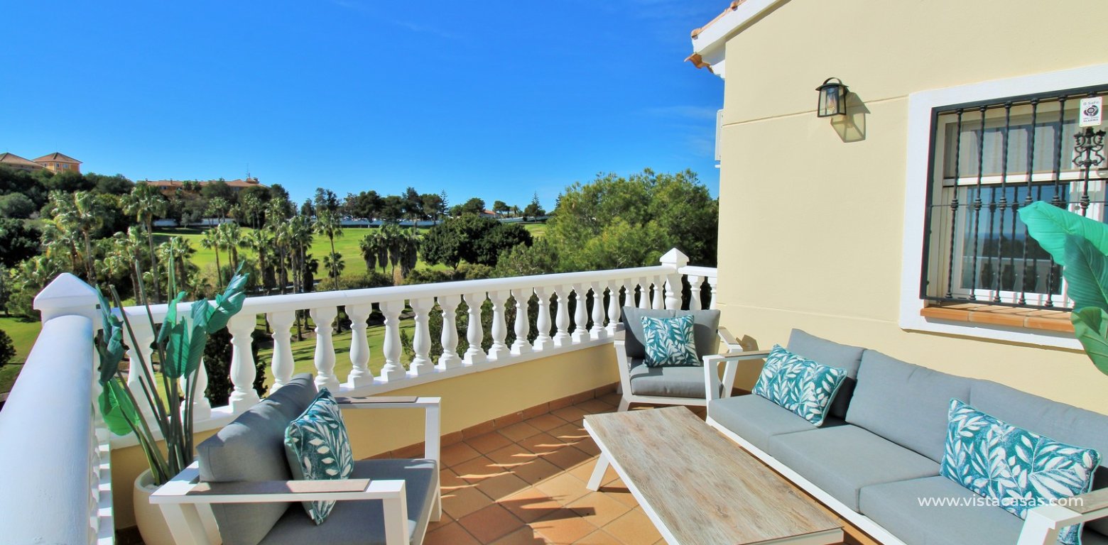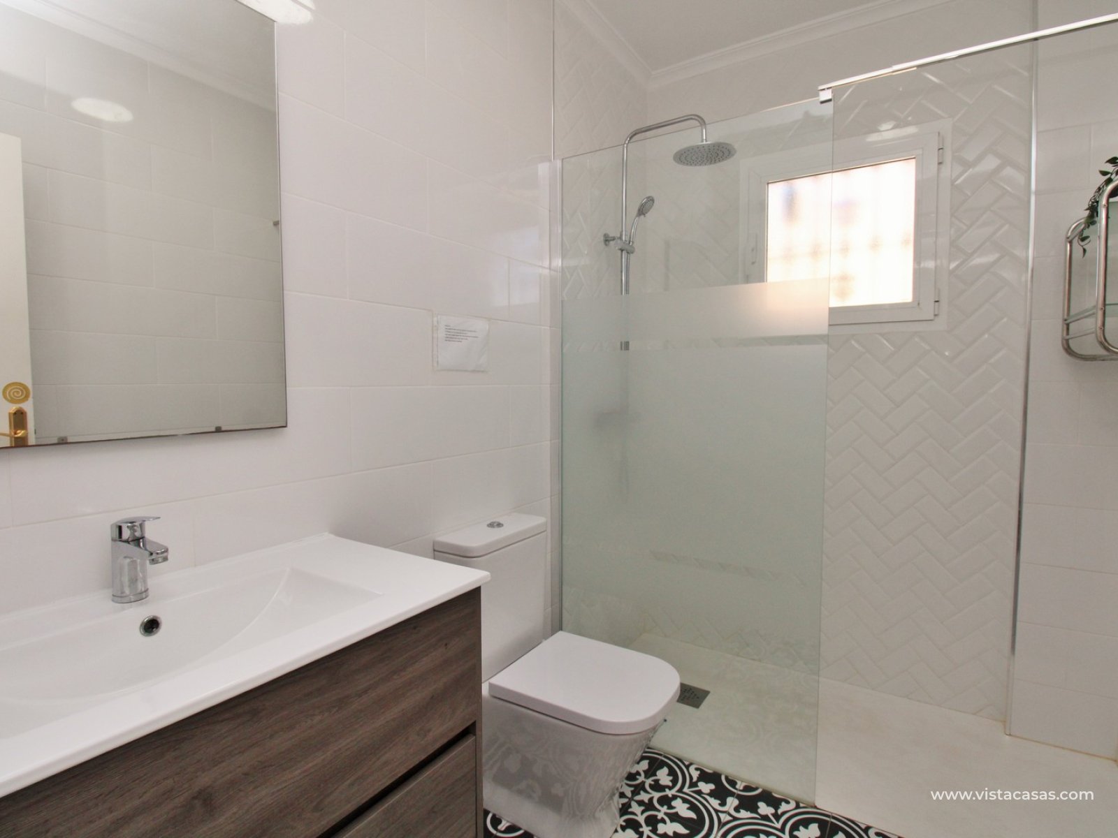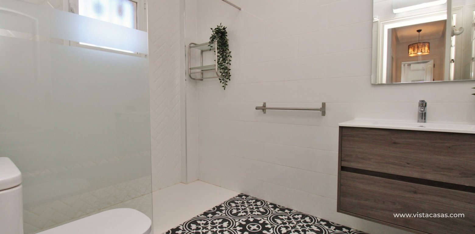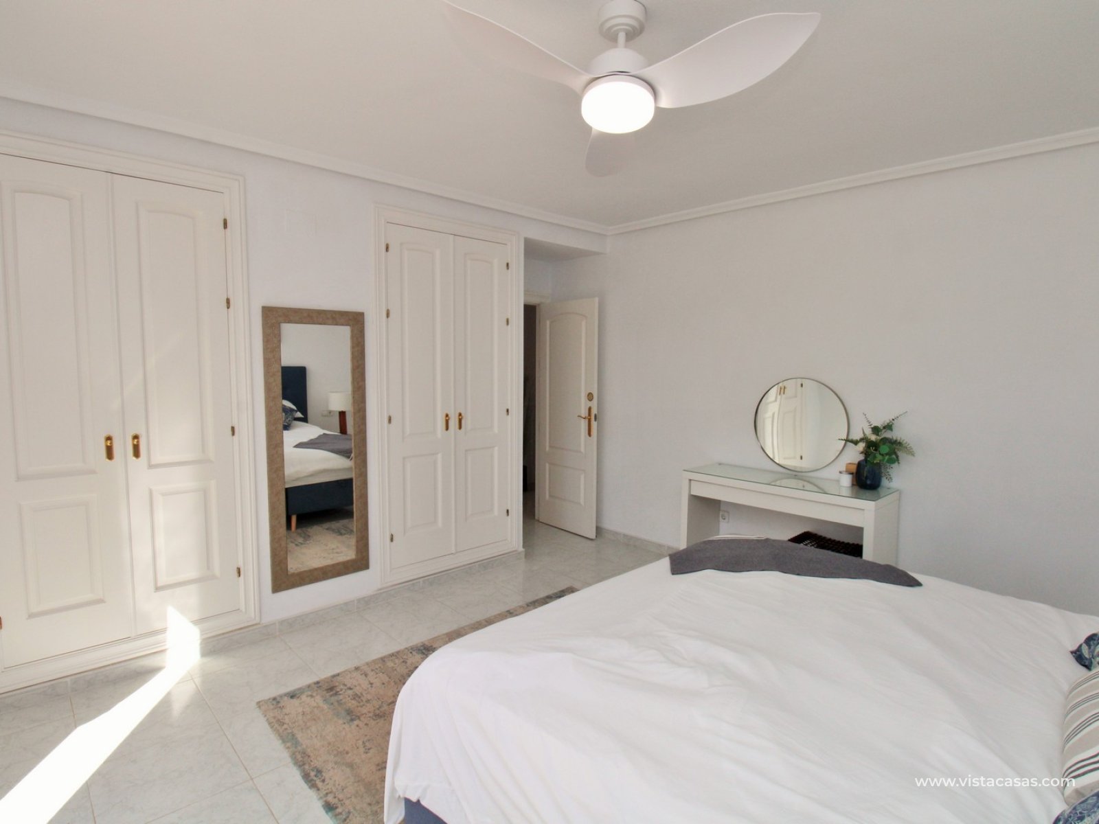This beautifully updated front-line villa offers an unrivalled position on Campoamor Golf Course, with stunning elevated views over the 9th fairway, 8th green, and 1st tee, extending towards the coastline. Set on a 600m² plot with a 150m² build, the villa has been extensively upgraded for comfort and security. Recent improvements include a new alarm system with window grate alarms, new air conditioning throughout, and electric shutters. The pool has been refurbished, including regrouting, new coping stones, fresh astro turf, a new pump, and an air source heat pump for the pool. Inside, the home features three modern shower rooms, a fully refurbished kitchen by Costa Kitchens, and new ceiling fans. The entire property, both inside and out, has been freshly painted, complemented by new external lighting and a new irrigation system. Additionally, an electric garage door enhances convenience.