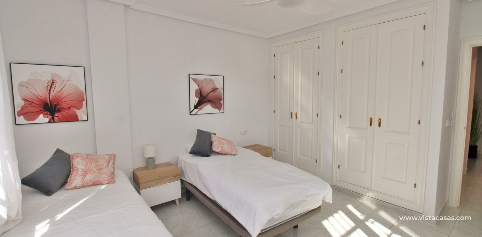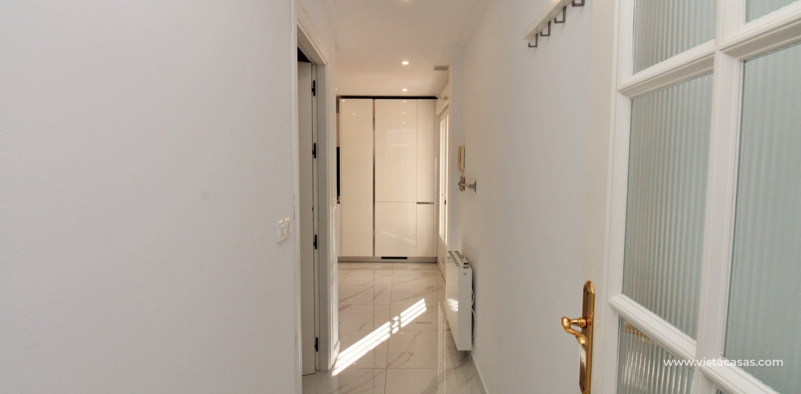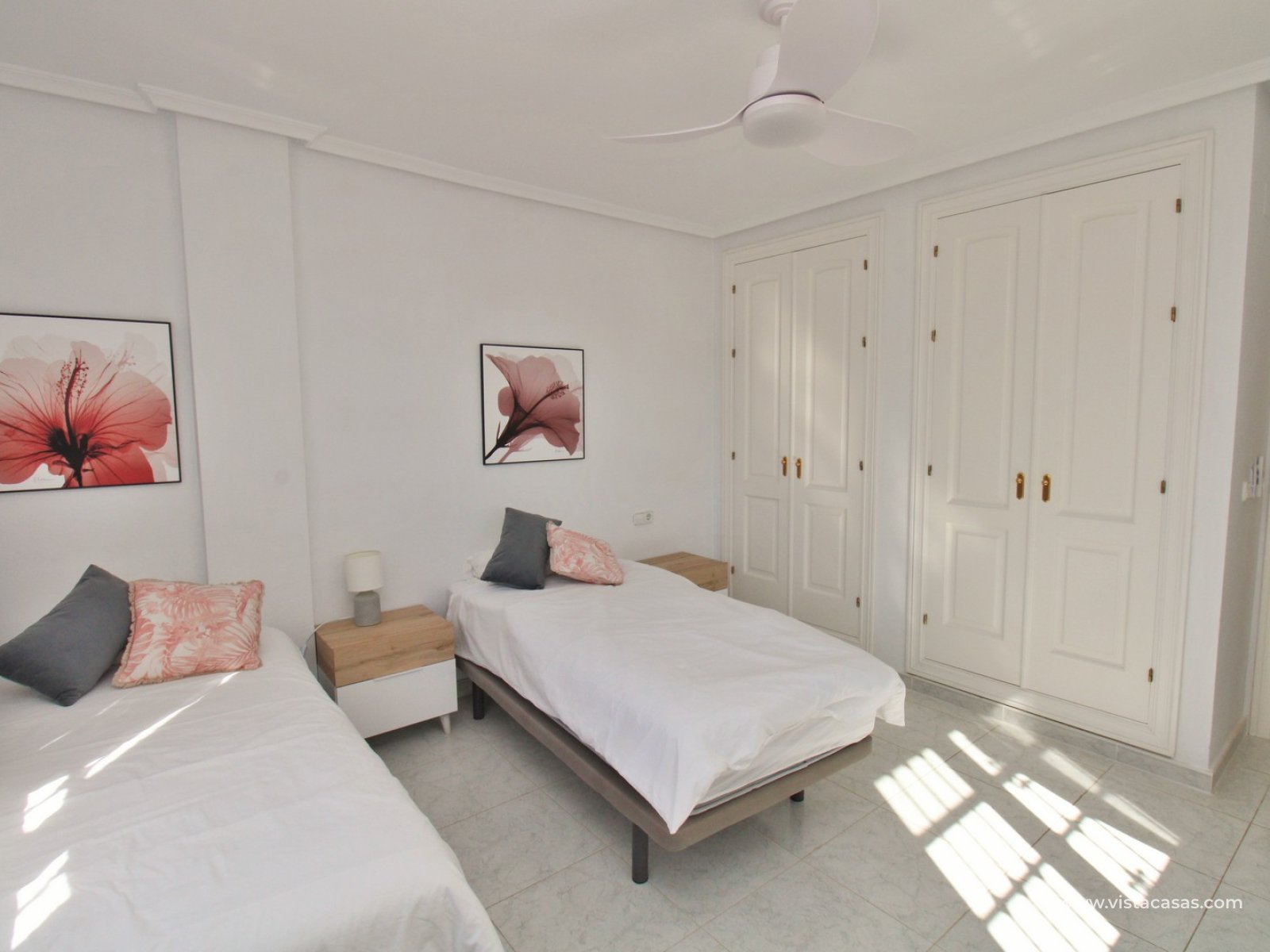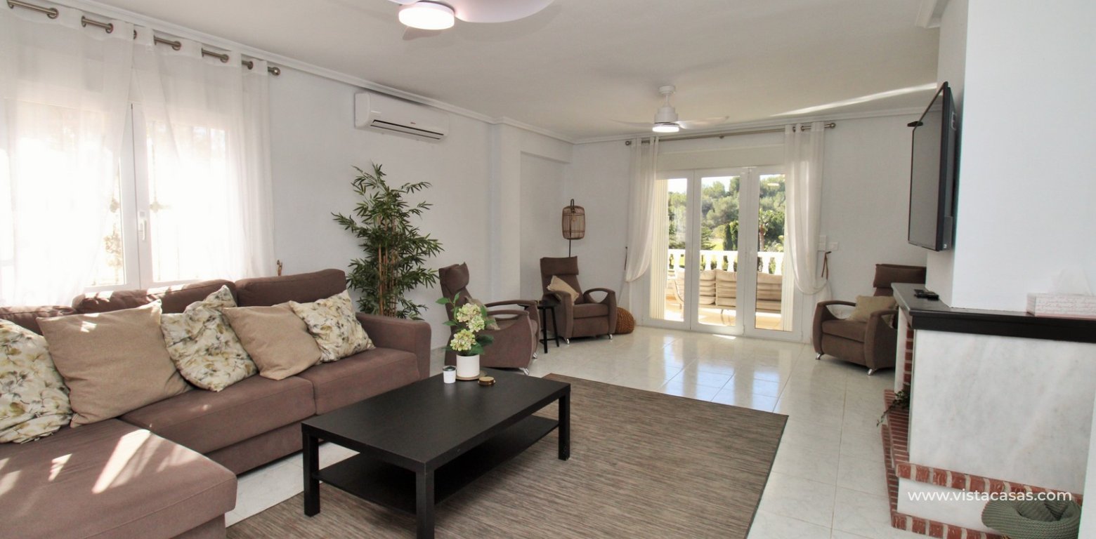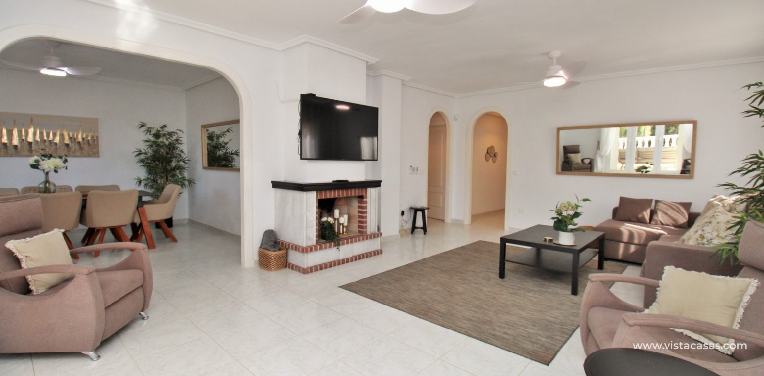 This beautifully updated front-line villa offers an unrivalled position on Campoamor Golf Course, with stunning elevated views over the 9th fairway, 8th green, and 1st tee, extending towards the coastline. Set on a 600m² plot with a 150m² build, the villa has been extensively upgraded for comfort and security. Recent improvements include a new alarm system with window grate alarms, new air conditioning throughout, and electric shutters. The pool has been refurbished, including regrouting, new coping stones, fresh astro turf, a new pump, and an air source heat pump for the pool. Inside, the home features three modern shower rooms, a fully refurbished kitchen by Costa Kitchens, and new ceiling fans. The entire property, both inside and out, has been freshly painted, complemented by new external lighting and a new irrigation system. Additionally, an electric garage door enhances convenience.