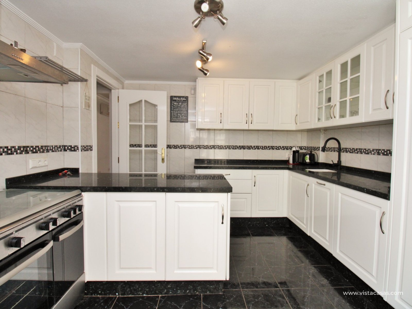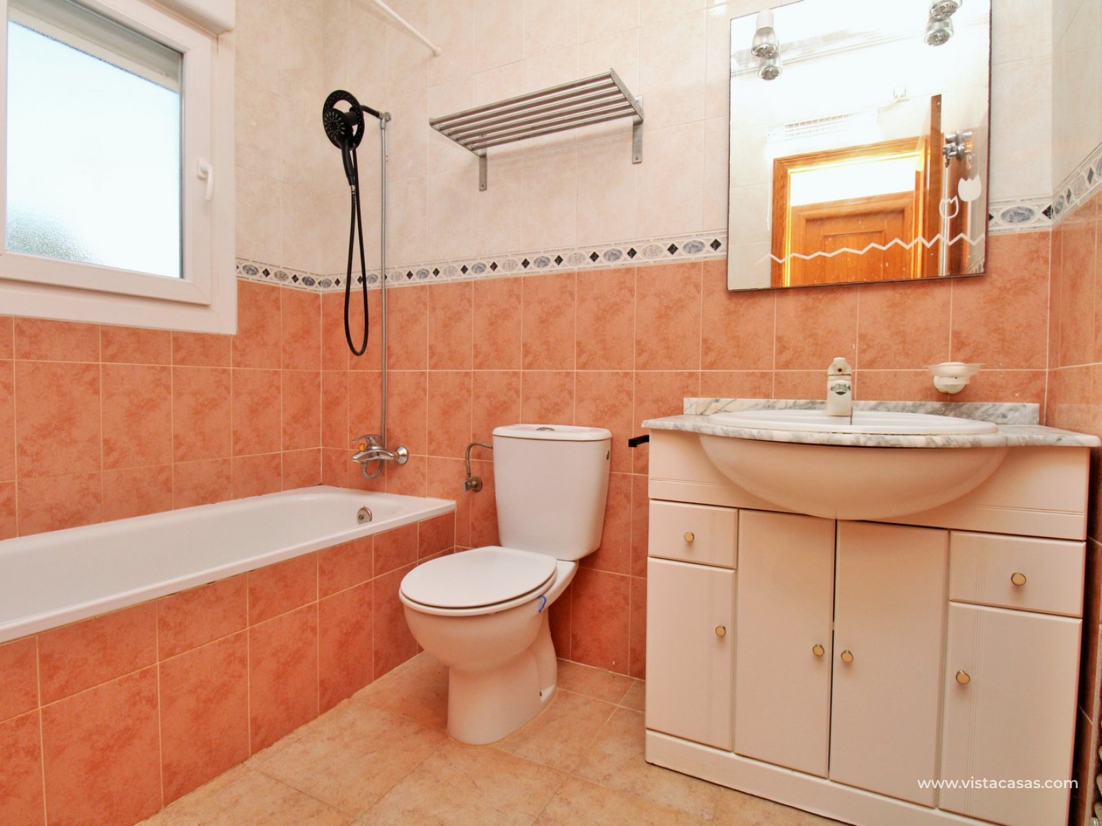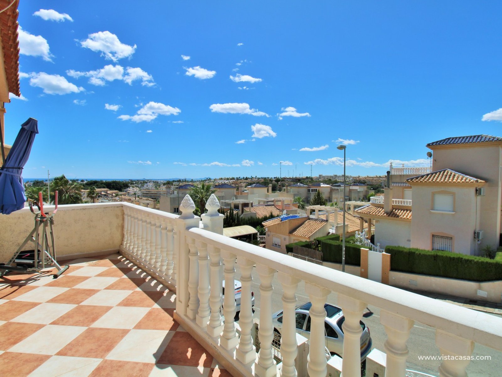 This generously sized five-bedroom, three-and-a-half-bathroom detached villa is located in the sought-after Montegolf area of Villamartin. Ideally positioned within easy reach of local amenities, it’s just a short drive from beautiful beaches and several renowned golf courses. Backing directly onto the Villamartin golf course, the villa also enjoys attractive distant sea views from the upper sun terrace.