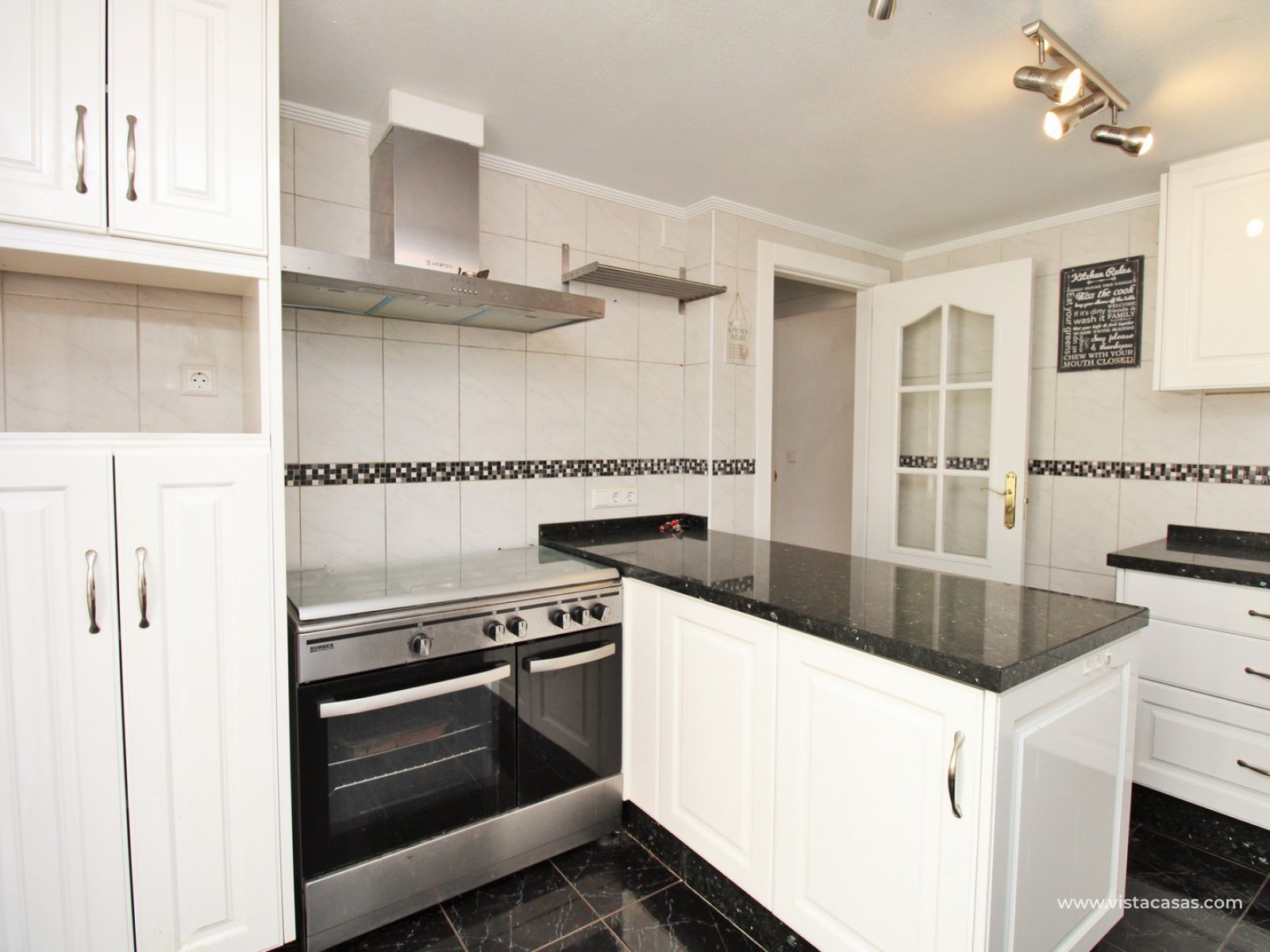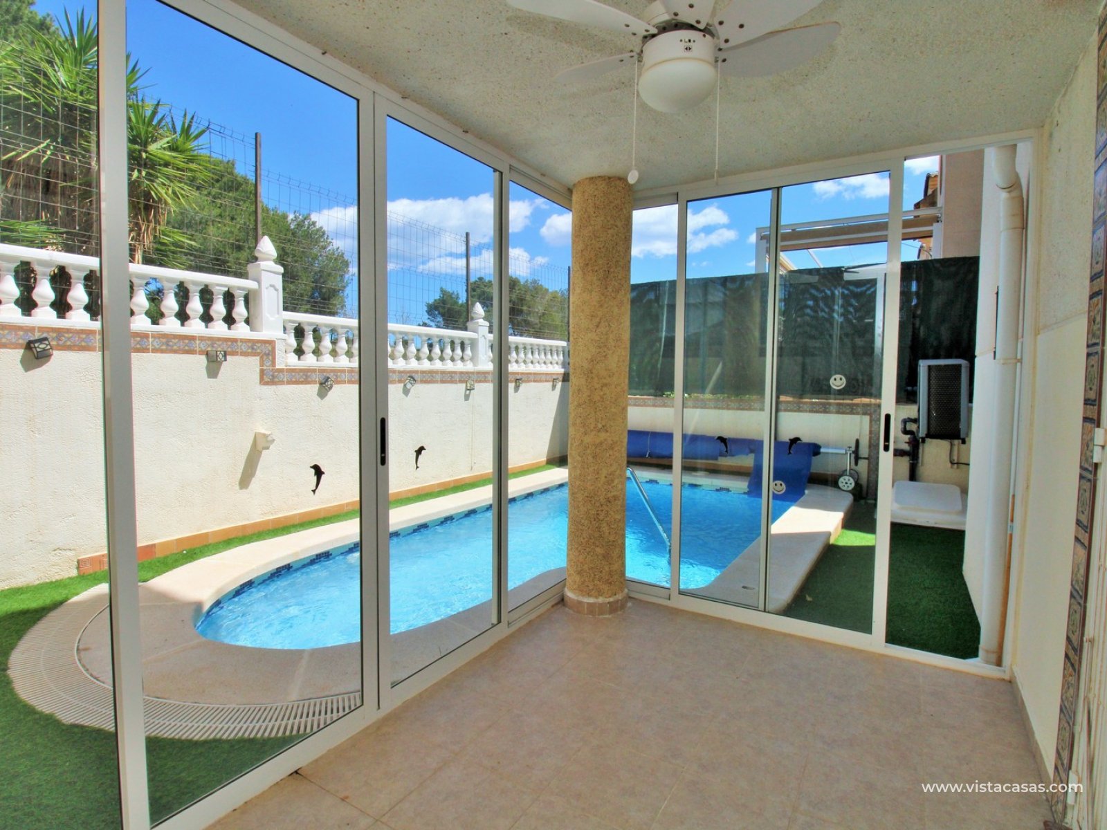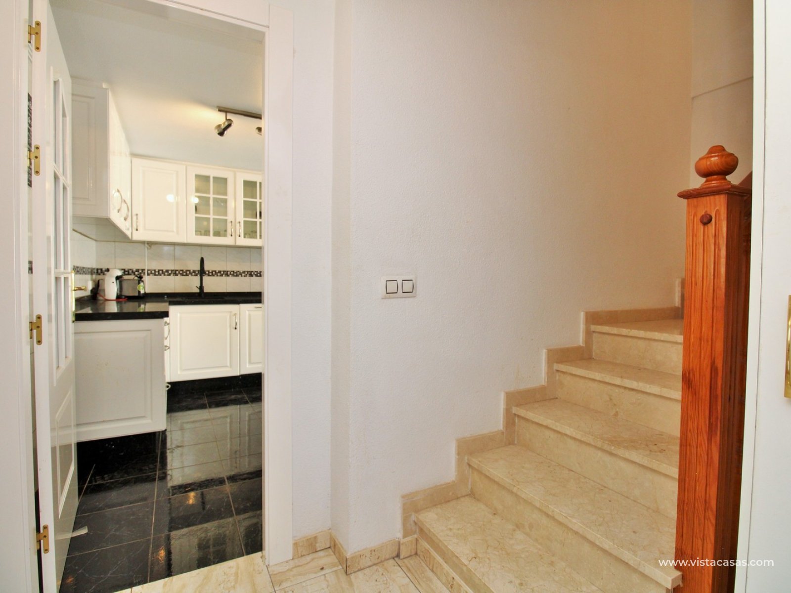 This generously sized five-bedroom, three-and-a-half-bathroom detached villa is located in the sought-after Montegolf area of Villamartin. Ideally positioned within easy reach of local amenities, it’s just a short drive from beautiful beaches and several renowned golf courses. Backing directly onto the Villamartin golf course, the villa also enjoys attractive distant sea views from the upper sun terrace.