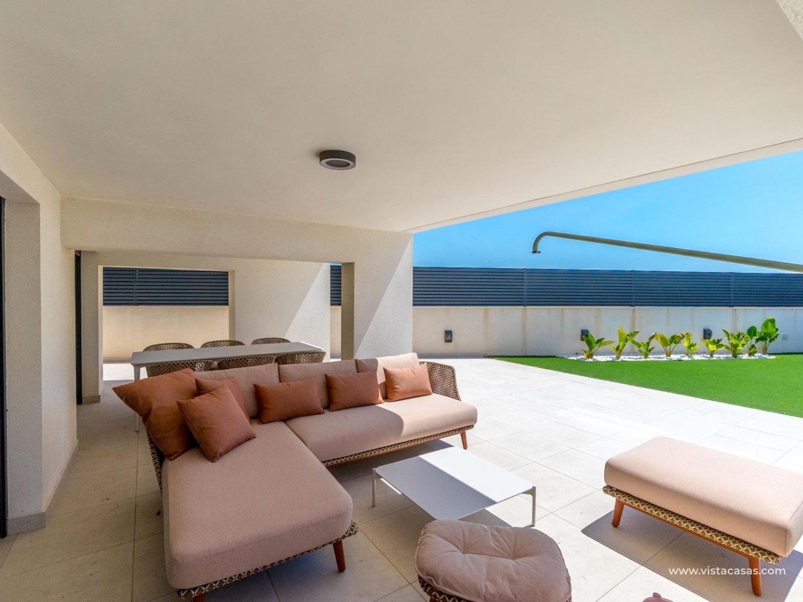 Step into luxury with this spectacular modern villa, located in one of the most prestigious and peaceful residential areas on the Costa Blanca. Designed with elegance, space, and Mediterranean lifestyle in mind, this stunning two-story home offers the ultimate comfort, privacy, and outdoor living.Set on a generous plot, the property boasts a sleek architectural design with clean lines, natural stone accents, and expansive windows that flood the interior with natural light. The beautifully landscaped garden features a lush green lawn, ideal for family activities, a mini football area, and multiple lounge zones. The highlight of the exterior is the sparkling private swimming pool surrounded by a sun-drenched terrace—perfect for relaxing, entertaining, or enjoying the sunny Spanish climate year-round. Inside, the villa features 5 spacious bedrooms and 3 elegant bathrooms, providing ample space for family and guests alike. The ground floor offers a bright, open-concept living area with modern finishes and direct access to the outdoor spaces, while the upper level enjoys tranquil views and large terrace—perfect for morning coffee or evening relaxation.The villa also includes a very large private garage, offering secure parking for multiple vehicles as well as generous storage space—an exceptional bonus rarely found in similar properties. The property has a high grade security system with motion detection and live/recording video feature which protects and monitors the inside and outside 24 hours a day, 7 days a week. The system is linked to local law enforcement and can be monitored via your smartphone or computer anywhere in the world, giving you peace of mind.Additional features include:- High-quality materials and finishes throughout - Air conditioning and climate control - Private onsite parking and gated access - Fully fenced plot offering privacy and security Located just minutes from the golden beaches of Orihuela Costa and the vibrant center of Torrevieja, this exquisite property is perfectly positioned close to international schools, golf courses, shopping centers, and fine dining—delivering a lifestyle of exclusivity, convenience, and relaxation.Whether you’re searching for a luxurious permanent residence, a stylish holiday retreat, or a high-potential investment, this extraordinary villa offers a rare opportunity in one of the Costa Blanca’s most coveted locations.