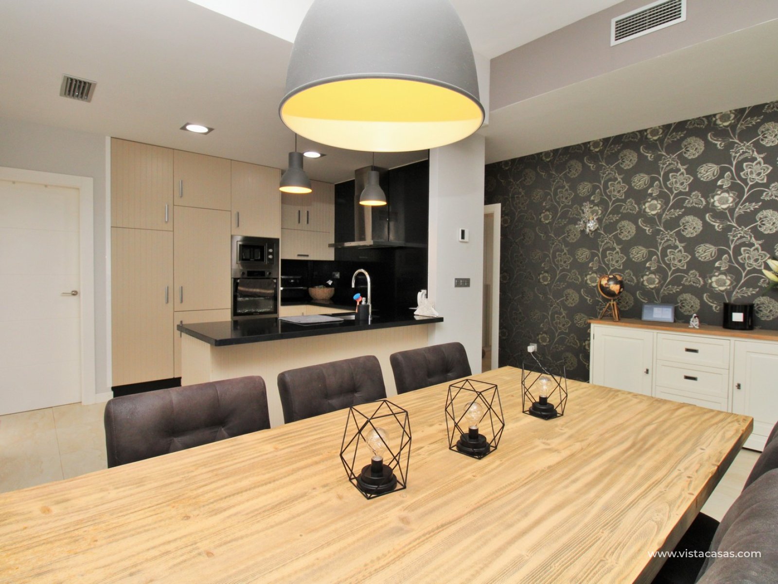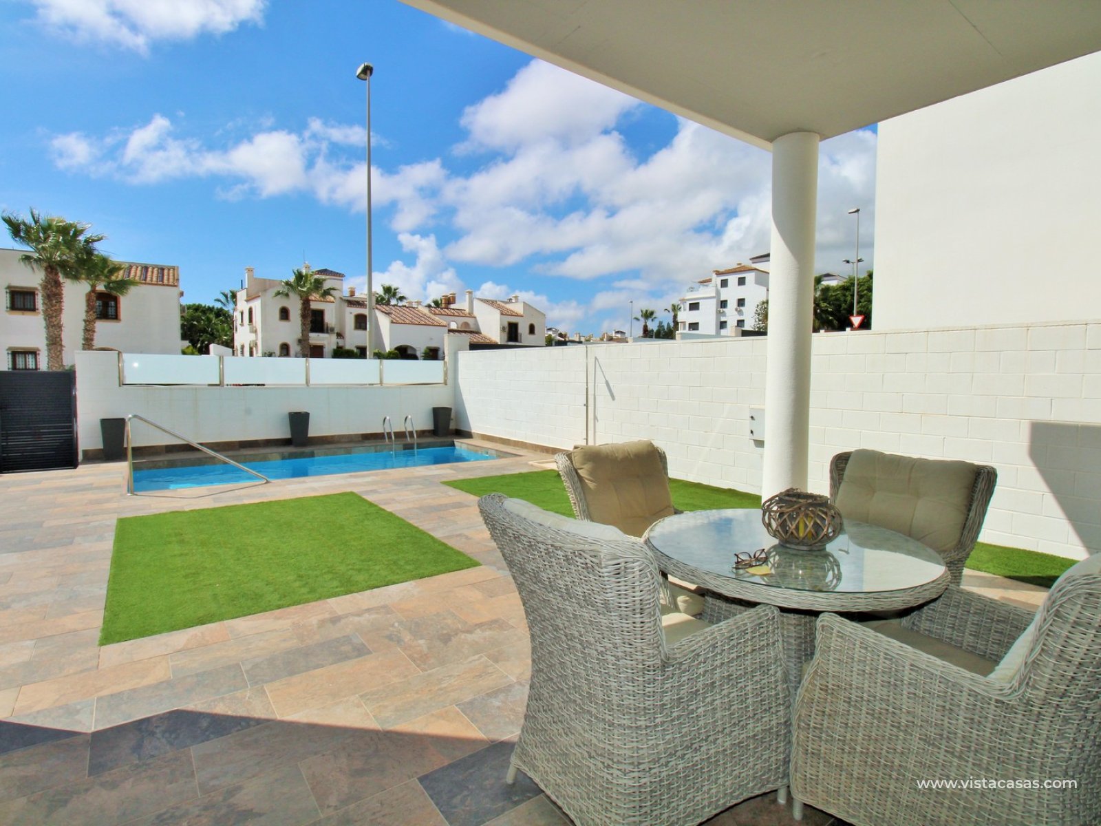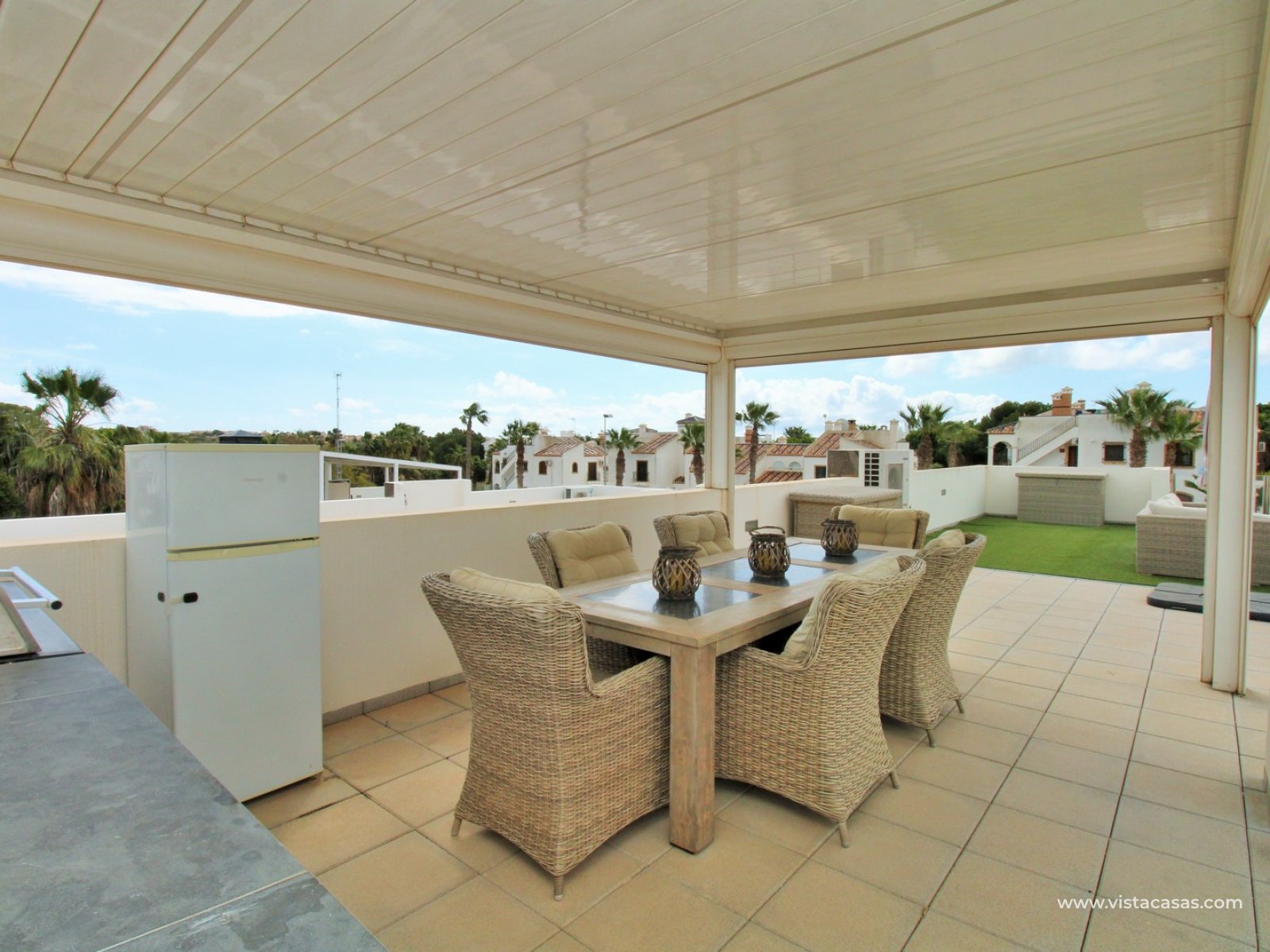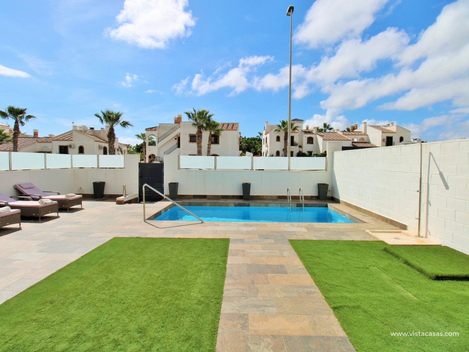 Located in the sought-after Pau 8 area of Villamartin, this beautifully presented 3-bedroom detached Innova villa offers effortless living on one level. Designed with comfort and quality in mind, the home features a private swimming pool, spacious roof solarium, and a generous garden with a covered terrace – ideal for relaxing or entertaining guests.