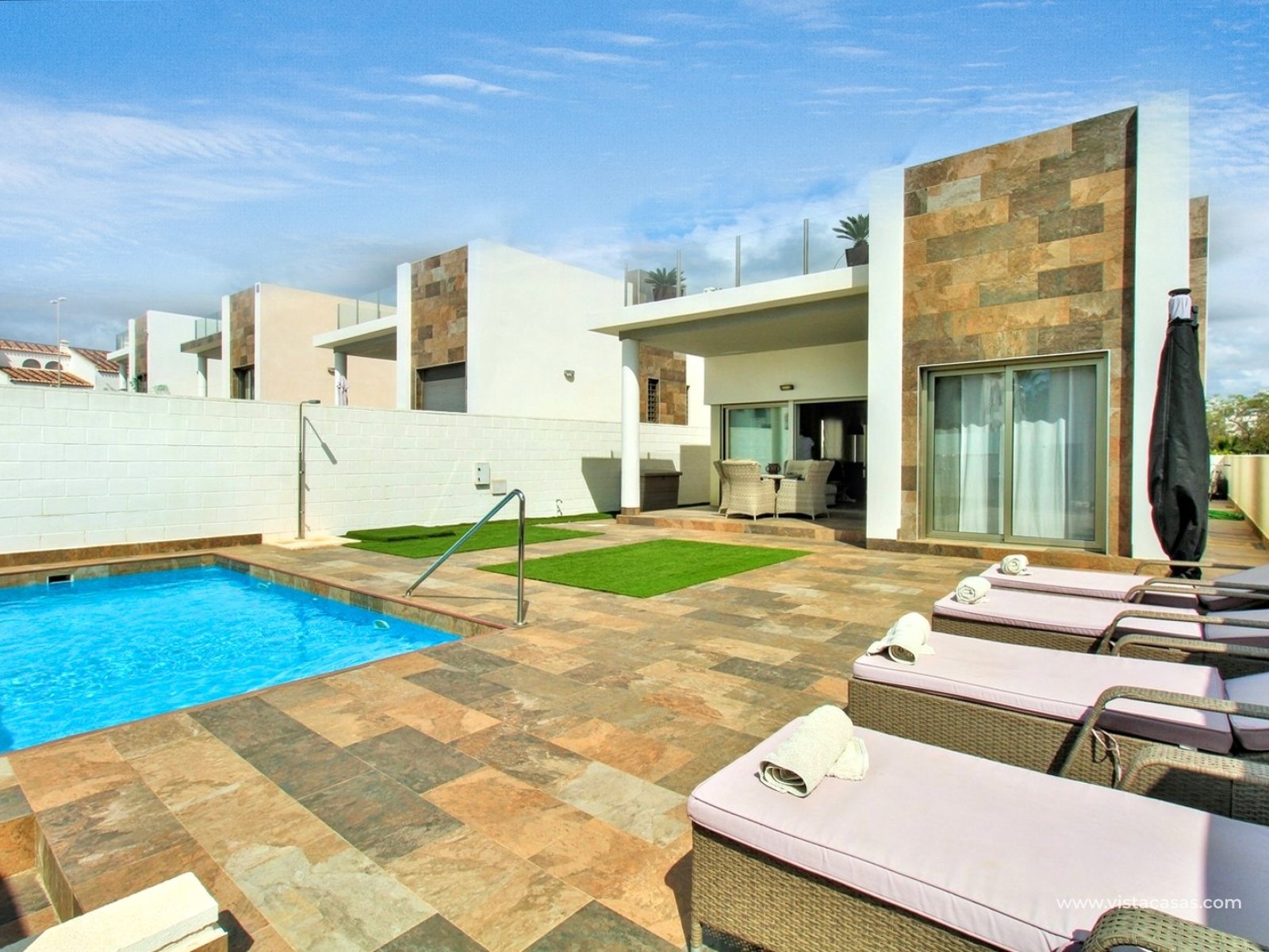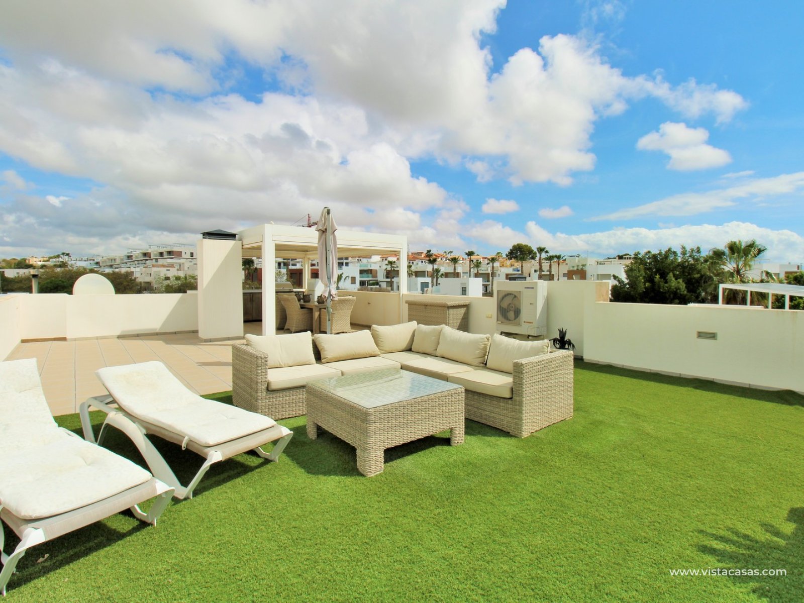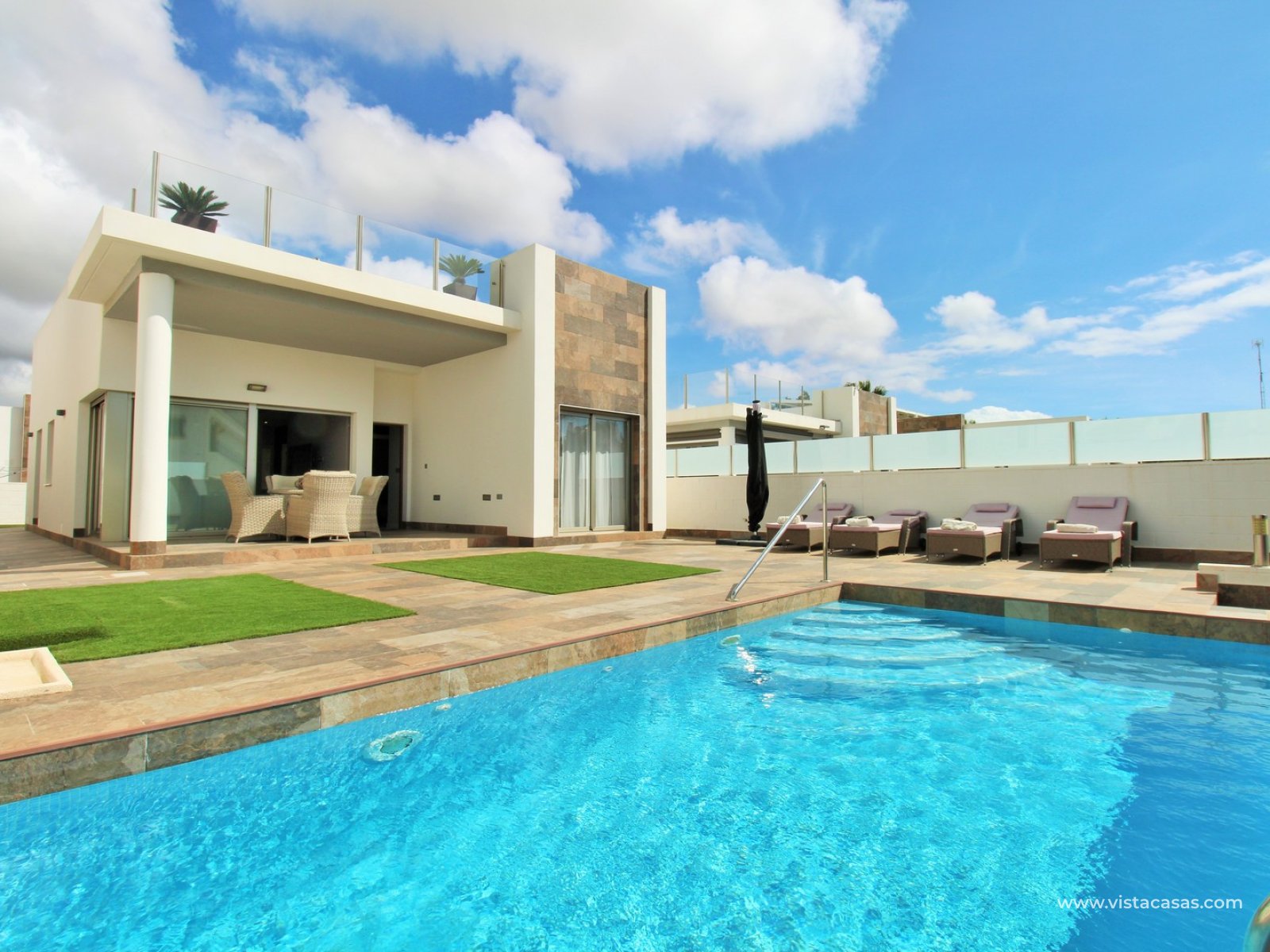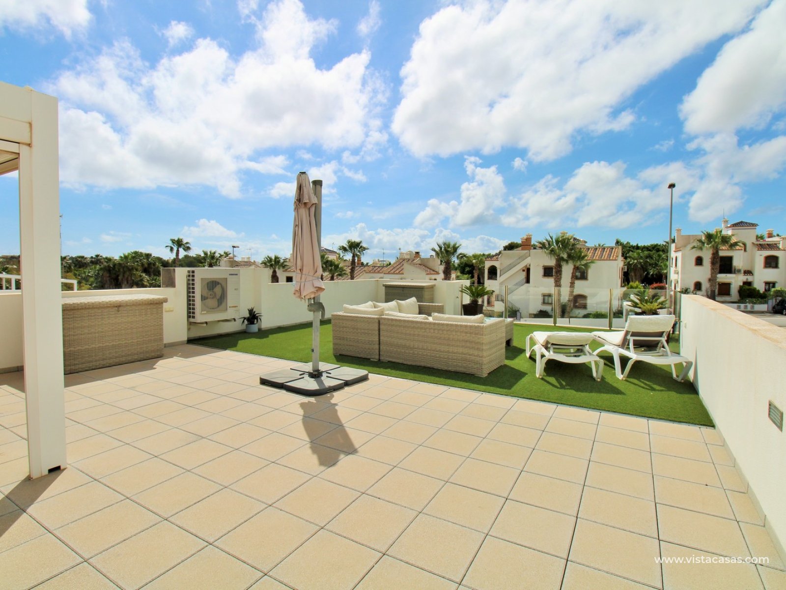 Located in the sought-after Pau 8 area of Villamartin, this beautifully presented 3-bedroom detached Innova villa offers effortless living on one level. Designed with comfort and quality in mind, the home features a private swimming pool, spacious roof solarium, and a generous garden with a covered terrace – ideal for relaxing or entertaining guests.