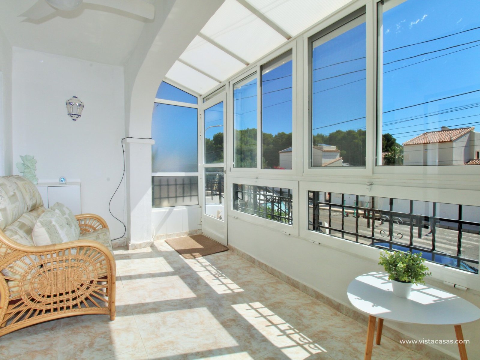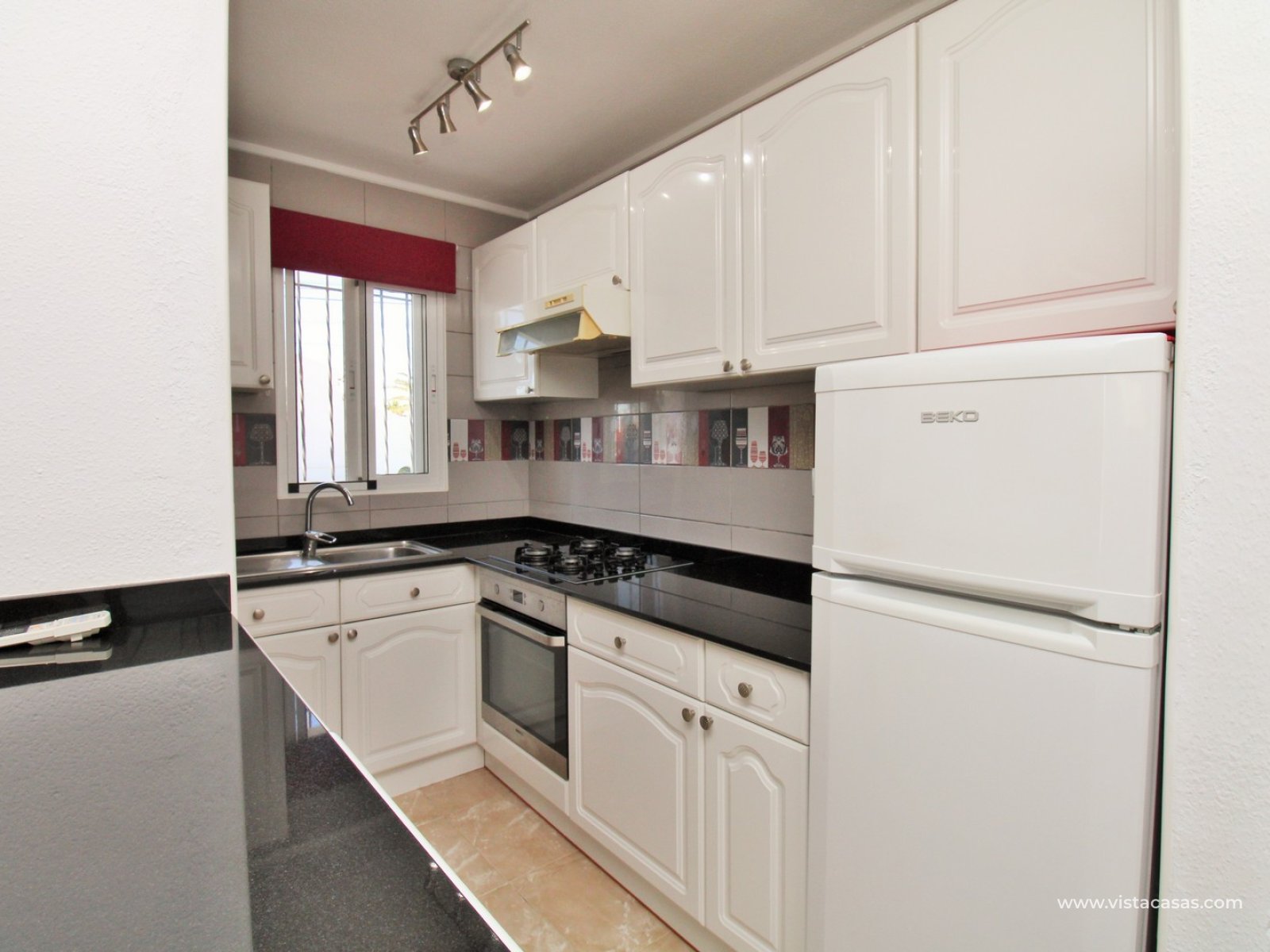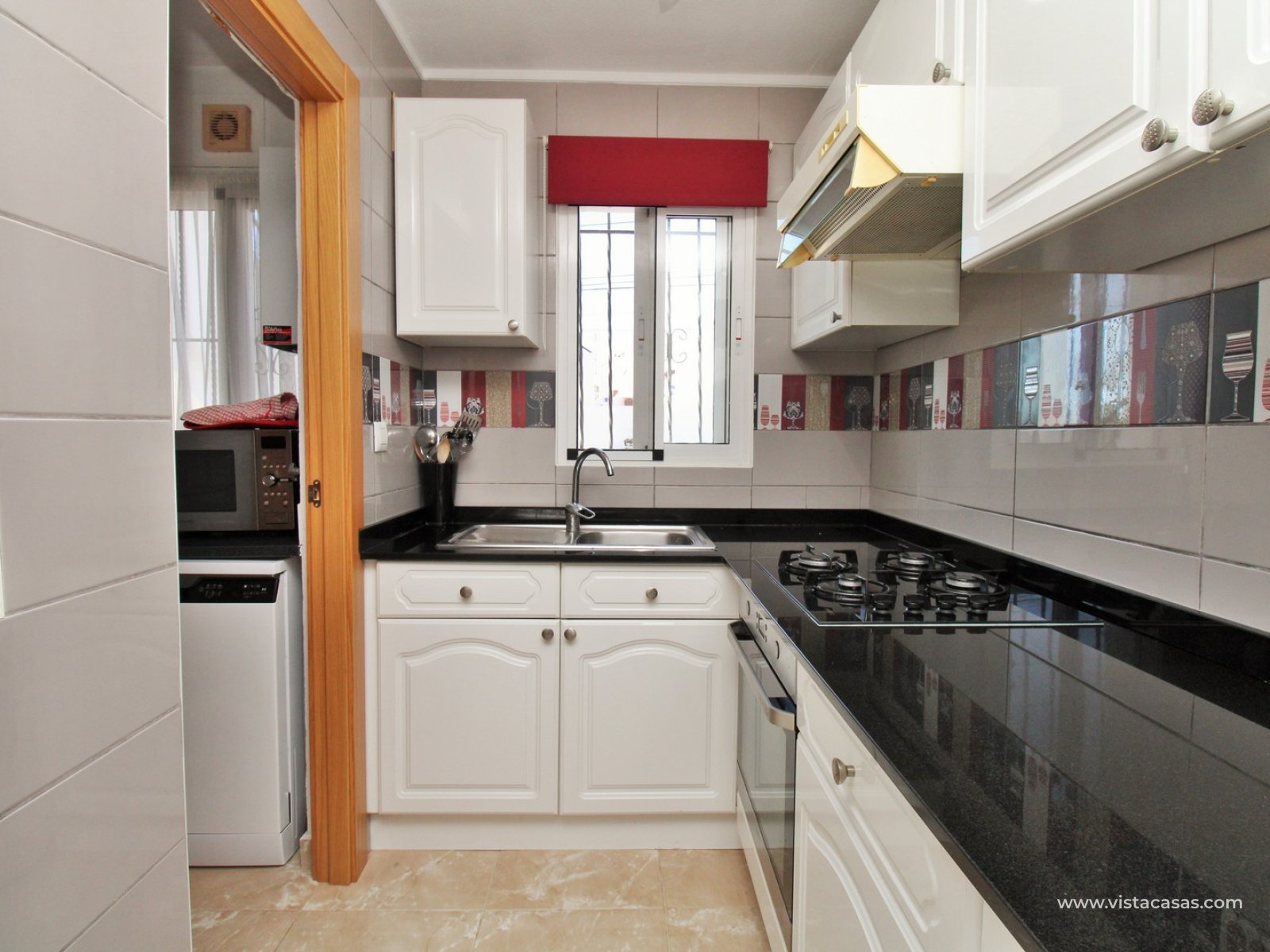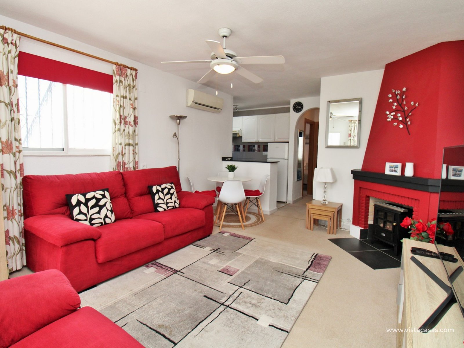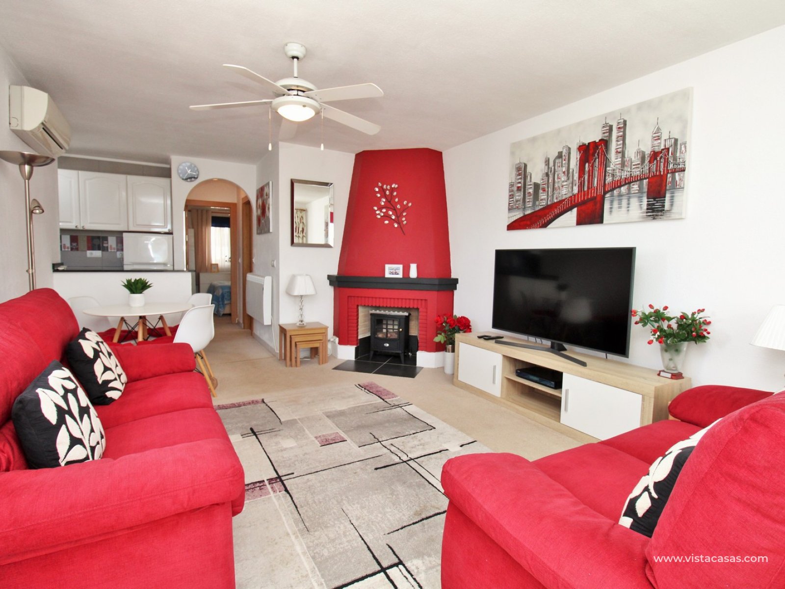 This well-presented ground floor corner apartment, complete with a private tiled garden and terrace, is located in the highly regarded Verdemar III development in Villamartin. The property offers a bright and airy open-plan kitchen and living/dining area with a fireplace, two double bedrooms with fitted wardrobes, and a newly renovated bathroom with a walk-in shower. To the front, the garden provides ample space for outdoor dining and sunbathing, with retractable awnings offering shade when needed. An enclosed terrace/porch creates a comfortable additional seating area, ideal for enjoying the outdoor space throughout the year.