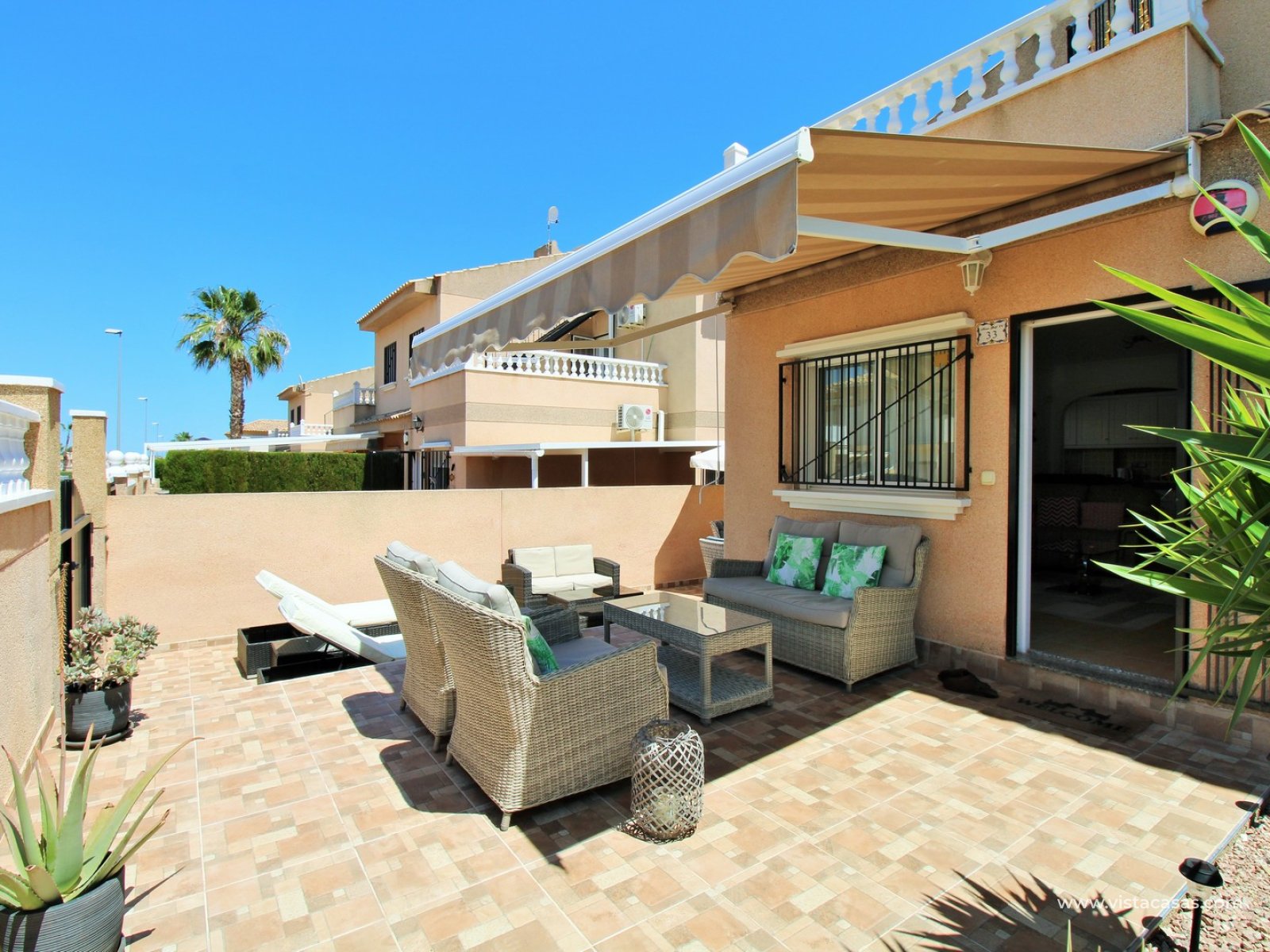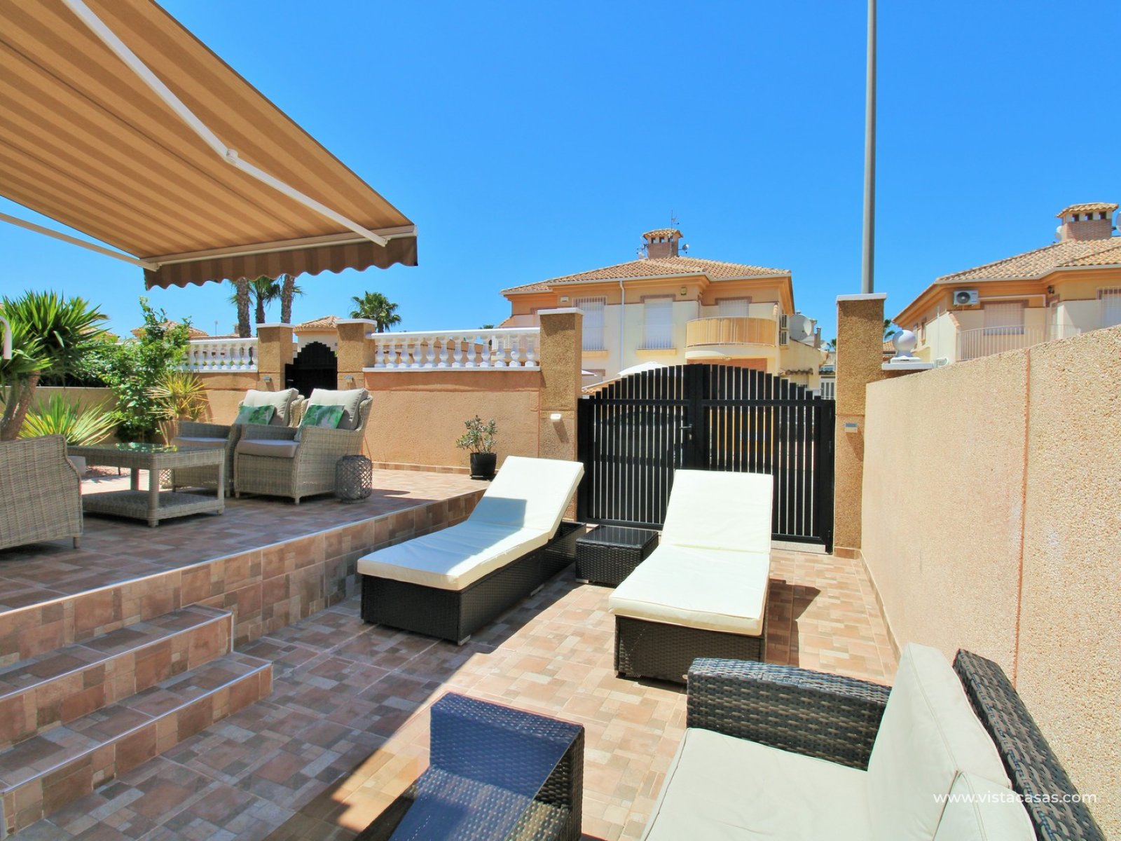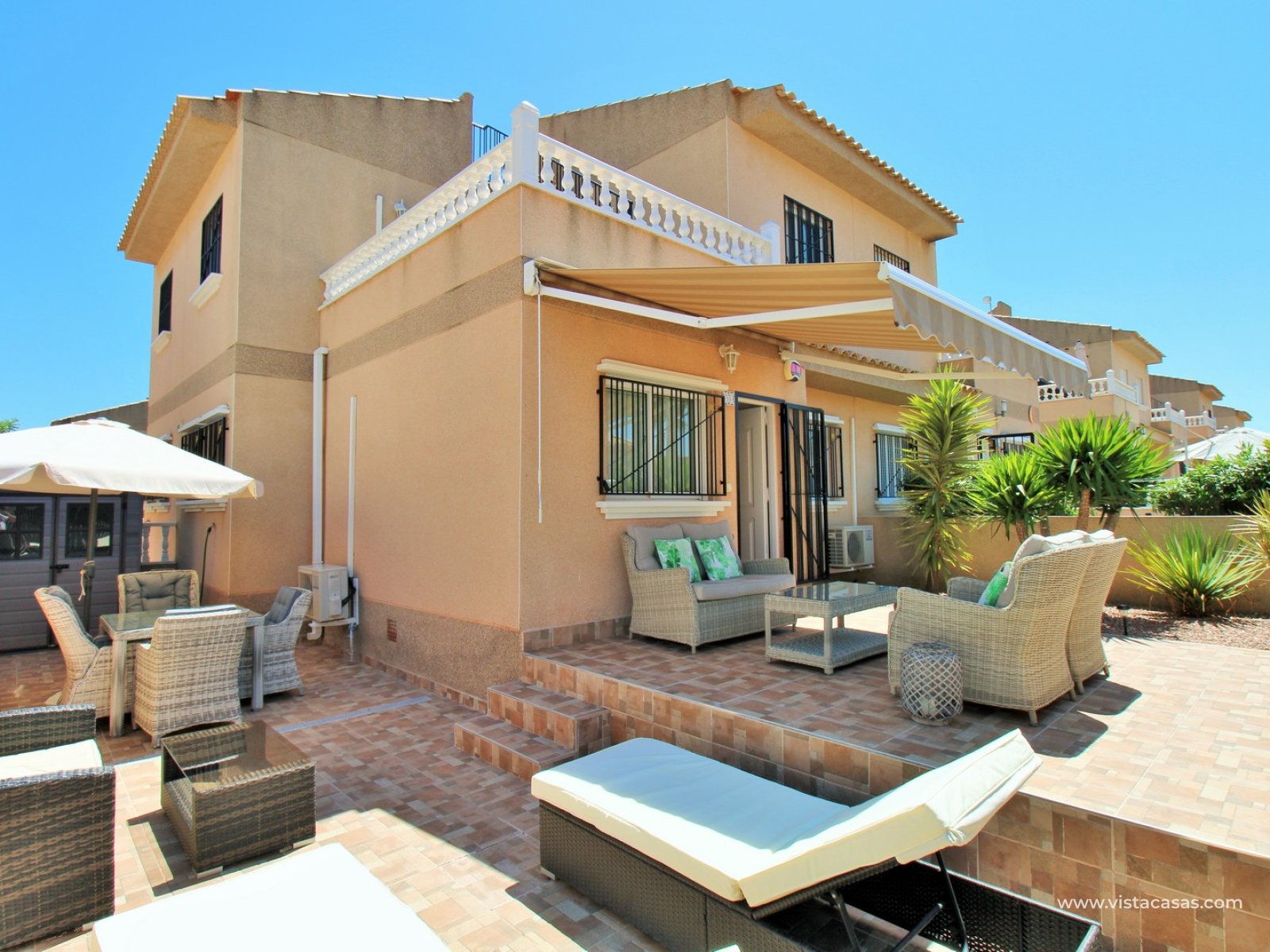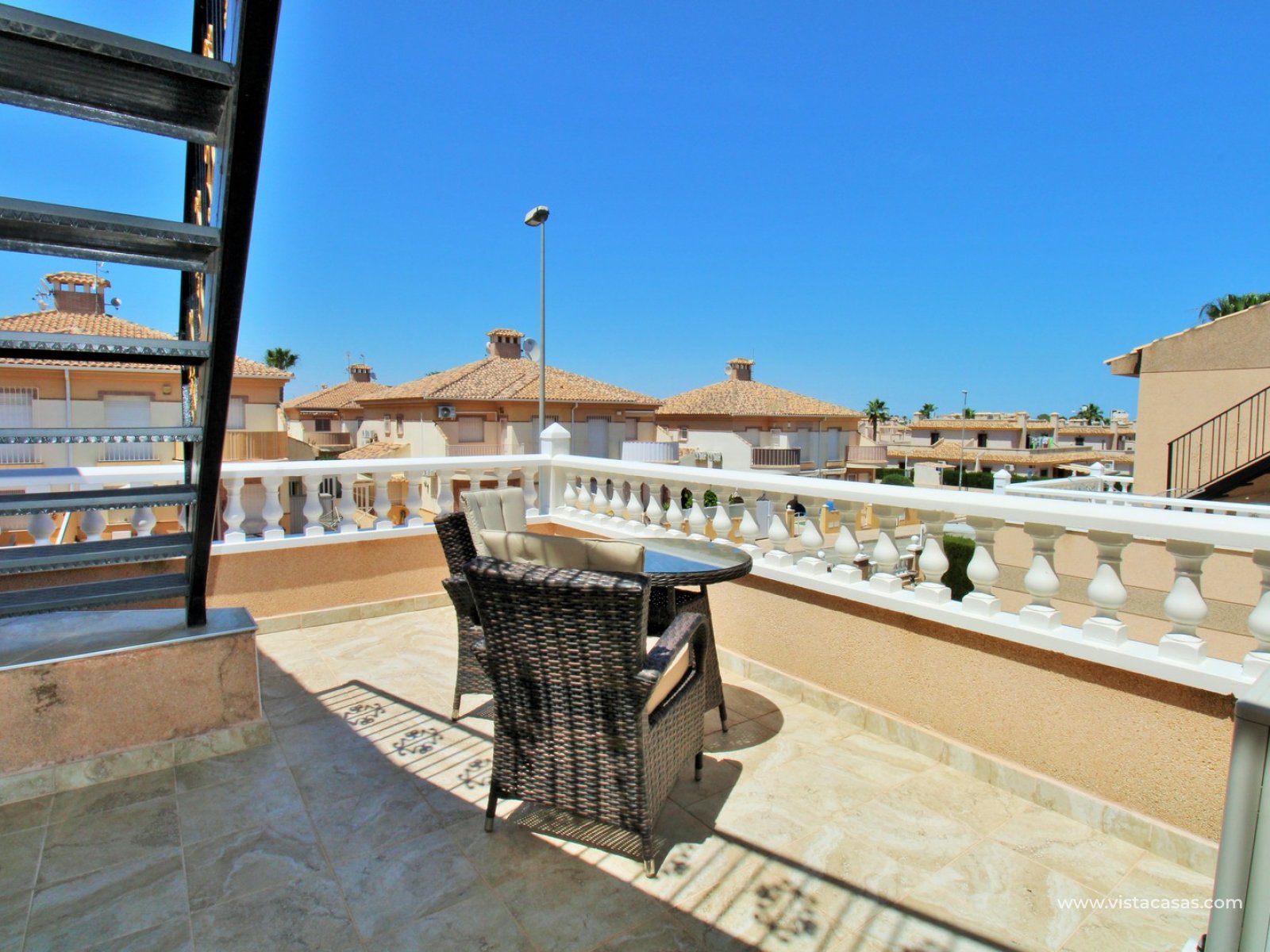 This bright and spacious three-bedroom quad house is set in the popular Pau 8 area of Villamartin, just a short walk from the renowned Villamartin Plaza and golf course. The property has been carefully maintained and offers a welcoming layout with excellent outdoor space and many improvements including new tiling, front gates, bathrooms... The home features an L-shaped tiled garden with a gated driveway, a first-floor balcony, and a private roof solarium—ideal for enjoying the sun throughout the day.