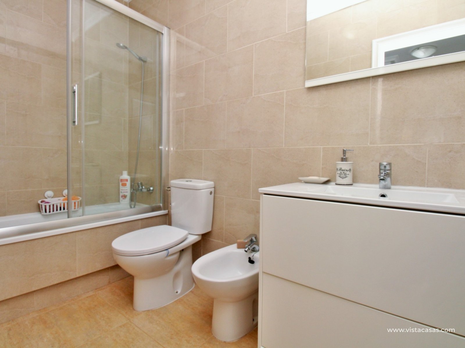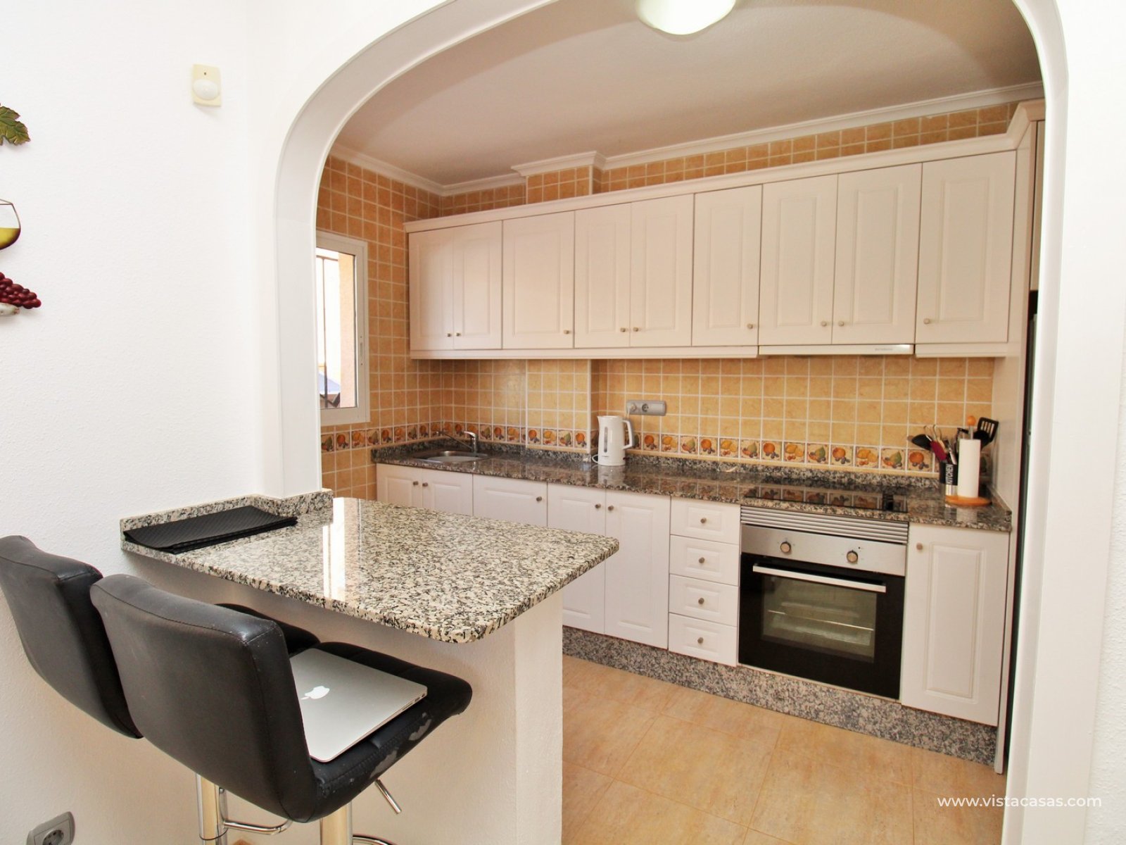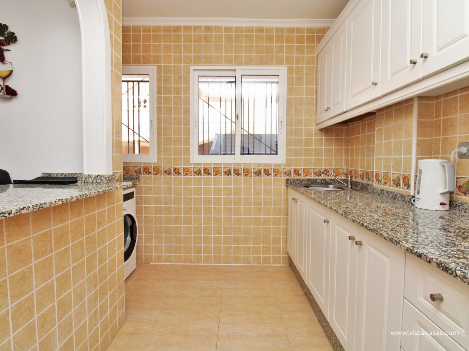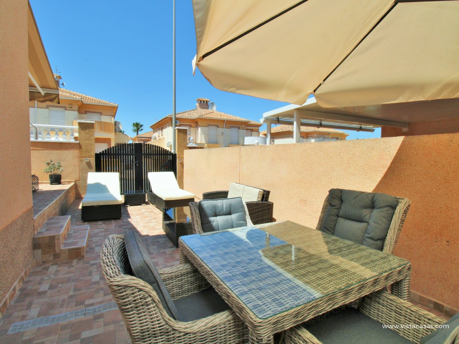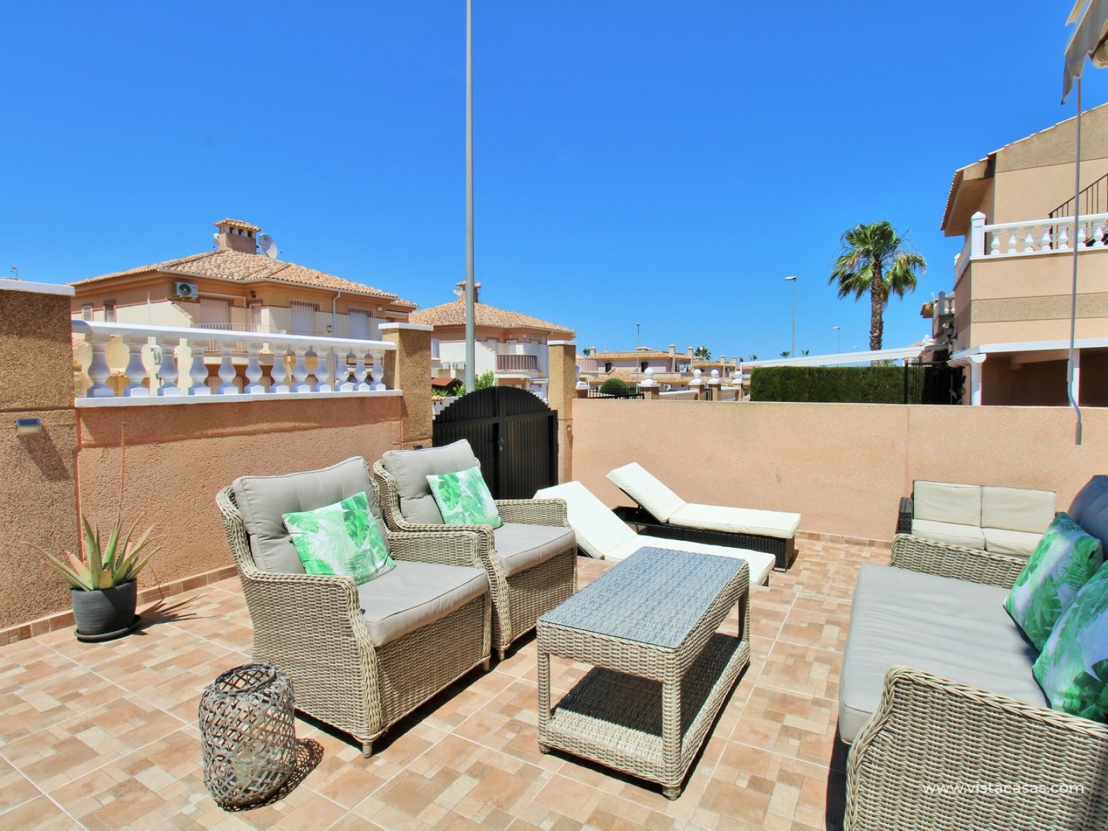 This bright and spacious three-bedroom quad house is set in the popular Pau 8 area of Villamartin, just a short walk from the renowned Villamartin Plaza and golf course. The property has been carefully maintained and offers a welcoming layout with excellent outdoor space and many improvements including new tiling, front gates, bathrooms... The home features an L-shaped tiled garden with a gated driveway, a first-floor balcony, and a private roof solarium—ideal for enjoying the sun throughout the day.