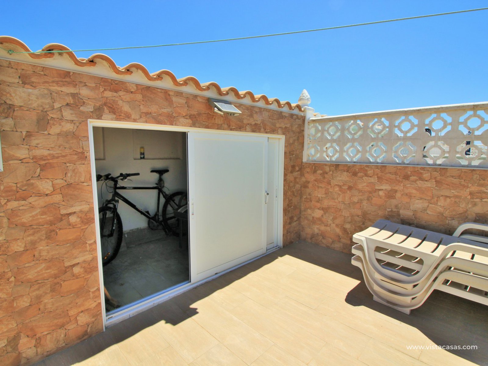 A must see 2 bedroom top floor apartment with large roof solarium in Al-Andalus 1, La Florida, just a short stroll to the local bars and restaurants. The property comprises of a bright lounge-dining area with a fully fitted kitchen, 2 bedrooms with fitted wardrobes and a renovated family bathroom with walk-in shower. There is a balcony accessible from the lounge area which has sun awnings. External stairs lead to the large roof solarium with plenty of space for sunbathing and dining. There is also a storage cupboard on the solarium big enough to store bikes inside. The apartment is in very good condition and is for sale furnished. Part of a community with the use of a communal pool. An ideal holiday home or used for permanent living, with all services located within walking distance.
