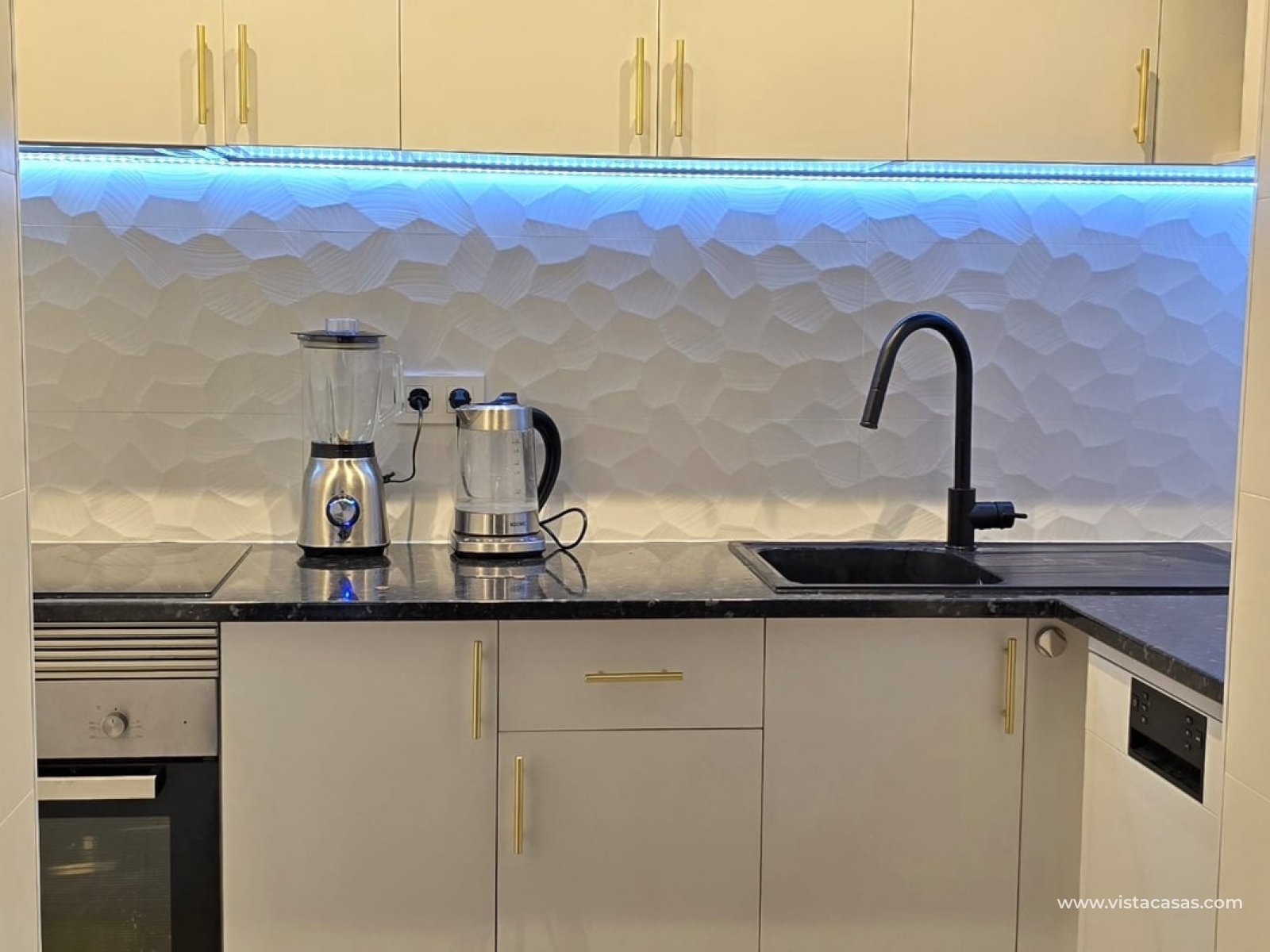 This stunning newly renovated 3-bedroom, 1-bathroom apartment is perfectly situated second line from the famous beaches of Torrevieja, including the sought-after Playa del Acequión. Offering a bright and welcoming atmosphere, this fully furnished property is move-in ready, making it the ideal home or investment opportunity. Designed with modern technology and smart home features, this apartment offers the ultimate convenience. WiFi-controlled air conditioning, underfloor heating, and water system provide year-round comfort at the touch of a button. Additionally, the electronic shutters can also be controlled via WiFi, adding extra ease and security. Located on the fourth floor, the balcony boasts breathtaking sea views, creating the perfect spot to enjoy your morning coffee or unwind in the evening. With its southeast-facing orientation, the property is bathed in natural light throughout the day, enhancing the warm and inviting ambiance. Everything you need is right on your doorstep! From bustling bars and top-rated restaurants to bakeries, schools, hospitals, and the vibrant seafront promenade of Torrevieja, this prime location offers both comfort and convenience. If you're looking for a stylish, modern apartment by the beach with high-end technology and incredible views, this is the perfect choice. Don't miss out—contact us today for more details or to arrange a viewing!