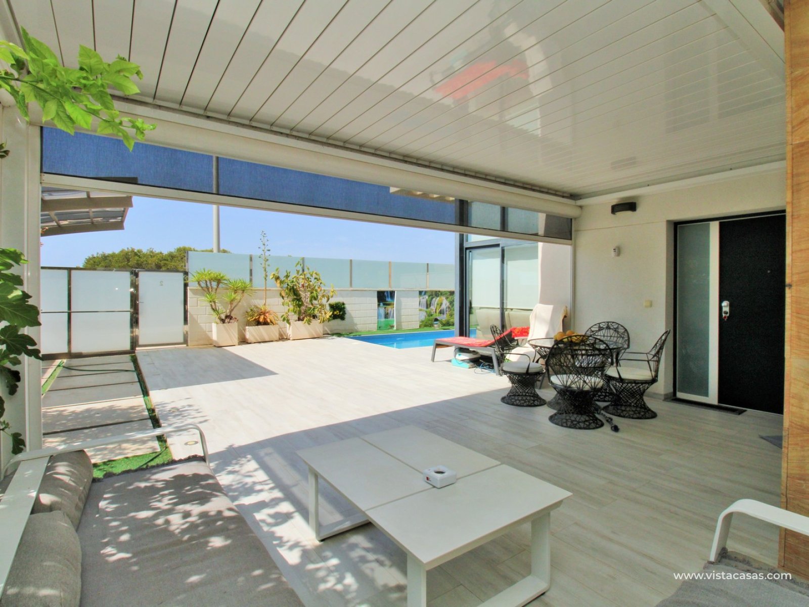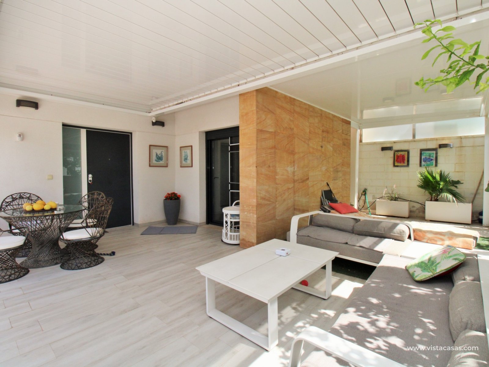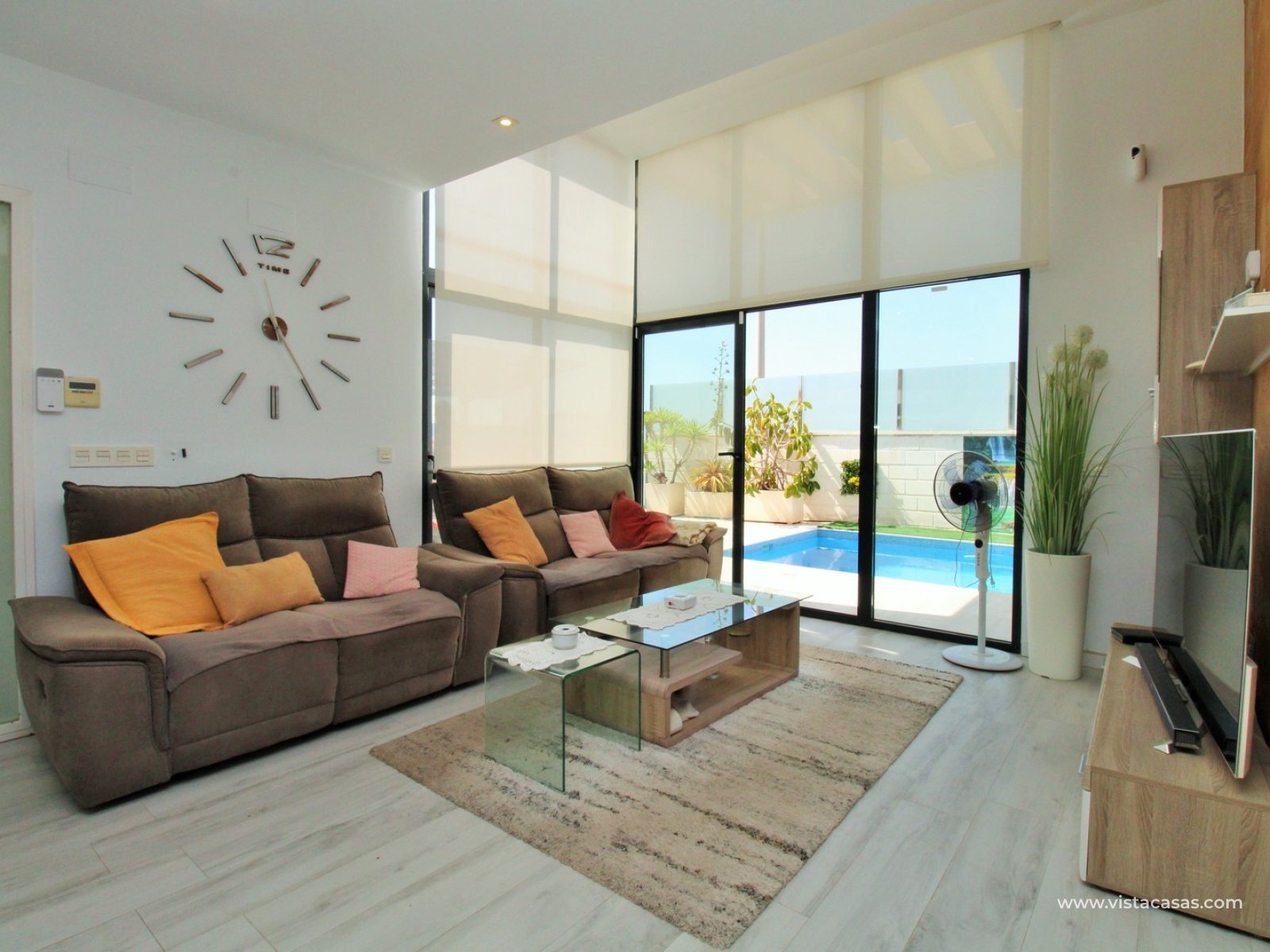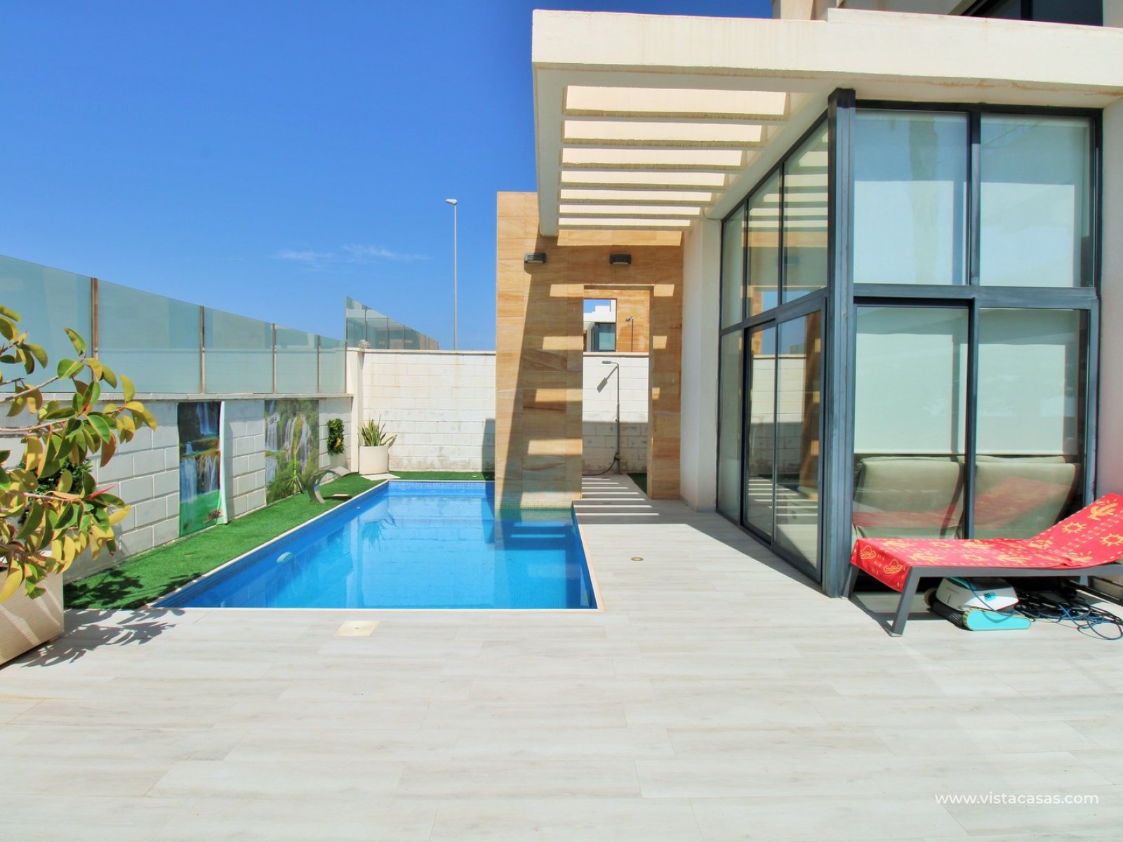 Attractive South-facing detached villa with three bedrooms and three bathrooms, complete with private pool, for sale in the sought-after Palm Beach II development, Lomas de Cabo Roig. Ideally located within walking distance of the Lomas commercial centres, offering a good selection of restaurants, bars, and a supermarket. The popular beaches of Aguamarina and La Glea (Campoamor) are just 2 km away.
