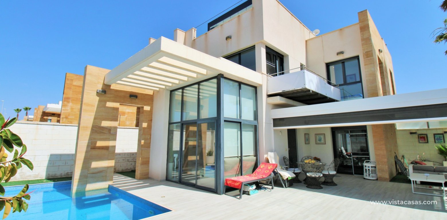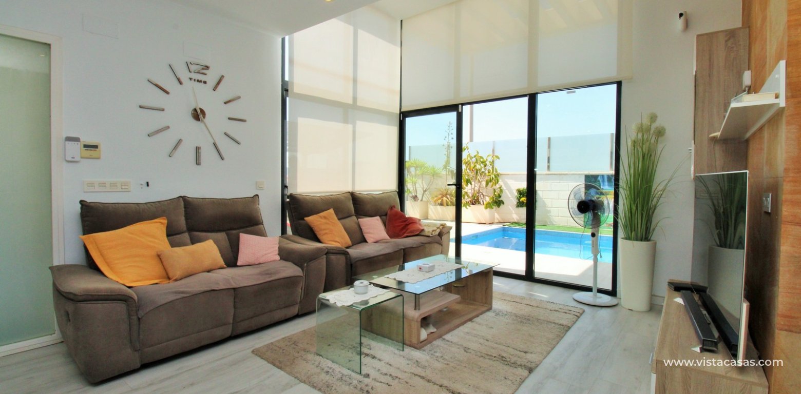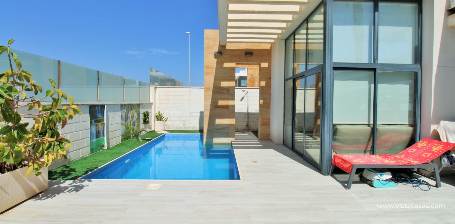 Attractive South-facing detached villa with three bedrooms and three bathrooms, complete with private pool, for sale in the sought-after Palm Beach II development, Lomas de Cabo Roig. Ideally located within walking distance of the Lomas commercial centres, offering a good selection of restaurants, bars, and a supermarket. The popular beaches of Aguamarina and La Glea (Campoamor) are just 2 km away.