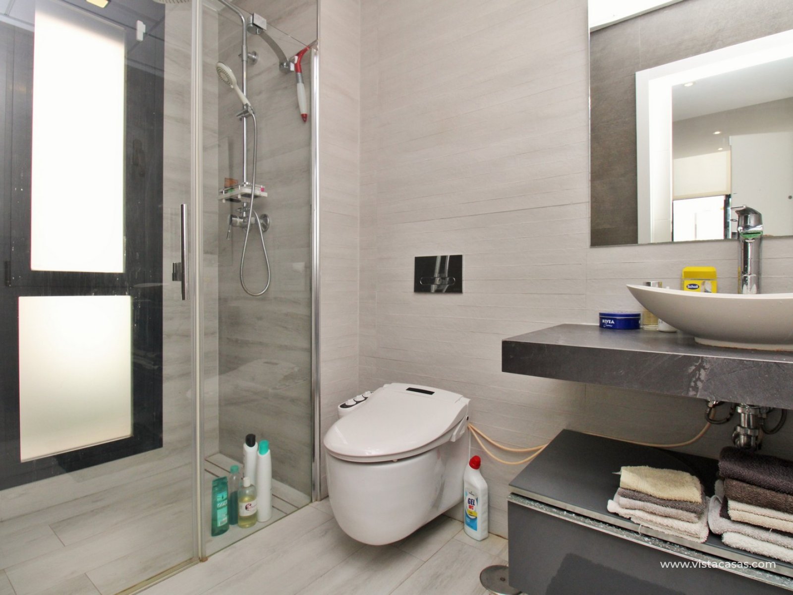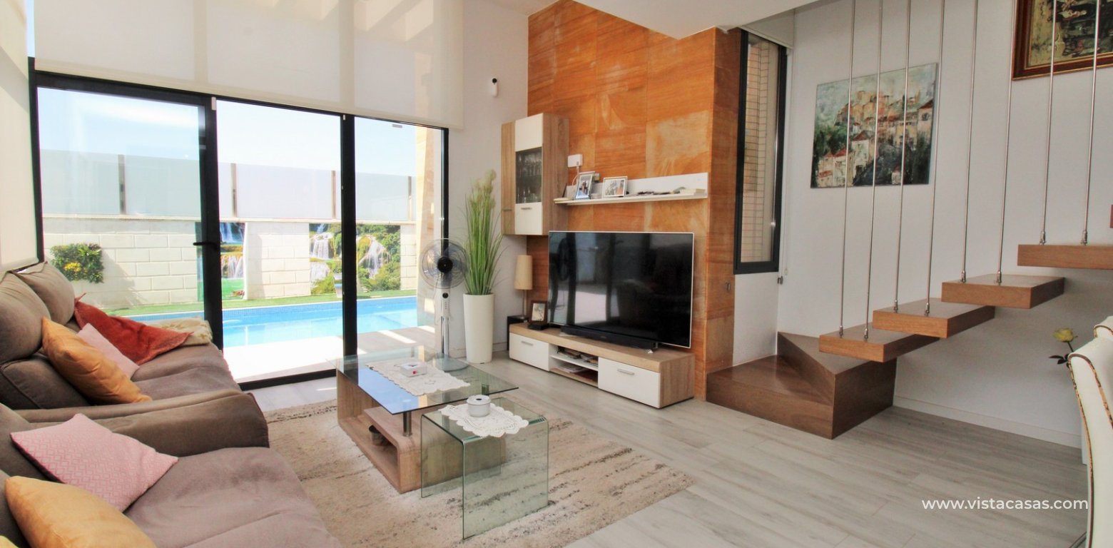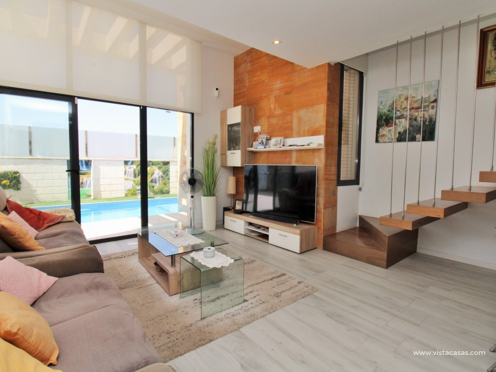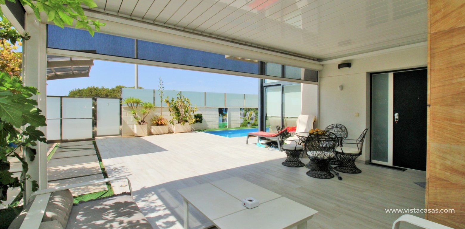 Attractive South-facing detached villa with three bedrooms and three bathrooms, complete with private pool, for sale in the sought-after Palm Beach II development, Lomas de Cabo Roig. Ideally located within walking distance of the Lomas commercial centres, offering a good selection of restaurants, bars, and a supermarket. The popular beaches of Aguamarina and La Glea (Campoamor) are just 2 km away.