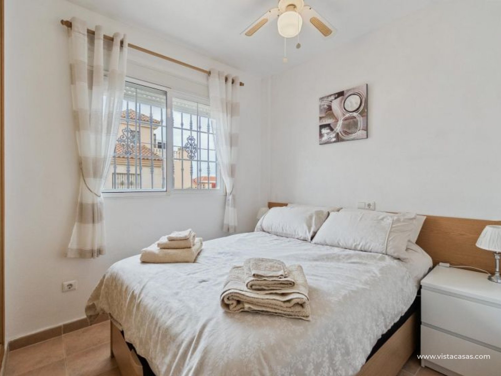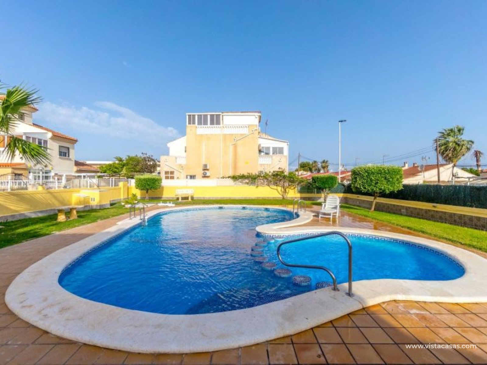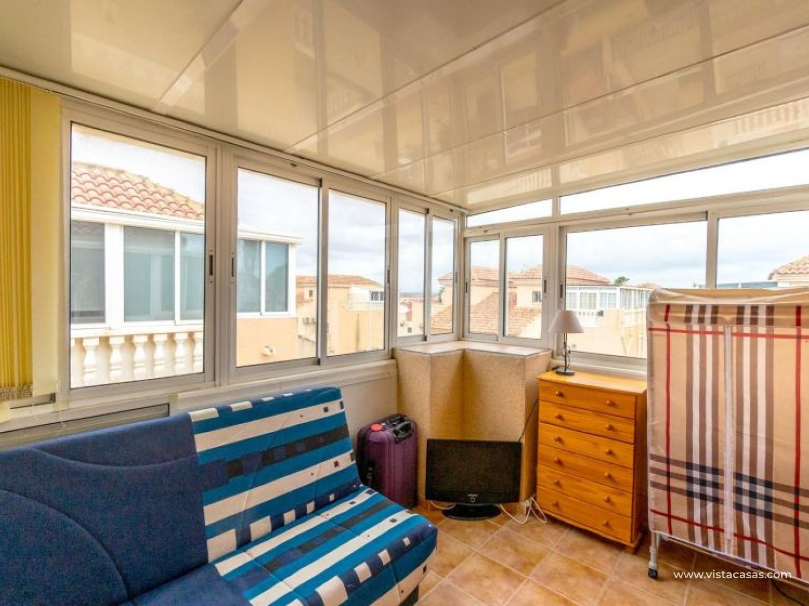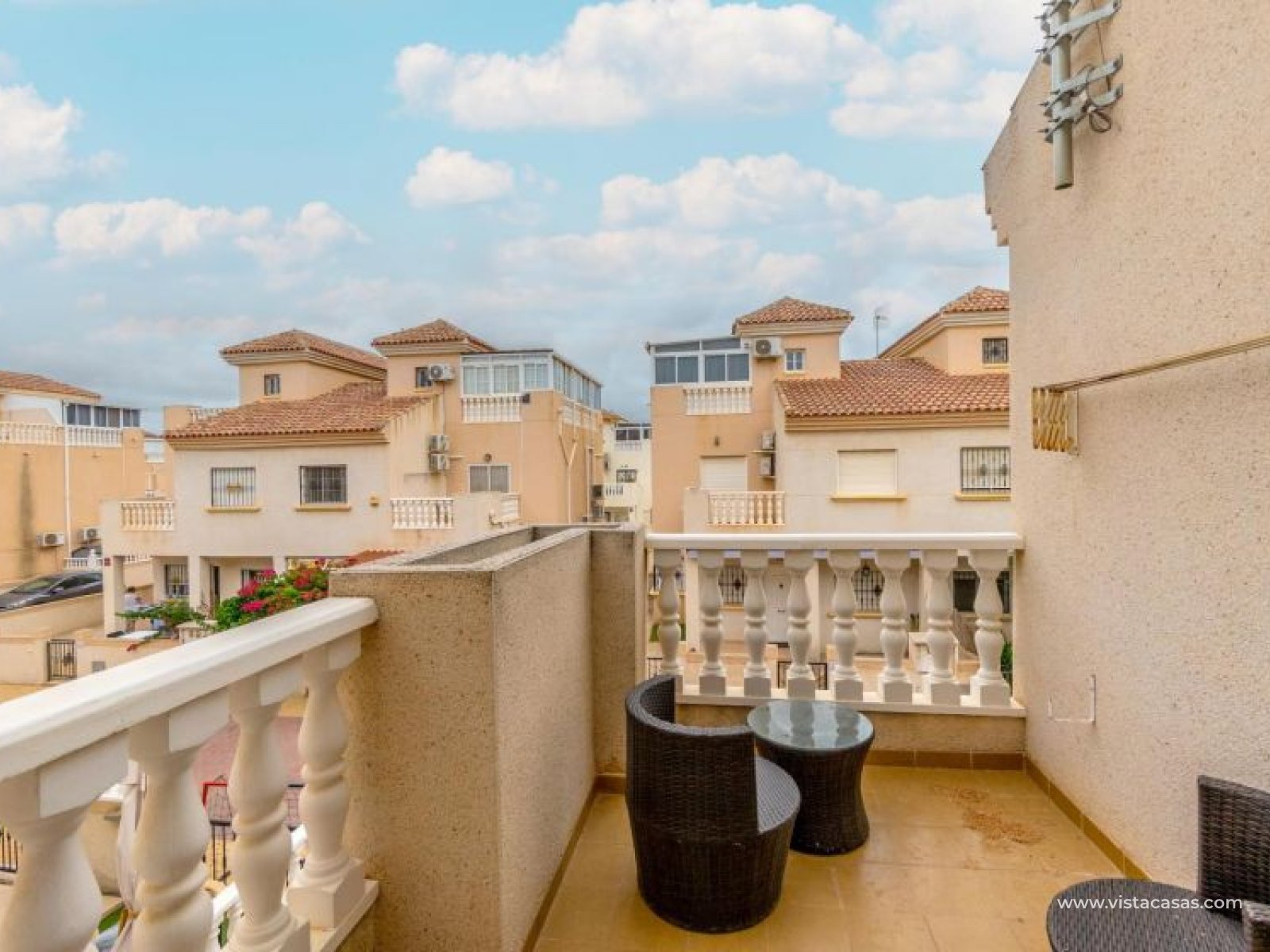 Your new home on the Costa Blanca is waiting for you! Imagine living under the Mediterranean sun in a bright, comfortable home, ready to move in from day one. This beautiful quad-style townhouse in Residencial El Coral II, Torrevieja, has everything you need: space, location, and an ideal setting for year-round living, holidays, or a solid investment. The property is distributed over two floors plus a private roof terrace. At the entrance, you’ll find a spacious tiled garden, perfect for relaxing or entertaining outdoors. There’s also off-street parking on the plot and a practical storage room. The ground floor features a bright glazed terrace – where you can enjoy sunny breakfasts – a light-filled living-dining room, a fully equipped independent kitchen, a closed utility room, and a guest toilet. On the first floor, there are two bedrooms, one with a private terrace, and a renovated bathroom with a walk-in shower. The roof terrace has been enclosed and converted into a third bedroom or multipurpose room. A marble staircase adds a touch of elegance. The home is sold furnished and ready to move into. The community offers a communal pool and is located in a peaceful yet well-connected area: supermarkets, schools, pharmacy, restaurants, sport zones, cinemas, and the beautiful La Siesta park nearby. And best of all: only 2.5 km from the beaches, 600 meters from the Pink Lake, and 40 km from Alicante airport. Don’t miss this opportunity – come and visit with no obligation. Call or message us today to schedule your viewing. Your new home in Torrevieja is waiting!
