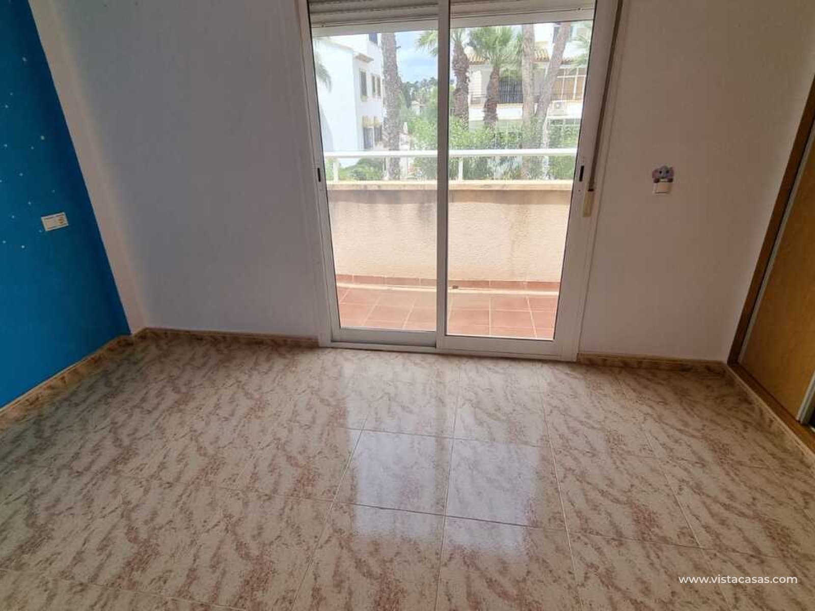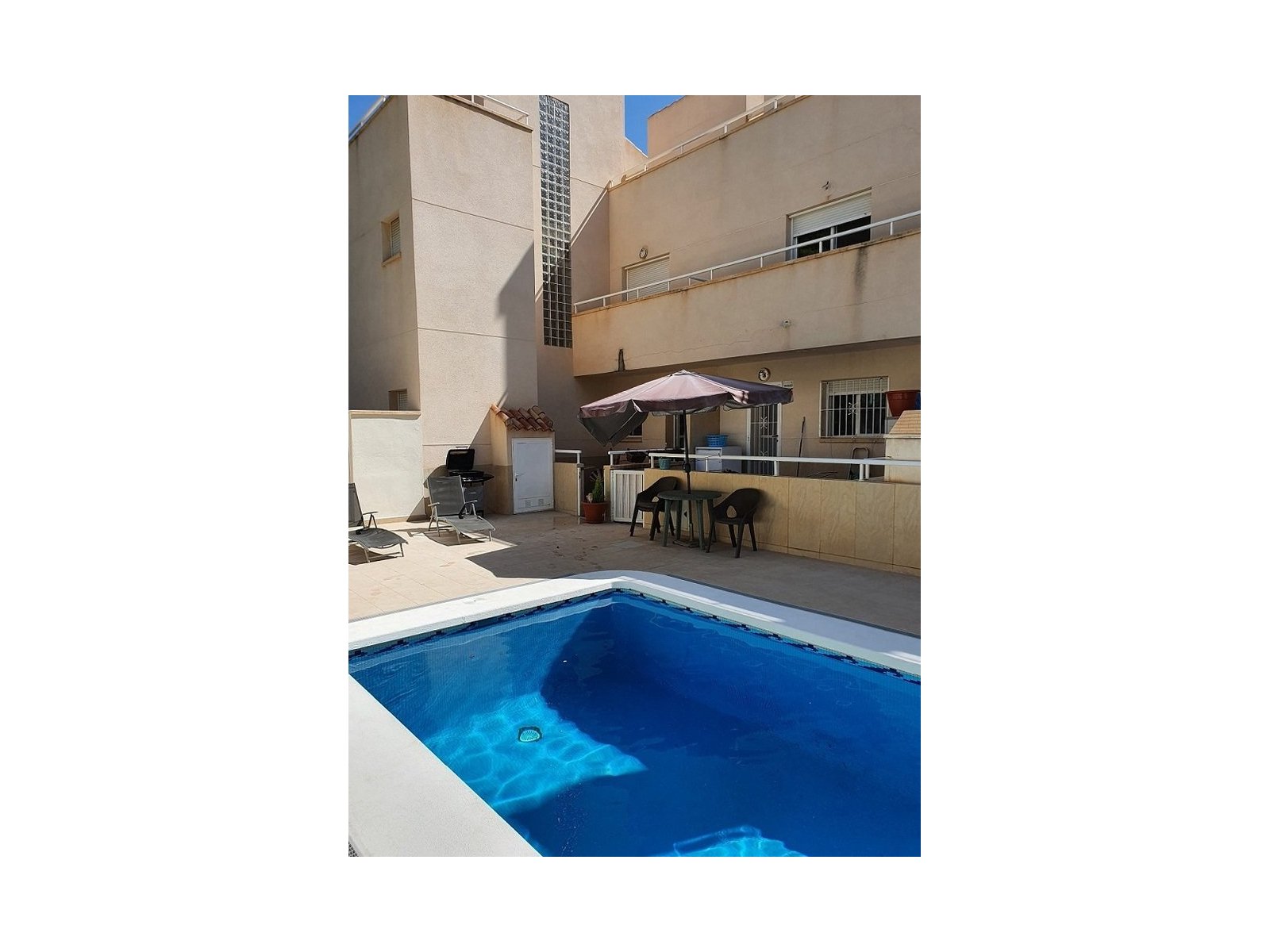 We present this townhouse triplex in Villamartín, Orihuela Costa, in a charming residential area consisting of only 9 homes. Enjoy a home with a privileged location, just 3 km from La Zenia Beach and 5 minutes from La Zenia Boulevard Shopping Center, surrounded by supermarkets, restaurants, and all the services you need.The property features a communal pool, which you can access directly from the back of the house. Its East-facing orientation ensures natural light and warmth throughout the day. Additionally, at the front of the house, a spacious patio allows you to park your vehicle or simply enjoy great moments with friends and family.Inside, upon entering, we find a cozy living room, a guest toilet, a small bedroom, and a practical open-plan kitchen equipped with access to the rear terrace. From here, you can reach the pool to enjoy the sun and tranquility.On the upper floor, we find two bedrooms: one with an en-suite bathroom and a walk-in closet, perfect for keeping everything organized. There is also another full bathroom with a bathtub. And on the highest floor, a solarium, ideal for sunbathing or simply relaxing.If you are looking for a perfect home to live in all year round or to enjoy your holidays, don't miss this opportunity. Contact us for more information and schedule your visit!