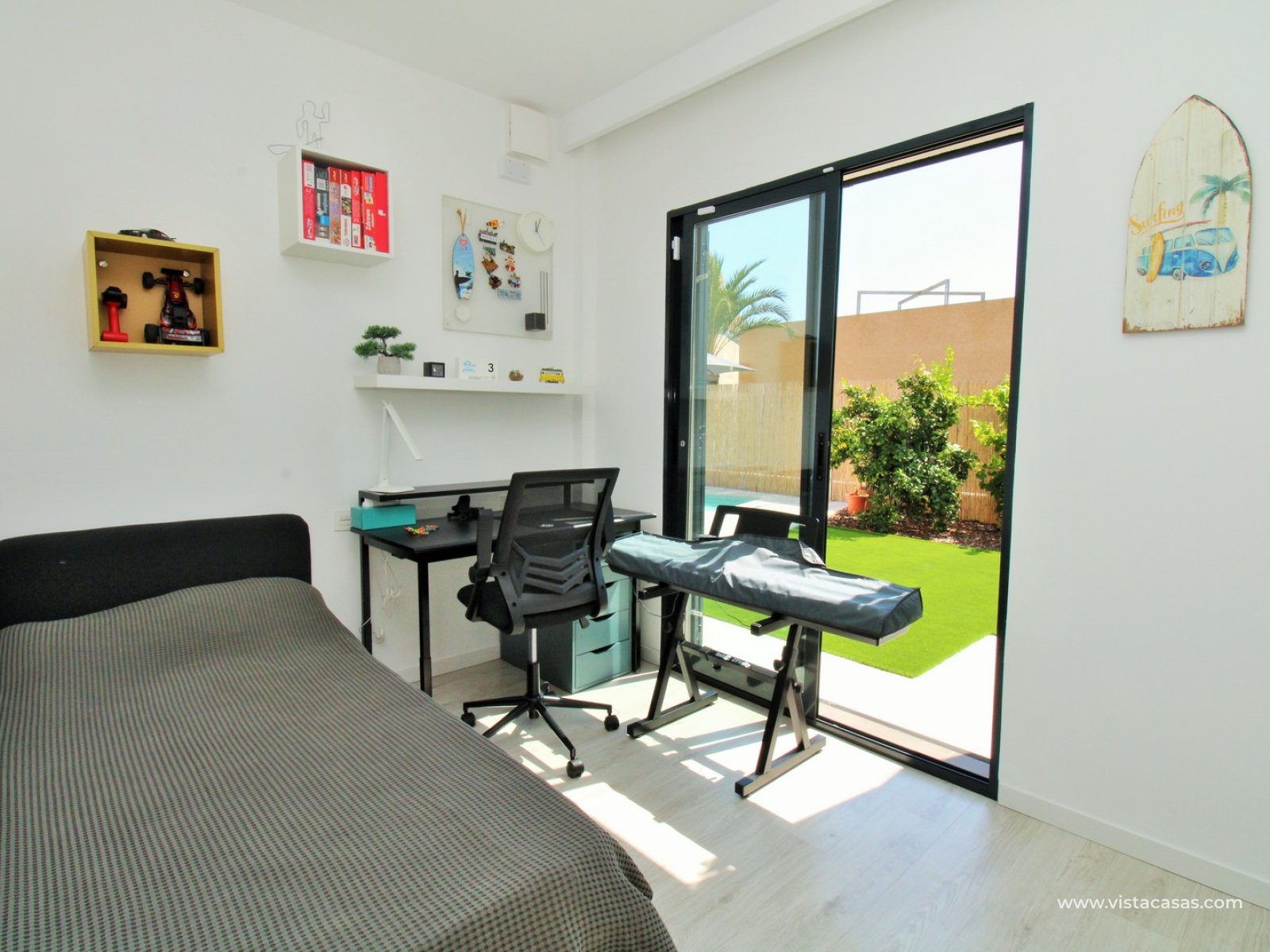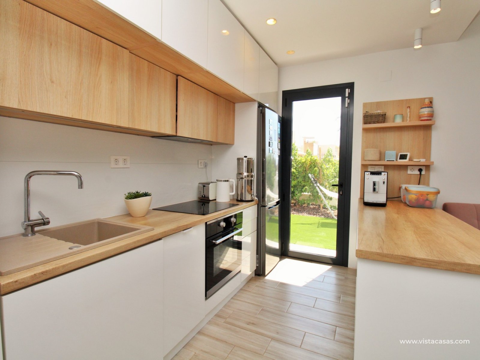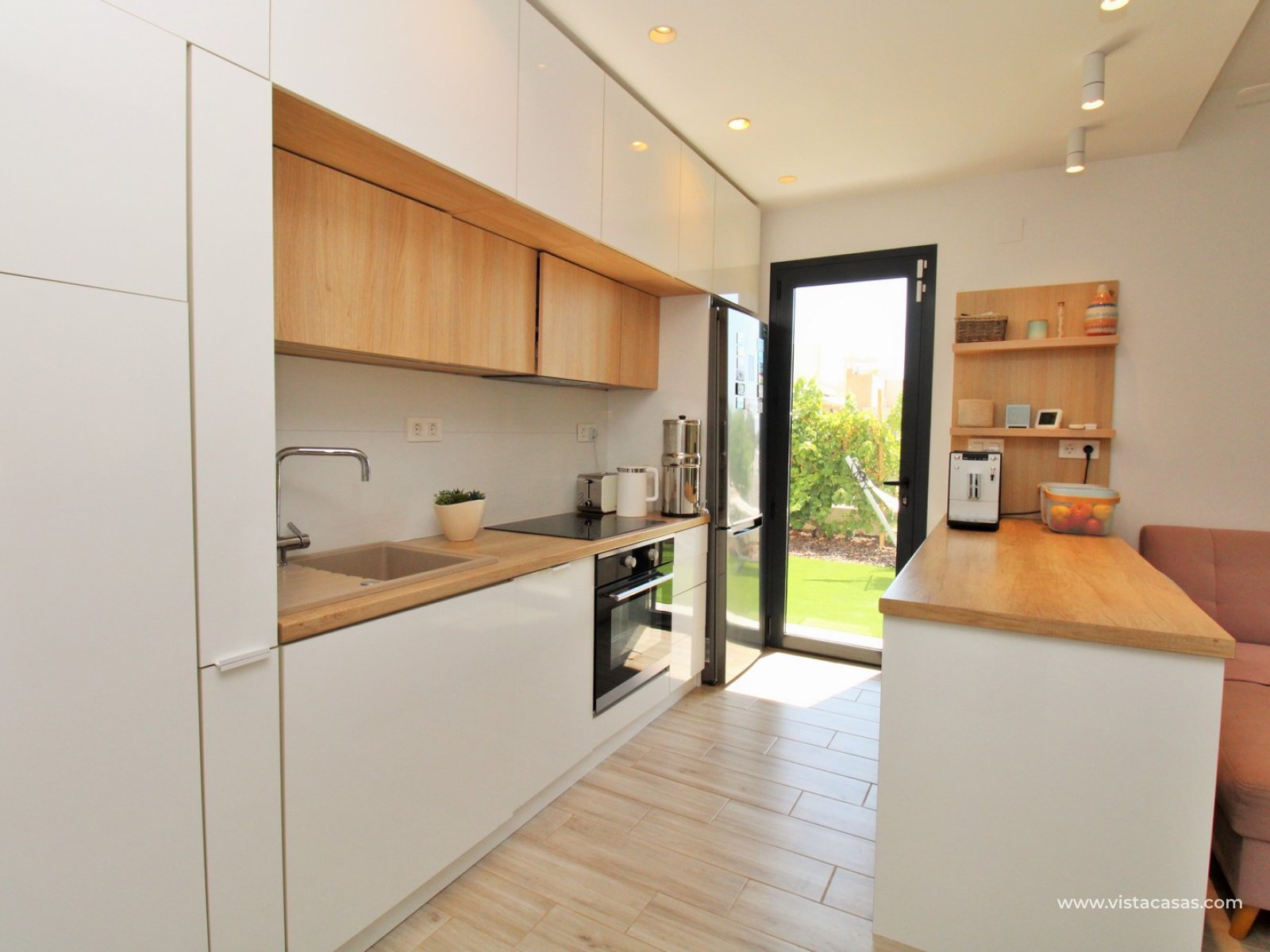 Tucked away in the sought-after Sabrina community of La Zenia, this modern single-storey villa offers a comfortable and stylish home just a short walk from everything you need – beaches, shops, restaurants and more. Set on a 320 m2 plot, the property includes three bright bedrooms, two sleek bathrooms, and a well-designed open-plan kitchen and living area. Large windows bring in natural light throughout the day, creating a calm and welcoming space to relax in.