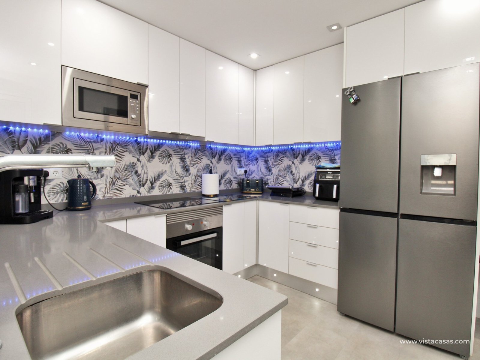 This stylish and fully refurbished 3-bedroom, 2-bathroom quad villa is located in the residential area of La Laguna in Pau 26, Villamartin. The property has been thoughtfully modernised throughout, with updates including a brand new kitchen, contemporary bathrooms, new flooring, upgraded A/C units, furnishings, and white goods.