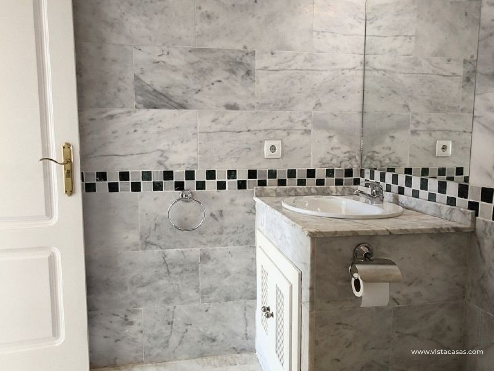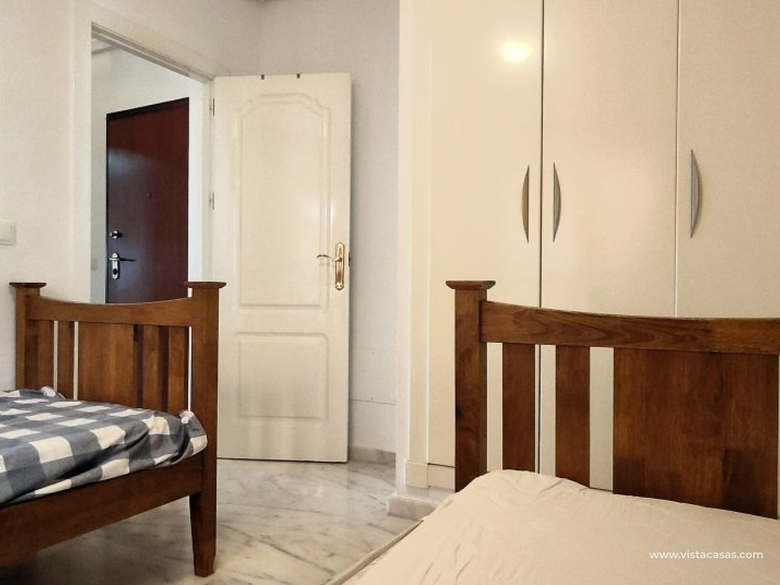 The layout is ideal for comfort and privacy: The main bedroom boasts its own en-suite bathroom, while the second bedroom is located right next to the main family bathroom – perfect for guests or family living. The property is finished to a high standard with marble flooring, built-in wardrobes, and plenty of natural light throughout. Outside, residents can enjoy a beautiful communal pool set in lush green gardens, perfect for soaking up the Costa Blanca sunshine. There’s also gated parking and lift access in the building for your convenience. Whether you're looking for a holiday getaway, a full-time home, or a great rental investment, this apartment ticks all the boxes. - Top location – walk to shops, bars, restaurant - Excellent layout with en-suite + separate main bathroom - Gated community with pool and parking - Move-in ready and full of charm Don’t miss this chance to own a slice of the good life in Villamartin!