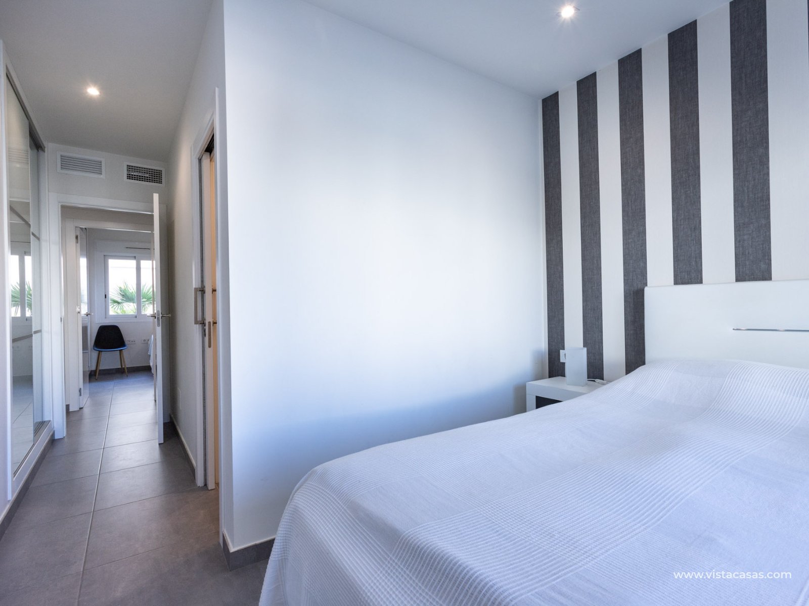 Bright Bungalow in Aguas Nuevas This single-story bungalow offers a practical layout and a prime location in Torrevieja's Aguas Nuevas. Spacious rooms, a private yard, and modern conveniences make this home an excellent choice for families and couples alike. Spacious and Functional Layout The property features an open-plan kitchen-living area, three bedrooms, and two bathrooms. The bedrooms are designed with functionality in mind and offer plenty of closet space. The living room seamlessly connects to the outdoors through large sliding glass doors, opening to a covered terrace. Large West-Facing Yard The private yard offers ample space for sunbathing, children’s play, or hosting gatherings. The west-facing orientation ensures beautiful moments outdoors, especially during stunning sunsets. Modern Amenities and Shared Facilities The bungalow is equipped with air conditioning, ensuring comfortable indoor temperatures year-round. Additionally, the property includes a garage parking space. Residents of the community have access to beautiful and expansive swimming pool areas. Convenient Location Close to Amenities Aguas Nuevas provides all daily services within walking distance: Shops are only 300 meters away. A school is located just across the street. Quiron Hospital is approximately 800 meters away. Sports center and Parque Antonio Soria are about 500 meters away. The beach is roughly 2 kilometers away. Make This Your Dream Home This bungalow combines modern interiors, a private yard, and an excellent location. Come and see it for yourself – find your dream home in Aguas Nuevas!