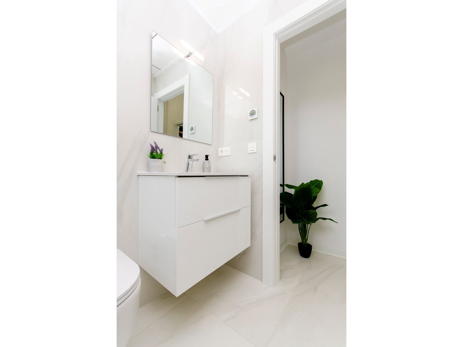 The homes feature carefully designed interiors, where every detail has been considered to maximize comfort. The ceramic floors not only provide a modern touch but are also easy to maintain. With three bedrooms and three bathrooms, each home offers ample space for the whole family. Additionally, they are fully furnished, allowing you to enjoy your new home from day one. The kitchen is equipped with high-quality appliances, and the built-in wardrobes in the bedrooms ensure generous storage space. The air conditioning system and additional pre-installation guarantee a pleasant environment year-round, while the electric blinds and intercom add an extra level of security.