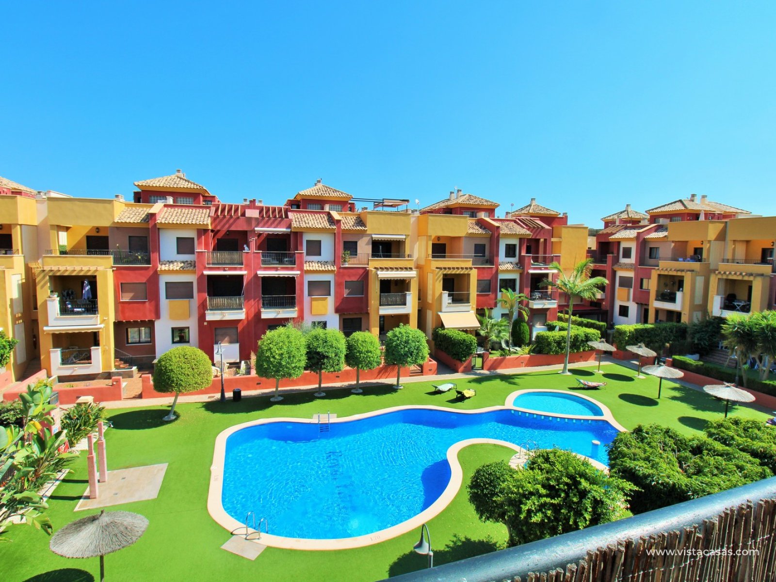 This well-presented duplex apartment with 2 bedrooms and 1.5 bathrooms is located within the prestigious Royal Park Spa development in Lomas de Cabo Roig. Set in a secure gated community, the property enjoys attractive views over the communal pool and gardens, and includes access to the exclusive on-site Spa facilities featuring an indoor heated pool, gym, sauna, and steam room. An underground parking space is also included in the price.