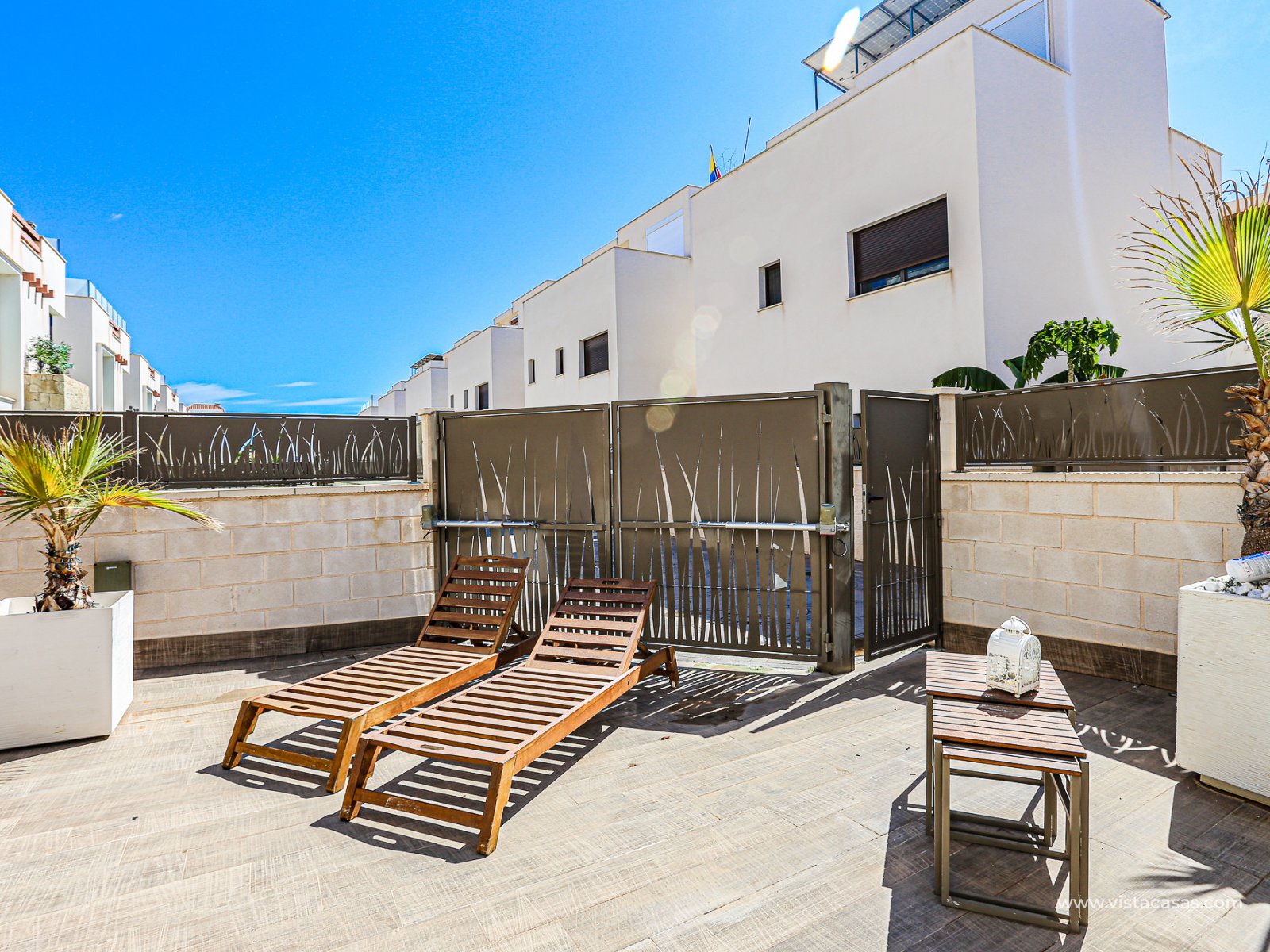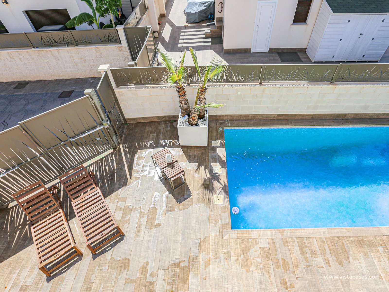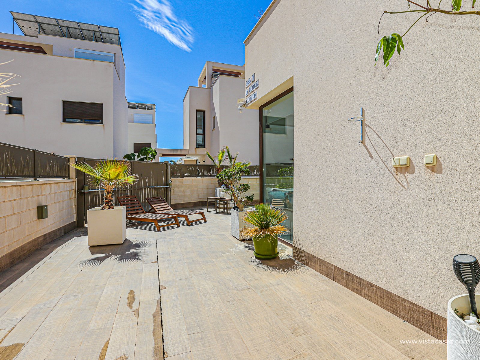 We are delighted to present this exclusive detached villa, located in the prestigious residential area of Doña Pepa, Ciudad Quesada (Rojales). The property is situated at the end of a quiet access road and benefits from a fully private entrance with an automatic gate for vehicles. The villa sits on a low-maintenance plot, featuring wood-style paving, decorative planters, a private swimming pool, and a practical outdoor storage room. One of its main highlights is the unfinished basement, offering great potential to be converted into additional living space, perfectly adaptable to your needs. On the ground floor, upon entering, you will find a full bathroom (all bathrooms are equipped with underfloor heating) and a bedroom with access to the exterior. To the left lies the spacious living-dining room together with a modern open-plan kitchen, fully equipped. The villa is fitted with electric shutters, except for the large living room windows. The first floor comprises two additional bedrooms, both with en-suite bathrooms, each with windows for natural light and ventilation. The master bedroom also enjoys a private terrace with open views. The top floor offers a large solarium with 360º orientation, ideal for sunbathing throughout the day and enjoying panoramic views of the Torrevieja salt lakes. This level also includes a second washing machine (the first one is located on the ground floor). The property is equipped with solar panels and batteries, maximising energy savings and efficiency. Conveniently located near Consum supermarket, bars and restaurants, and only 7 km by car from the beaches of Guardamar del Segura, this villa is a perfect choice both as an investment and as a spacious holiday residence on the Costa Blanca. Don’t miss out on this exceptional opportunity. Contact us today to arrange a viewing.