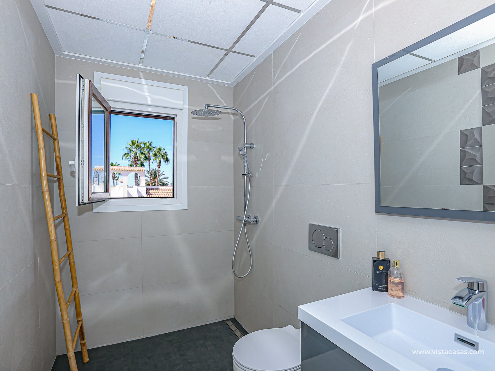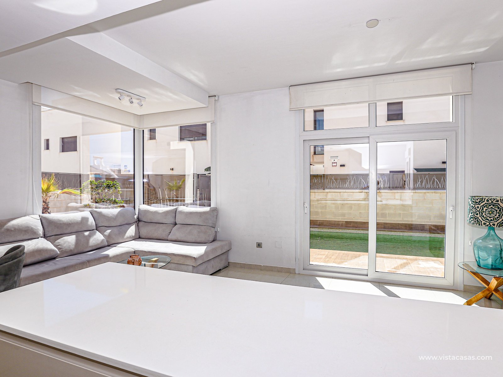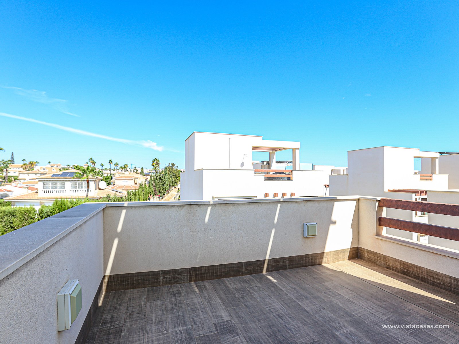 We are delighted to present this exclusive detached villa, located in the prestigious residential area of Doña Pepa, Ciudad Quesada (Rojales). The property is situated at the end of a quiet access road and benefits from a fully private entrance with an automatic gate for vehicles. The villa sits on a low-maintenance plot, featuring wood-style paving, decorative planters, a private swimming pool, and a practical outdoor storage room. One of its main highlights is the unfinished basement, offering great potential to be converted into additional living space, perfectly adaptable to your needs. On the ground floor, upon entering, you will find a full bathroom (all bathrooms are equipped with underfloor heating) and a bedroom with access to the exterior. To the left lies the spacious living-dining room together with a modern open-plan kitchen, fully equipped. The villa is fitted with electric shutters, except for the large living room windows. The first floor comprises two additional bedrooms, both with en-suite bathrooms, each with windows for natural light and ventilation. The master bedroom also enjoys a private terrace with open views. The top floor offers a large solarium with 360º orientation, ideal for sunbathing throughout the day and enjoying panoramic views of the Torrevieja salt lakes. This level also includes a second washing machine (the first one is located on the ground floor). The property is equipped with solar panels and batteries, maximising energy savings and efficiency. Conveniently located near Consum supermarket, bars and restaurants, and only 7 km by car from the beaches of Guardamar del Segura, this villa is a perfect choice both as an investment and as a spacious holiday residence on the Costa Blanca. Don’t miss out on this exceptional opportunity. Contact us today to arrange a viewing.