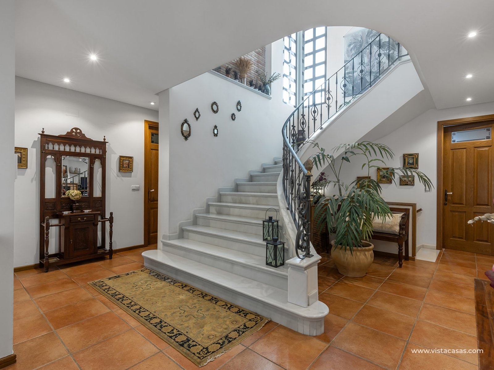 Discover this luxury detached villa for sale in La Veleta, Torrevieja (Costa Blanca South) — one of the most exclusive and sought-after areas for international buyers looking to buy a property near the sea in Spain. Built on a 700 m² plot, this stunning home offers more than 700 m² of constructed area across several levels, combining elegant Mediterranean architecture with the comfort of a modern home. The exterior features traditional tiled roofs, wooden beams, and spacious terraces surrounded by lush greenery. On the main floor, you’ll find a bright living room with fireplace, an elegant dining area, a charming music room, and a fully equipped kitchen finished in natural wood and granite. The interiors are warm and inviting, with handcrafted ceramic floors, ironwork details, and abundant natural light. Upstairs, the villa features large, sunlit bedrooms, including a master suite with private bathroom and terrace. The attic level offers a versatile open space, perfect as an office or leisure area. Outside, the property offers a private swimming pool, covered terraces, a built-in barbecue and wood oven, and a beautifully landscaped Mediterranean garden. The basement includes a spacious garage for multiple vehicles, storage, and a utility room. Located in the prestigious La Veleta residential area, this property enjoys peace, privacy, and proximity to the sea — just a few minutes from Torrevieja’s best beaches, international schools, supermarkets, and restaurants. A perfect opportunity for those seeking to buy a luxury villa in Spain — ideal as a permanent residence, holiday home, or exclusive investment on the Costa Blanca. Keywords: luxury villa for sale in La Veleta, villa for sale in Torrevieja, Costa Blanca property for sale, Spanish villa near the sea, detached villa with private pool, buy villa in Spain.