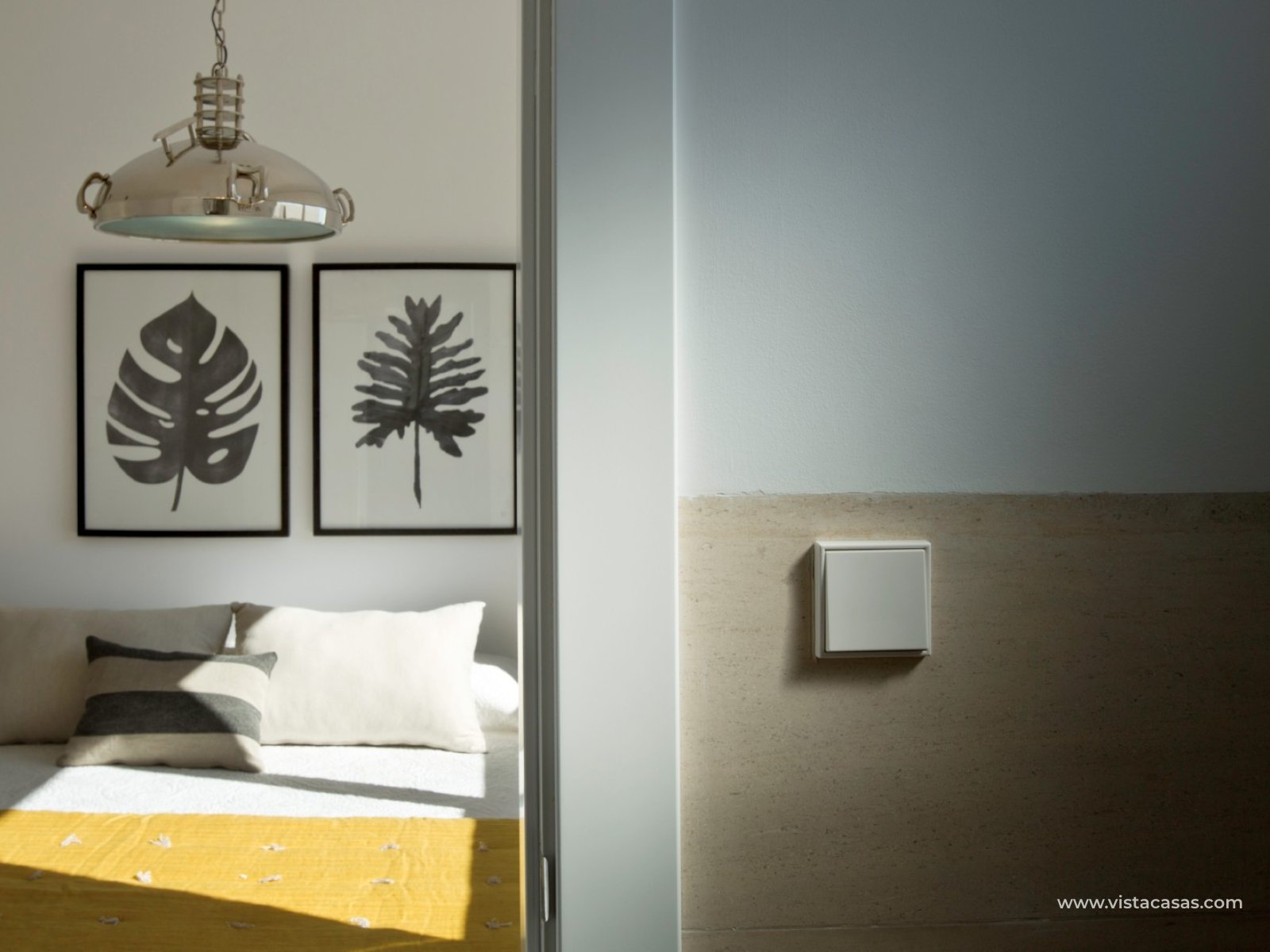 The outdoor environment of these properties is simply spectacular. Each home features a private pool, perfect for enjoying the Mediterranean climate. The spacious terraces offer an ideal space to relax while admiring the sea. Additionally, the properties are equipped with electric car chargers, emphasizing the commitment to sustainability and modern convenience. The communal gardens provide additional space for outdoor recreation, complementing the tranquil and natural ambiance of the area.