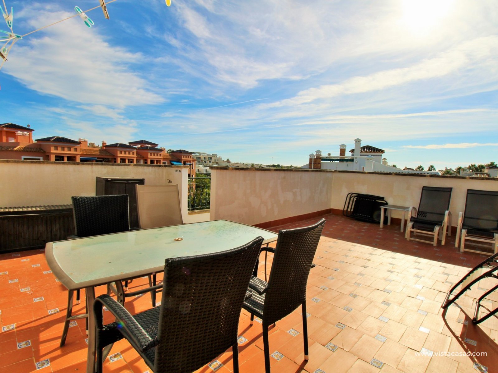 Beautifully presented top-floor apartment situated on a corner plot within a highly sought-after community in Pau 8, Villamartin. Enjoying a south-east orientation and pleasant views over the communal pool and gardens, this well-maintained home offers a perfect blend of privacy, sunshine, and convenience — just a 15-minute walk from Villamartin Plaza and its wide selection of restaurants, bars, and amenities, as well as the Villamartin Golf Course.