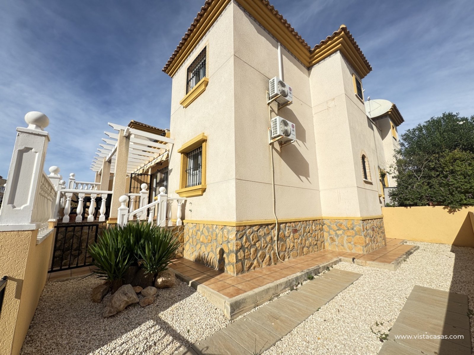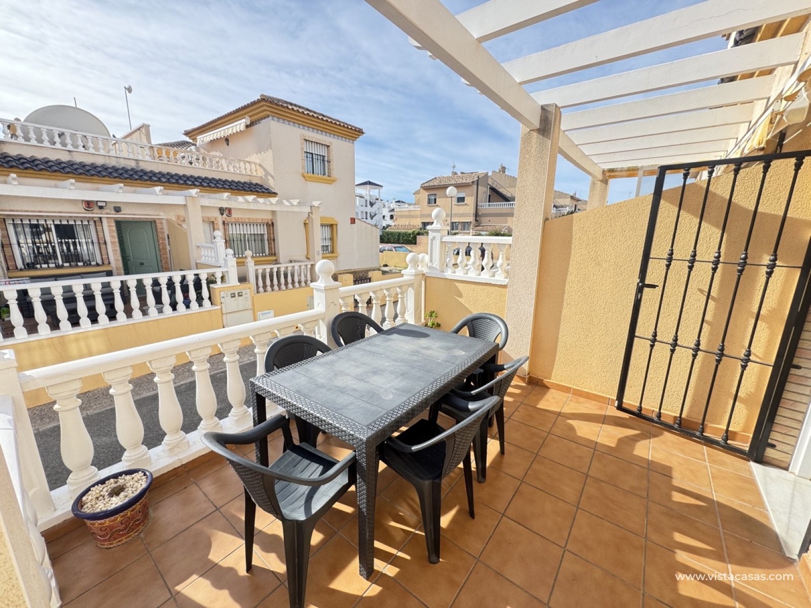 Discover a charming 3-bedroom, 2-bathroom Inspirations Quad house in Villamartin, perfectly situated to capture the Mediterranean sunshine. KEY FEATURES: - Elevated Front Terrace with Side Garden: Enjoy the sunshine on the elevated front terrace, perfect for alfresco dining or relaxation, with a lovely side garden. - Spacious Internal Lounge: A bright and airy lounge area, perfect for relaxing and entertaining. - Large Open-Plan Kitchen: A modern kitchen area flows seamlessly into the lounge, perfect for cooking and socializing. - 2 Bedrooms on Ground Floor: 2 bedrooms on the ground floor share a convenient bathroom, perfect for families or guests. - 1st Floor Bedroom and Bathroom: A private bedroom and bathroom on the 1st floor, perfect for parents or teenagers. - Roof Terrace: Perfect for sun bathing and dining. LOCATION: - Short Walk from Communal Pool and Gardens: The property is just a short stroll from the communal pool and gardens, perfect for relaxation and recreation. - 5-Minute Walk from Villamartin Plaza: The vibrant town centre is just 5 minutes away, with shops, restaurants, and more.
