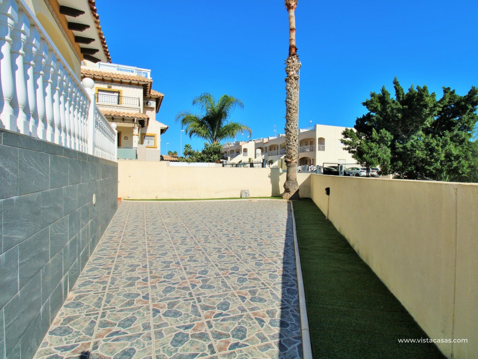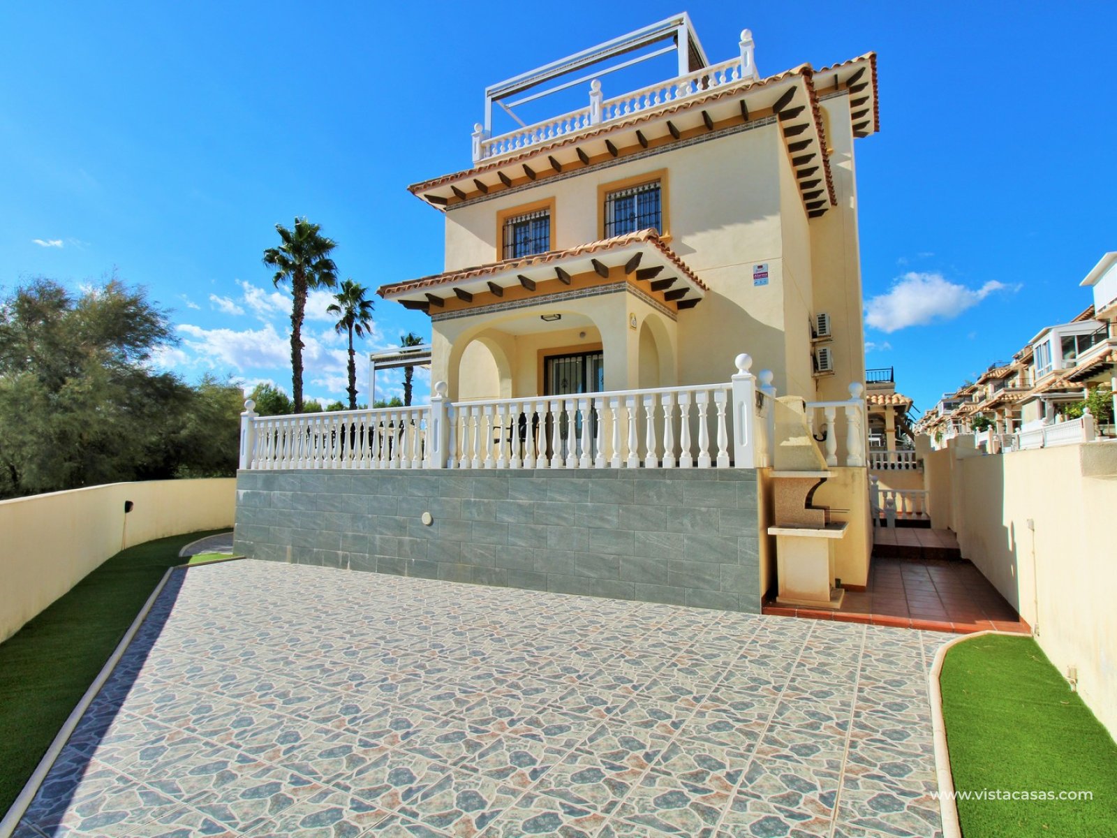 An exceptional opportunity to own one of only three detached villas in the sought-after residential community of San Jose I, Playa Flamenca. Perfectly positioned on a sunny corner plot, this spacious 4-bedroom, 3-bathroom villa enjoys a privileged location just a few steps from the communal pool and within easy walking distance of Zenia Boulevard, as well as a great selection of bars, restaurants, and supermarkets.