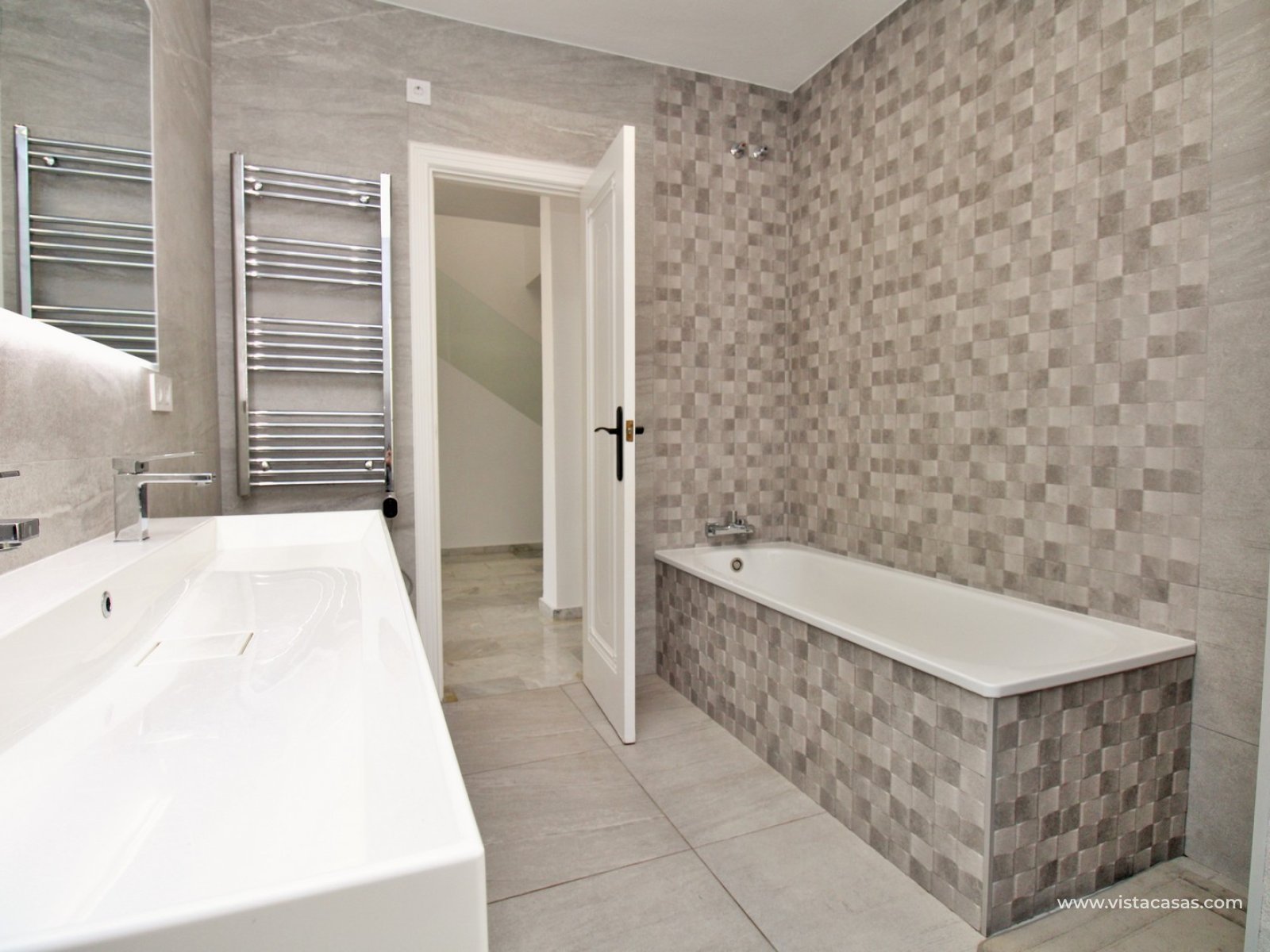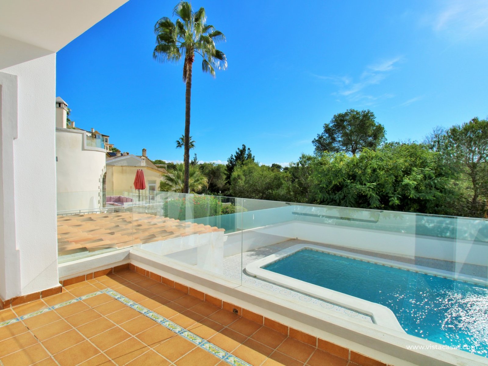 Recently refurbished to a superb standard, the main level of the villa features a bright and spacious living area with a dining zone, a separate fully fitted kitchen, and a convenient utility room. Two charming sun terraces provide the perfect spots to relax and take in the impressive views, with an exterior staircase leading up to the private roof solarium.