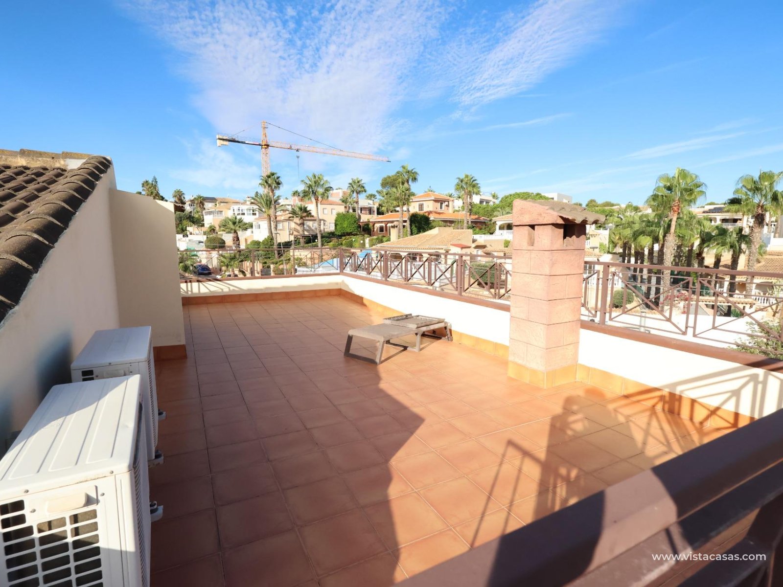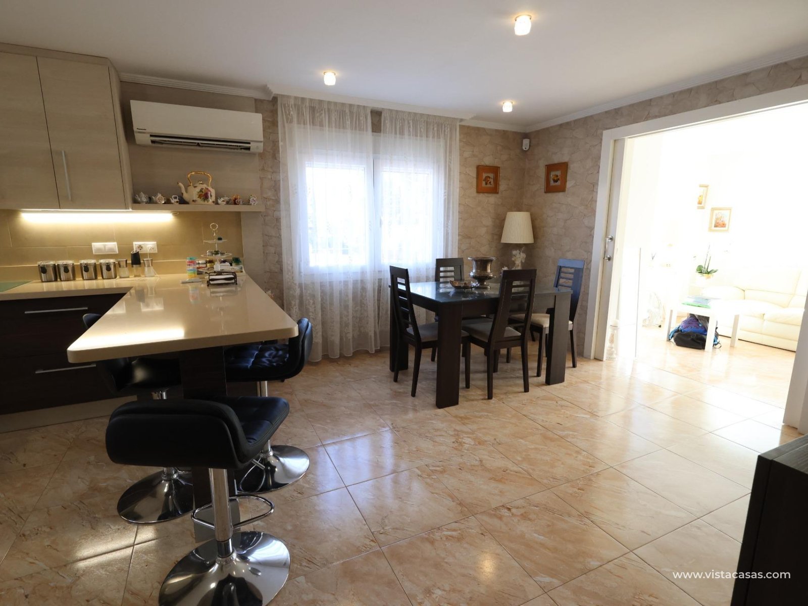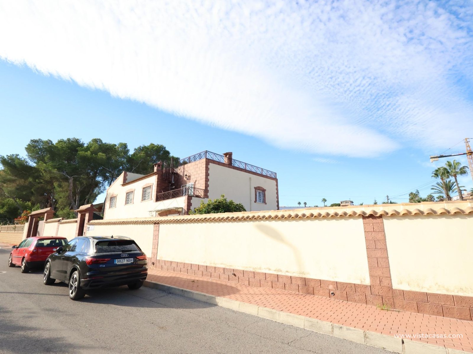 Los Balcones. Impressive detached villa on a corner plot, facing a park and just steps from the tennis club.. . Set on a generous 800 m2 plot, this property stands out for its privacy, space, and comfort. The main house, distributed over two floors with a built area of 311 m2, features:. . • 5 bedrooms and 3 bathrooms. • Spacious living-dining room with fireplace. • Large fully equipped independent kitchen. • Solarium with open views. • Enclosed barbecue area. • Private pool and driveway for several vehicles. . Additionally, it includes a separate guest house, ideal for visitors or rental purposes, offering 1 bedroom, bathroom, living room, and kitchen.. . The property is sold furnished and equipped with air conditioning, making it the perfect choice for large families or as an investment close to all amenities.