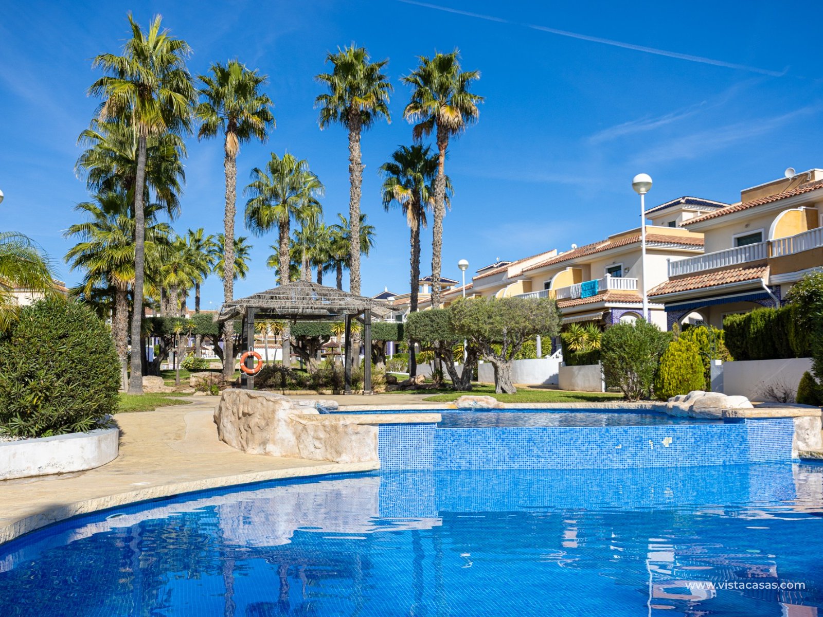Ground floor apartment with garden and communal pool in Ciudad Quesada We present this charming ground-floor apartment, located in one of the most sought-after residential areas of Doña Pepa, in the municipality of Rojales. A perfect home for those seeking comfort, Mediterranean style, and proximity to all amenities. With a built area of 84 m², this property boasts a practical and bright layout. Upon entering the apartment, you'll find a spacious covered porch, ideal for enjoying the warm Costa Blanca climate year-round. The living area comprises a cozy living/dining room with an open-plan kitchen, fully equipped with modern appliances, creating a functional and comfortable space for daily use. The apartment features two spacious bedrooms, both with fitted wardrobes, and a fully equipped bathroom with tasteful finishes. The property is in excellent condition, ready to move into, and comes fully furnished, including all electrical appliances in the kitchen and air conditioning, for optimal comfort year-round. The terrace off the living room is equipped with vertical toldos (awnings), which provide shade in the summer and additional warmth in the cooler months. Outside, the property boasts a private garden, perfect for relaxing, sunbathing, or dining al fresco. There's also a private parking space right outside the gate. There's access to not one, but three beautiful communal swimming pools, surrounded by well-maintained green areas, perfect for relaxing and enjoying the surroundings. Unbeatable location: The property is located just 12 minutes from the beaches of Guardamar and Torrevieja, 40 minutes from Alicante airport, 5 minutes from leisure areas, restaurants and supermarkets, and 7 minutes from La Marquesa golf course, one of the most renowned in the region. This property is an excellent option for both permanent residence and holiday home, or even a great investment opportunity thanks to the high demand for holiday rentals.