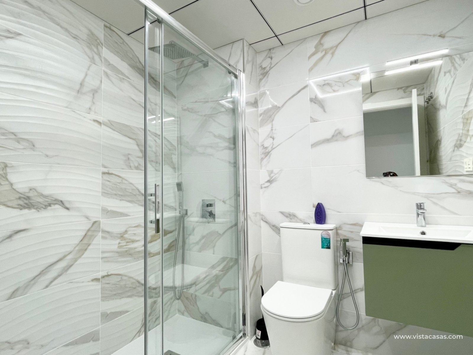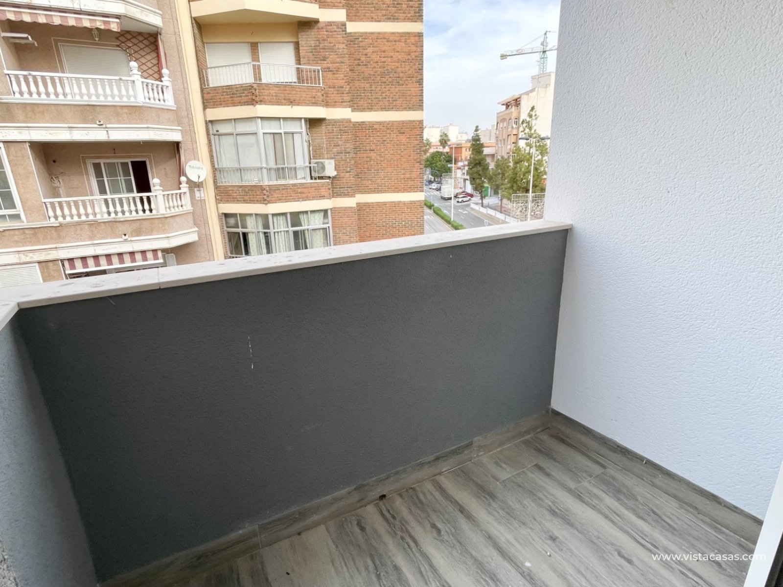 Discover this impeccable apartment located in the heart of Torrevieja's city center, just 800 meters from the beach. This property offers a practical and comfortable living space, featuring two double bedrooms and a full bathroom, perfect for everyday living. The apartment includes a charming 5 m² terrace, ideal for relaxing or entertaining guests. The fully equipped kitchen boasts solid interior carpentry and is designed to maximize comfort. With a west-facing orientation, the apartment is bathed in warm afternoon sunlight, creating a bright and inviting atmosphere. Additional highlights include accessible facilities for people with reduced mobility (PMR), central air conditioning to keep you comfortable during hot summer months, a modern elevator, and a relaxing sauna for unwinding after a long day. Step outside to enjoy the communal solarium, complete with a barbecue area and stunning sea views. Situated in an unbeatable location, the property is surrounded by lush trees, shopping centers, medical facilities, schools, and parks—perfect for families and individuals alike. The neighborhood offers all essential amenities nearby, including supermarkets, making daily life convenient. This bright and well-maintained home presents a fantastic opportunity, whether as an investment or a permanent residence. Don’t miss out on this exceptional property in a prime location!