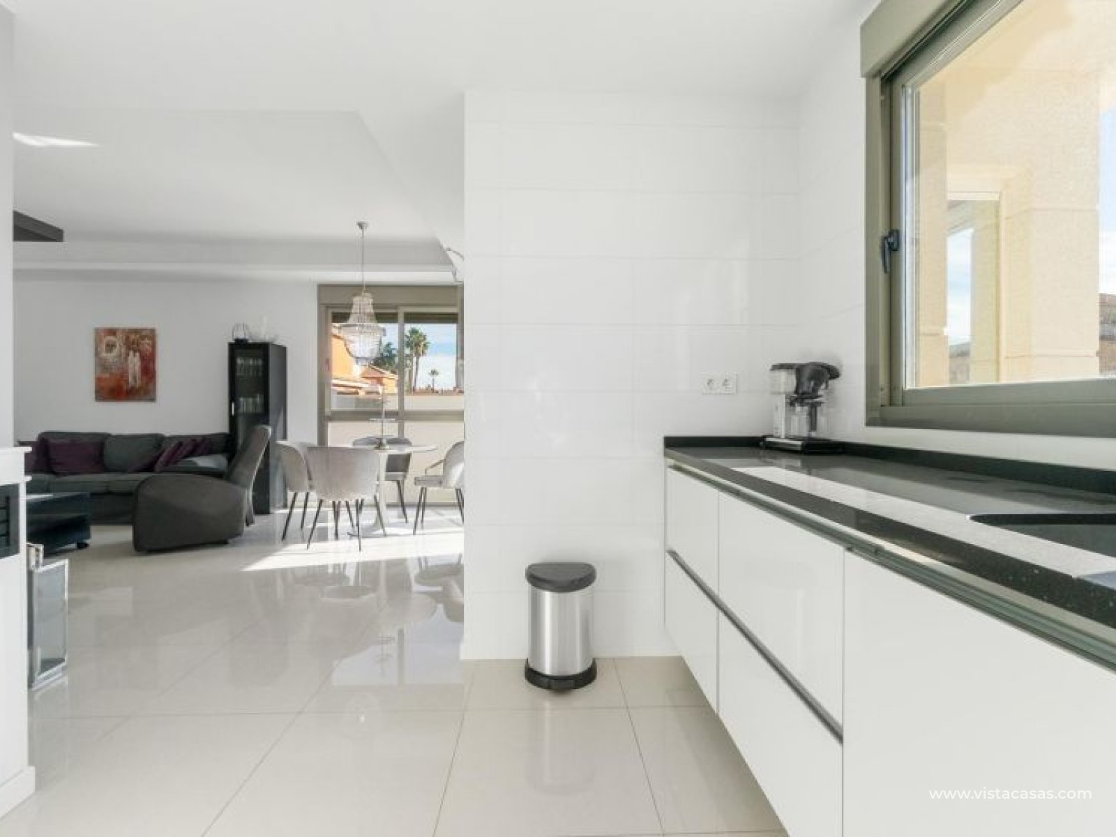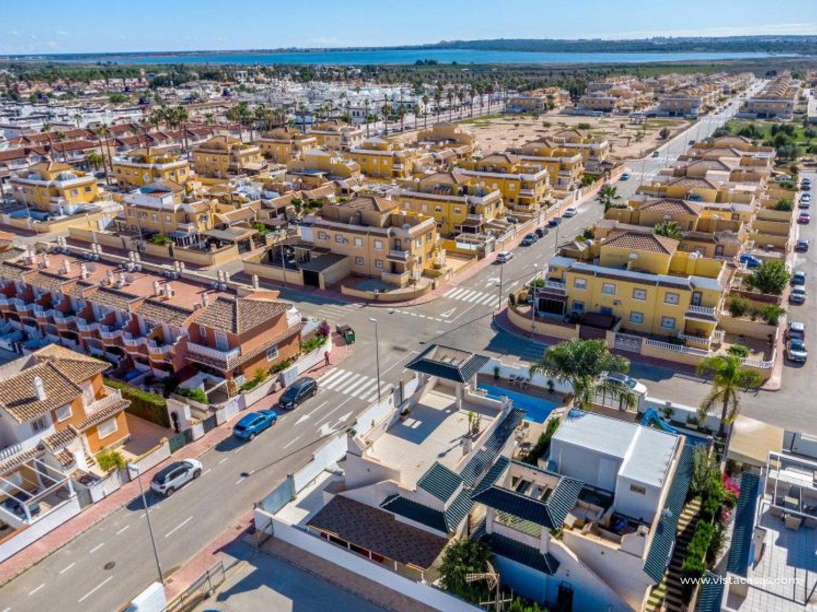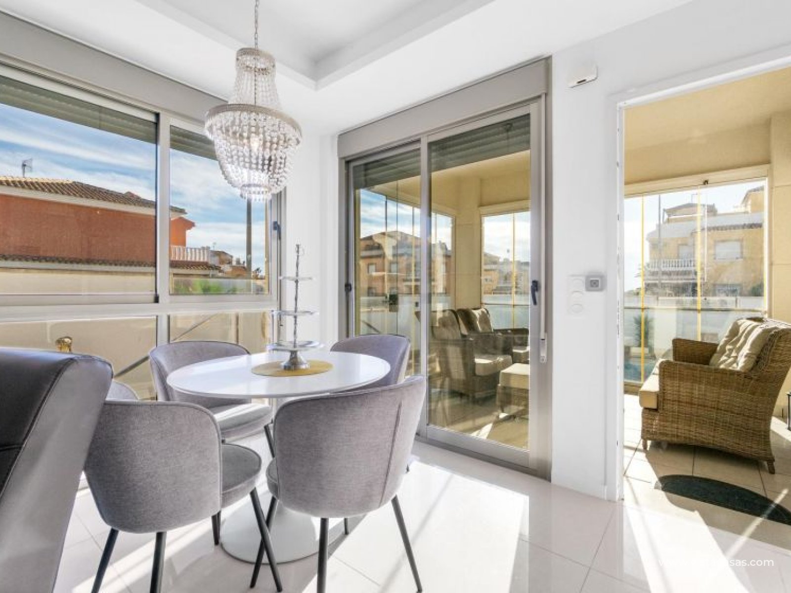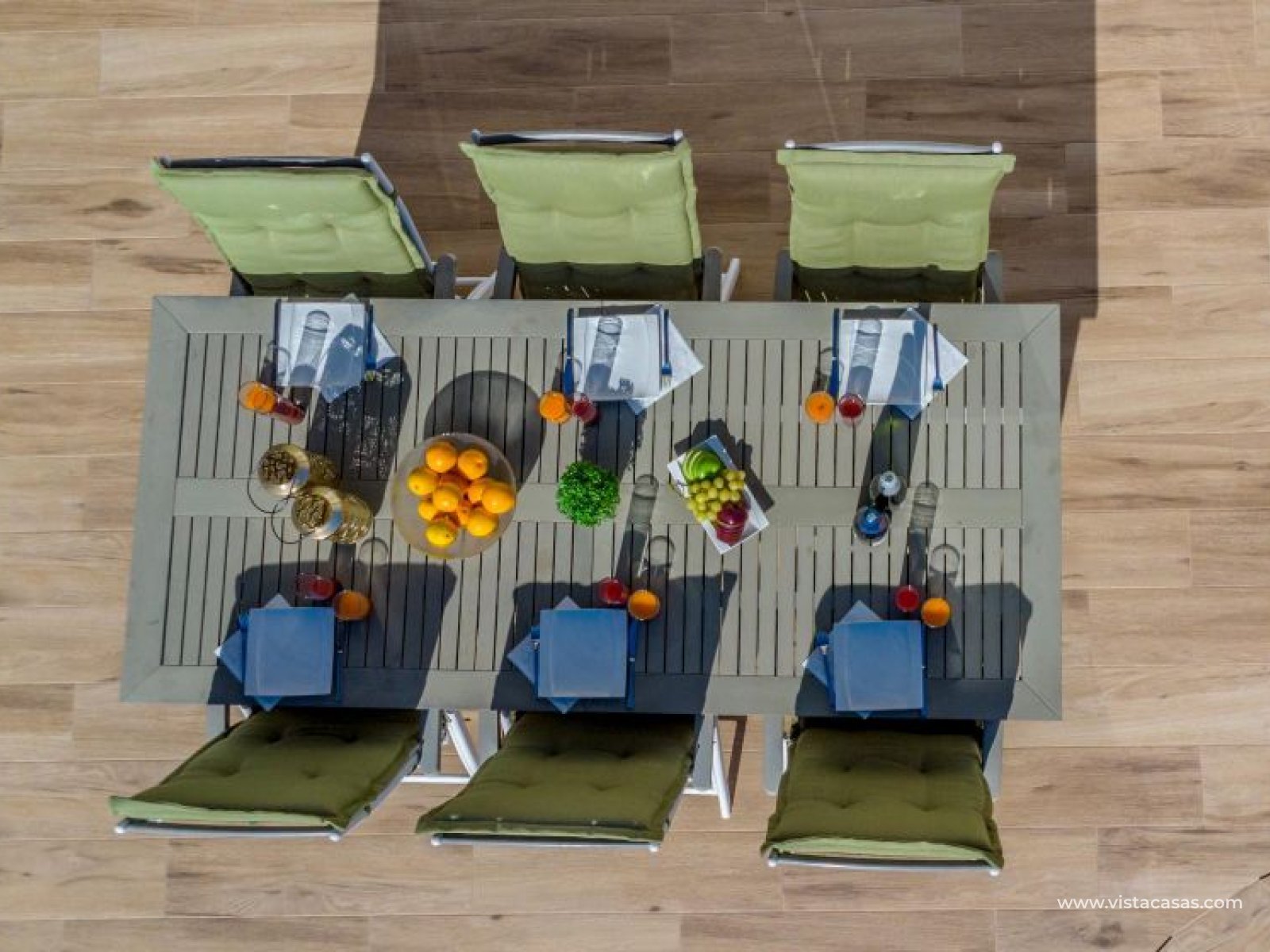 Discover this stunning detached villa in Ciudad Quesada- Lo Marabú — a home that perfectly blends Mediterranean charm with modern contemporary design. Set on a 420 m² plot with 104 m² of built area all on one level, this property offers a bright, comfortable lifestyle ideal for year-round living or holidays. Located in a privileged area surrounded by all amenities — supermarkets, pharmacy, restaurants, bars and more — this villa is perfect as a permanent residence or holiday home. Ciudad Quesada is known for its warm, international and vibrant atmosphere, offering an excellent quality of life. The property is located just steps away from La Marquesa Golf Course, an ideal setting for golf enthusiasts to enjoy relaxed rounds surrounded by nature. It is also only a short drive from the beautiful beaches of Guardamar and La Mata, known for their wide stretches of fine sand, clear waters, and a perfect atmosphere for relaxation or outdoor activities. The plot is fully tiled, offering various relaxing spaces. The summer kitchen is perfect for outdoor dining with family or friends, and the highlight of the exterior is its private swimming pool, a true delight during warm summer days. The property also features on-plot parking, a pergola, an automatic gate, and a storage room. From the garden, an external staircase leads to a spectacular 100 m² rooftop solarium, fully equipped with another summer kitchen and barbecue — an ideal setting for long evenings outdoors. Inside, a cozy glazed terrace with folding glass panels opens into a spacious living-dining area with a fully equipped open-plan kitchen. Everything is conveniently located on one floor: three bedrooms, including one with an en-suite bathroom, plus an additional guest bathroom. The property is sold fully furnished and in impeccable condition, ready to move into. Its south-facing orientation ensures natural light all day long. Just minutes from the beautiful beaches of Guardamar and close to the centre of Ciudad Quesada, this home offers space, elegance, modernity and comfort. Come and experience it for yourself — book your viewing today!