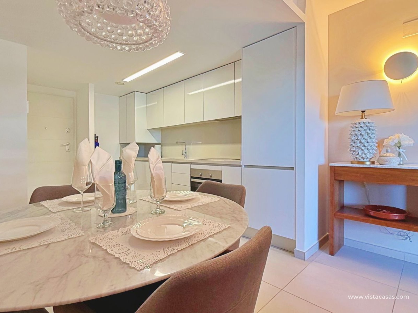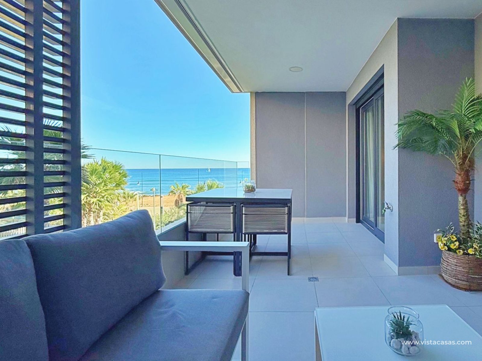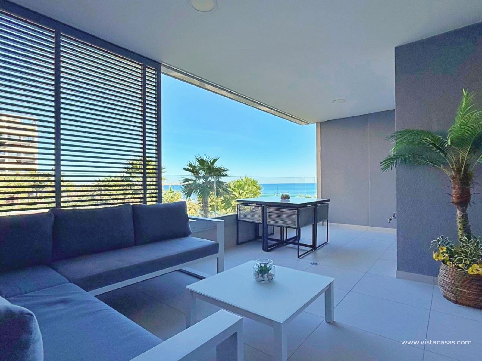 This elegant 2-bedroom, 2-bathroom apartment is located frontline, offering stunning open sea views. Its modern and bright design creates a cozy and relaxing atmosphere, ideal both for year-round living and for enjoying holiday stays. The apartment is sold fully furnished, equipped with high-quality furniture in harmonious tones and wooden details that add warmth and style. The layout is functional and comfortable, with spacious and well-utilized areas. In the area, you will find pools, including a heated pool, and a paddle tennis court, perfect for enjoying leisure time and sports activities without leaving the complex. This property also includes underground parking and a private storage room, providing additional practicality to your living experience. Located in Punta Prima, one of the most sought-after areas of the Costa Blanca, the apartment offers a peaceful and safe environment, close to the beach, with easy access to supermarkets, restaurants, bars, and local services. The area is ideal for sea and nature lovers and is a short drive from shopping centers, golf courses, and other Costa Blanca attractions.