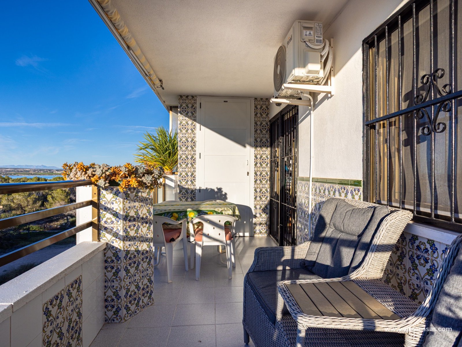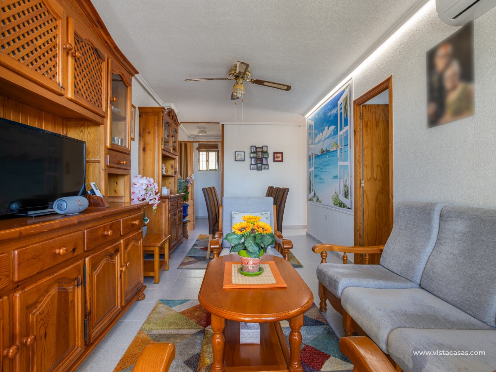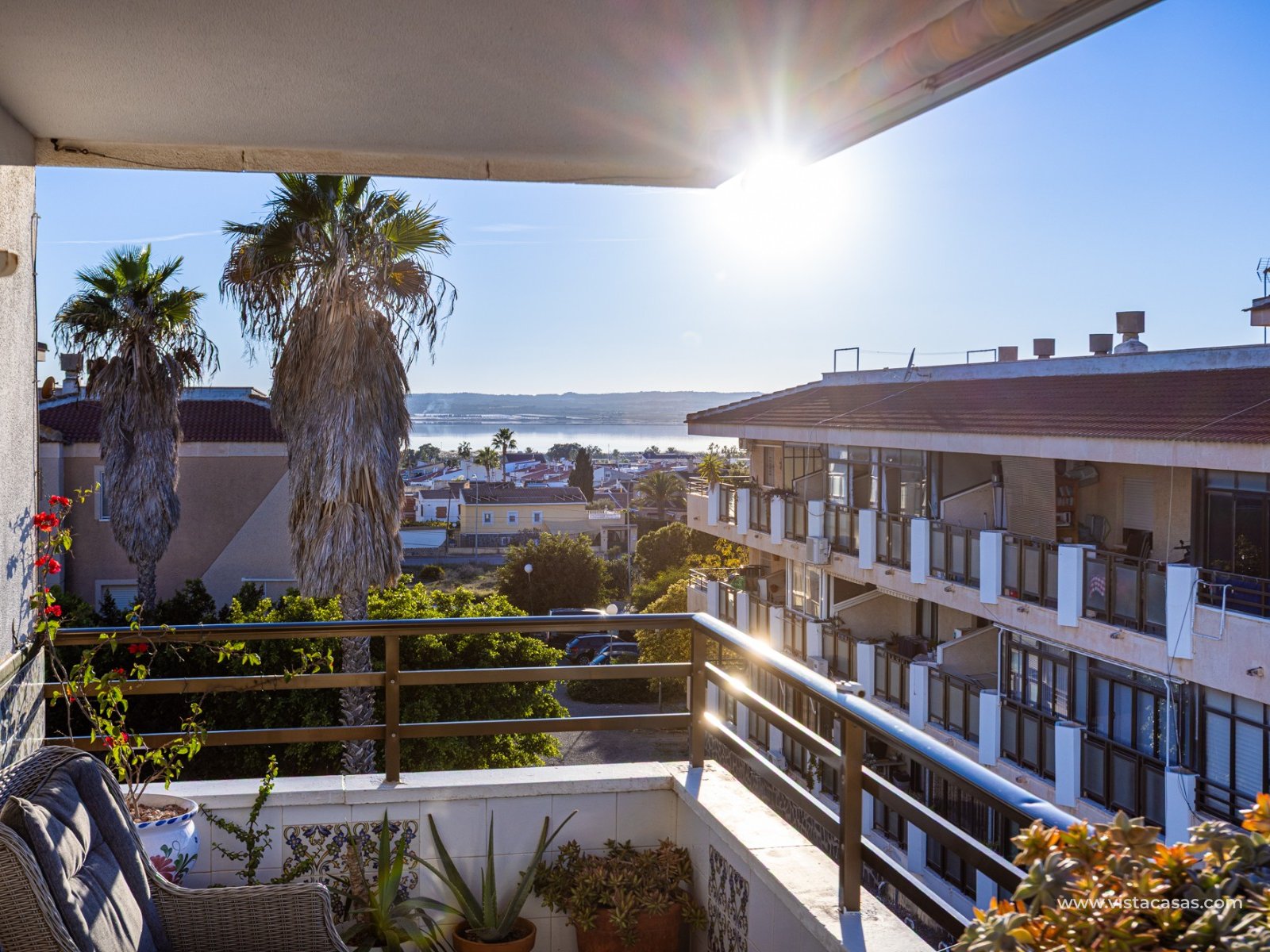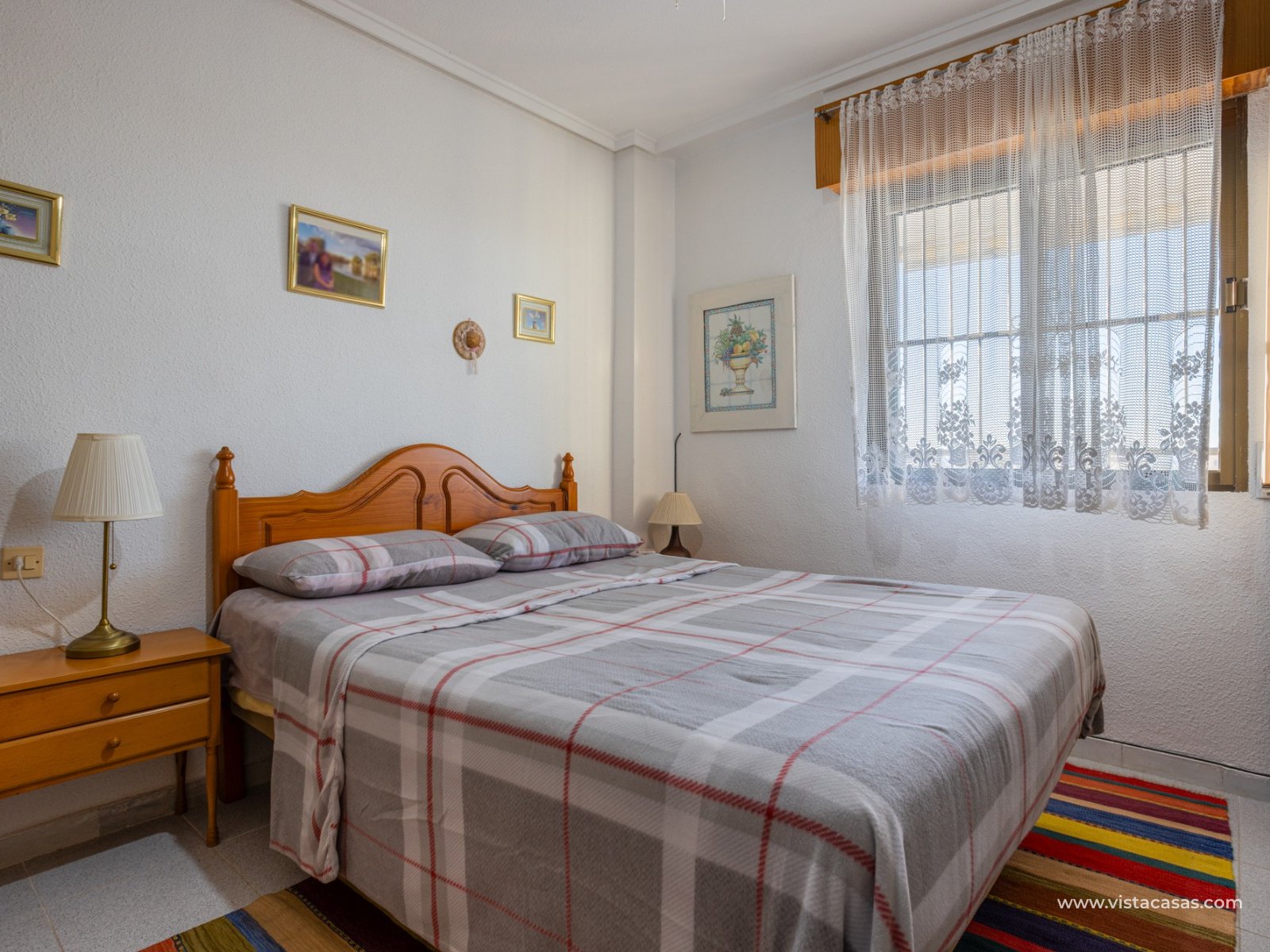 Discover this beautiful apartment on the second floor of a quiet, well-maintained building in Urb. San Luis, one of Torrevieja's most convenient and accessible neighborhoods. With a living area of 70 m², this property offers a practical and well-designed layout, designed for comfortable year-round living. Upon entering, you'll find a spacious and bright living/dining room with direct access to a cozy terrace, perfect for enjoying the afternoon sun, relaxing with a good book, or spending time with friends. There's also a small storage cupboard in white aluminum, which always comes in handy. The west-facing position ensures warm natural light throughout most of the day. The separate kitchen, fully equipped with appliances, is an ideal space for cooking comfortably while maintaining privacy from the communal areas. The apartment features three bedrooms, all with abundant natural light, and a full bathroom that has been recently renovated. The property is in good condition and is sold furnished, so it's move-in ready. It also features air conditioning, a must-have for making the most of the Mediterranean climate. On the roof of the building is a communal solarium where you can sunbathe, relax, and enjoy the pleasant temperatures and panoramic views of both salt lakes in the area. Perfect location for living or vacationing: Located in a quiet yet easily accessible area, you have everything you need within minutes; there's a bus stop just a few minutes' walk from the property. Beach: Just 15 minutes away, perfect for sunrise walks or relaxing afternoons.Airport: 40 minutes away, ideal for frequent travelers.Leisure areas: 5 minutes away, with restaurants, cafes, shops, and amenities. There's an excellent water park just a few minutes away.Golf course: 10 minutes away, an added attraction for sports enthusiasts. This apartment is an excellent choice as a permanent residence, second home, or investment property due to its strategic location and excellent condition.