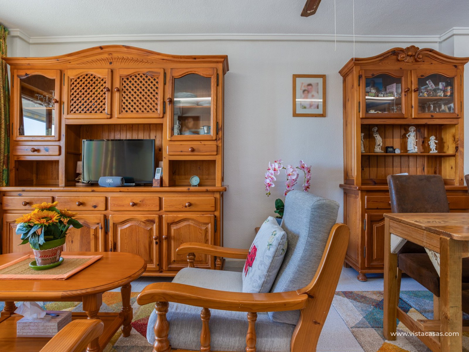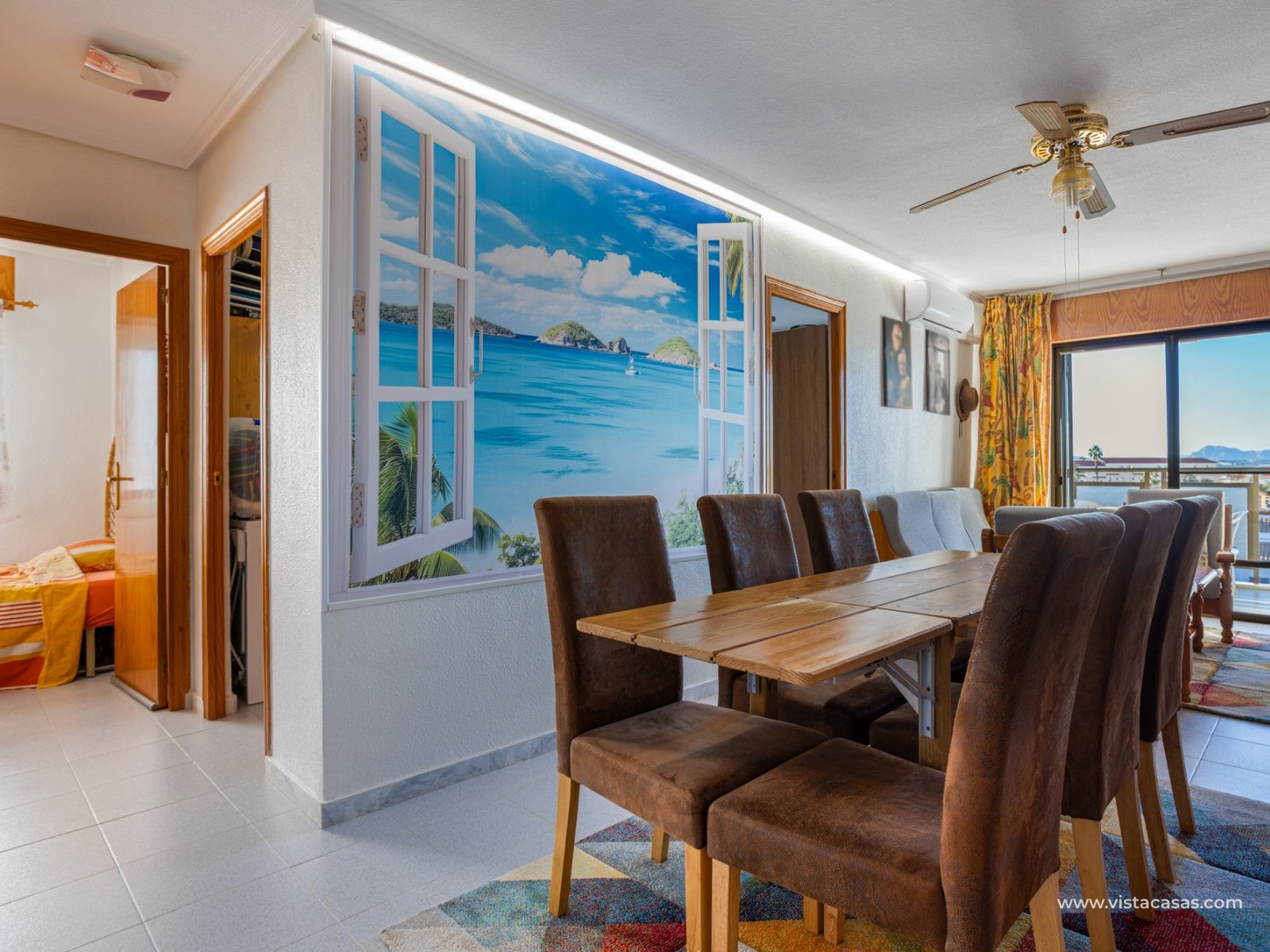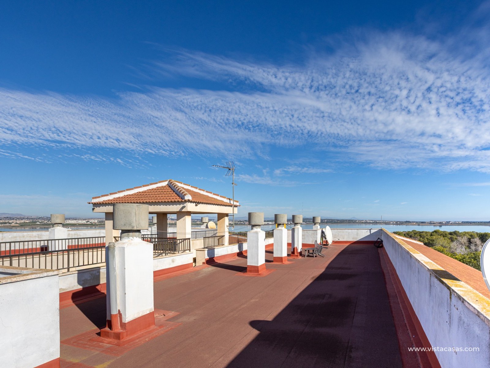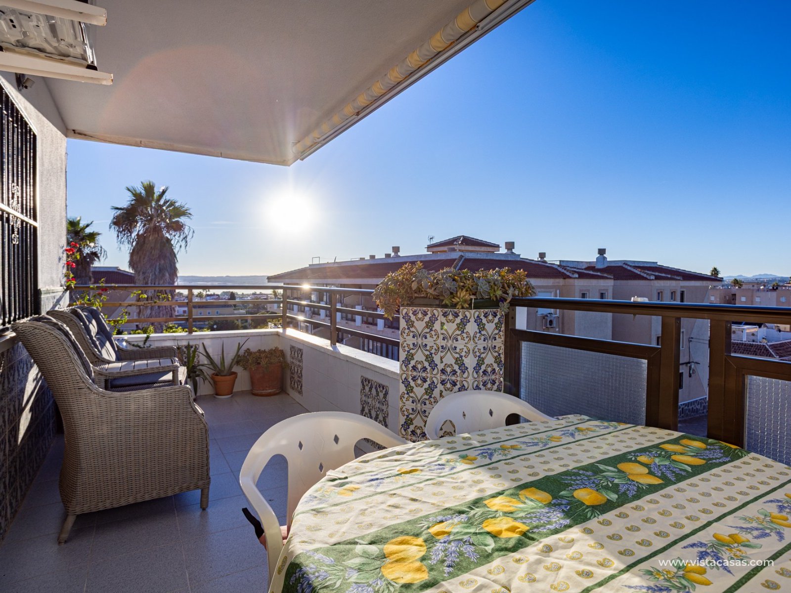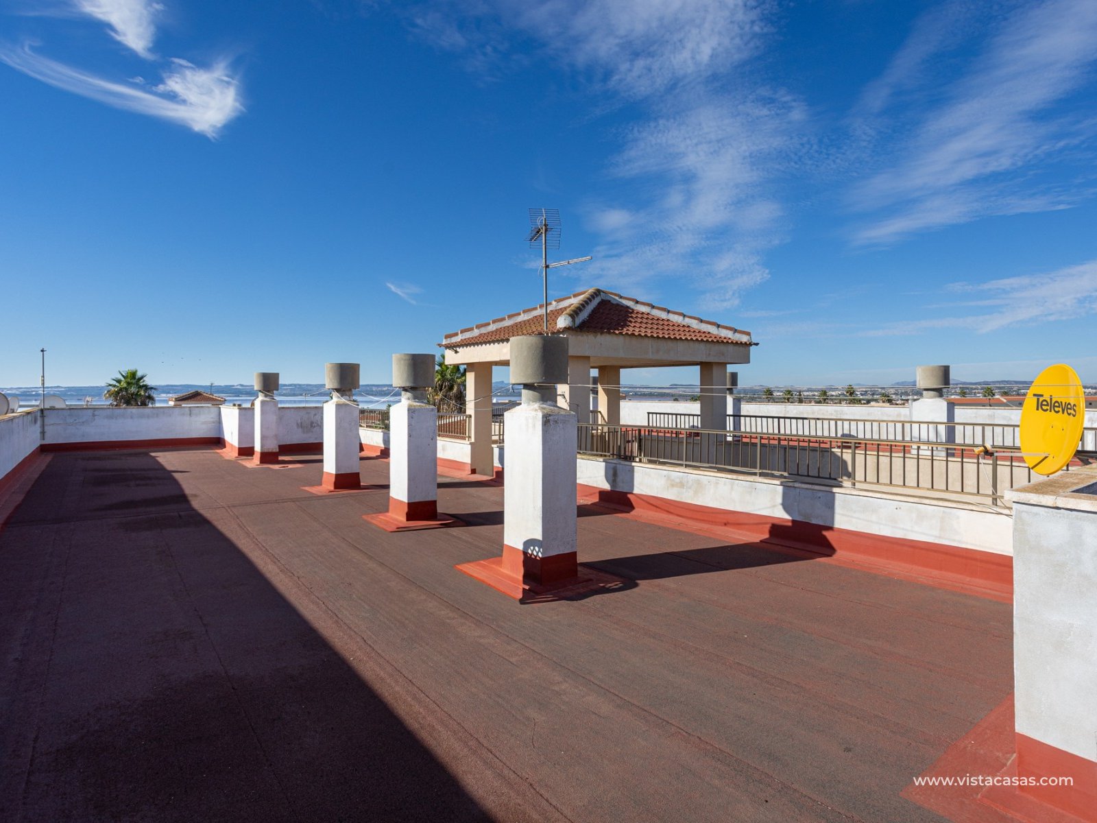 Discover this beautiful apartment on the second floor of a quiet, well-maintained building in Urb. San Luis, one of Torrevieja's most convenient and accessible neighborhoods. With a living area of 70 m², this property offers a practical and well-designed layout, designed for comfortable year-round living. Upon entering, you'll find a spacious and bright living/dining room with direct access to a cozy terrace, perfect for enjoying the afternoon sun, relaxing with a good book, or spending time with friends. There's also a small storage cupboard in white aluminum, which always comes in handy. The west-facing position ensures warm natural light throughout most of the day. The separate kitchen, fully equipped with appliances, is an ideal space for cooking comfortably while maintaining privacy from the communal areas. The apartment features three bedrooms, all with abundant natural light, and a full bathroom that has been recently renovated. The property is in good condition and is sold furnished, so it's move-in ready. It also features air conditioning, a must-have for making the most of the Mediterranean climate. On the roof of the building is a communal solarium where you can sunbathe, relax, and enjoy the pleasant temperatures and panoramic views of both salt lakes in the area. Perfect location for living or vacationing: Located in a quiet yet easily accessible area, you have everything you need within minutes; there's a bus stop just a few minutes' walk from the property. Beach: Just 15 minutes away, perfect for sunrise walks or relaxing afternoons.Airport: 40 minutes away, ideal for frequent travelers.Leisure areas: 5 minutes away, with restaurants, cafes, shops, and amenities. There's an excellent water park just a few minutes away.Golf course: 10 minutes away, an added attraction for sports enthusiasts. This apartment is an excellent choice as a permanent residence, second home, or investment property due to its strategic location and excellent condition.