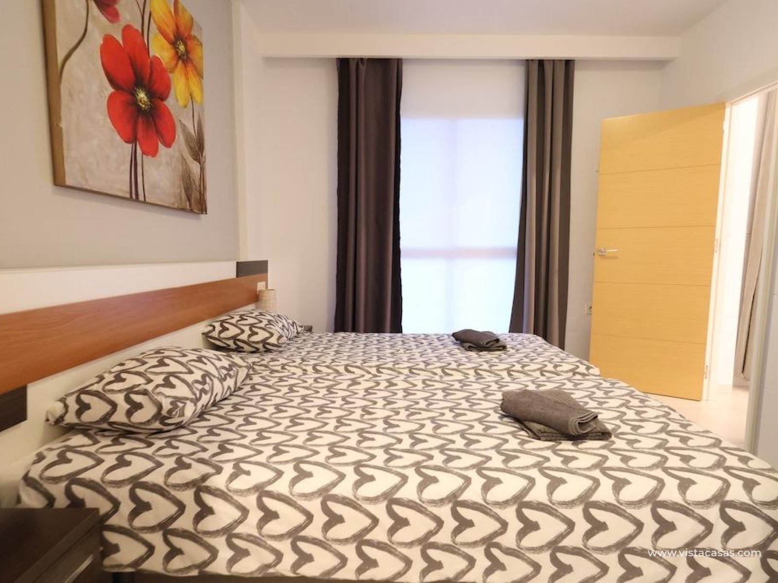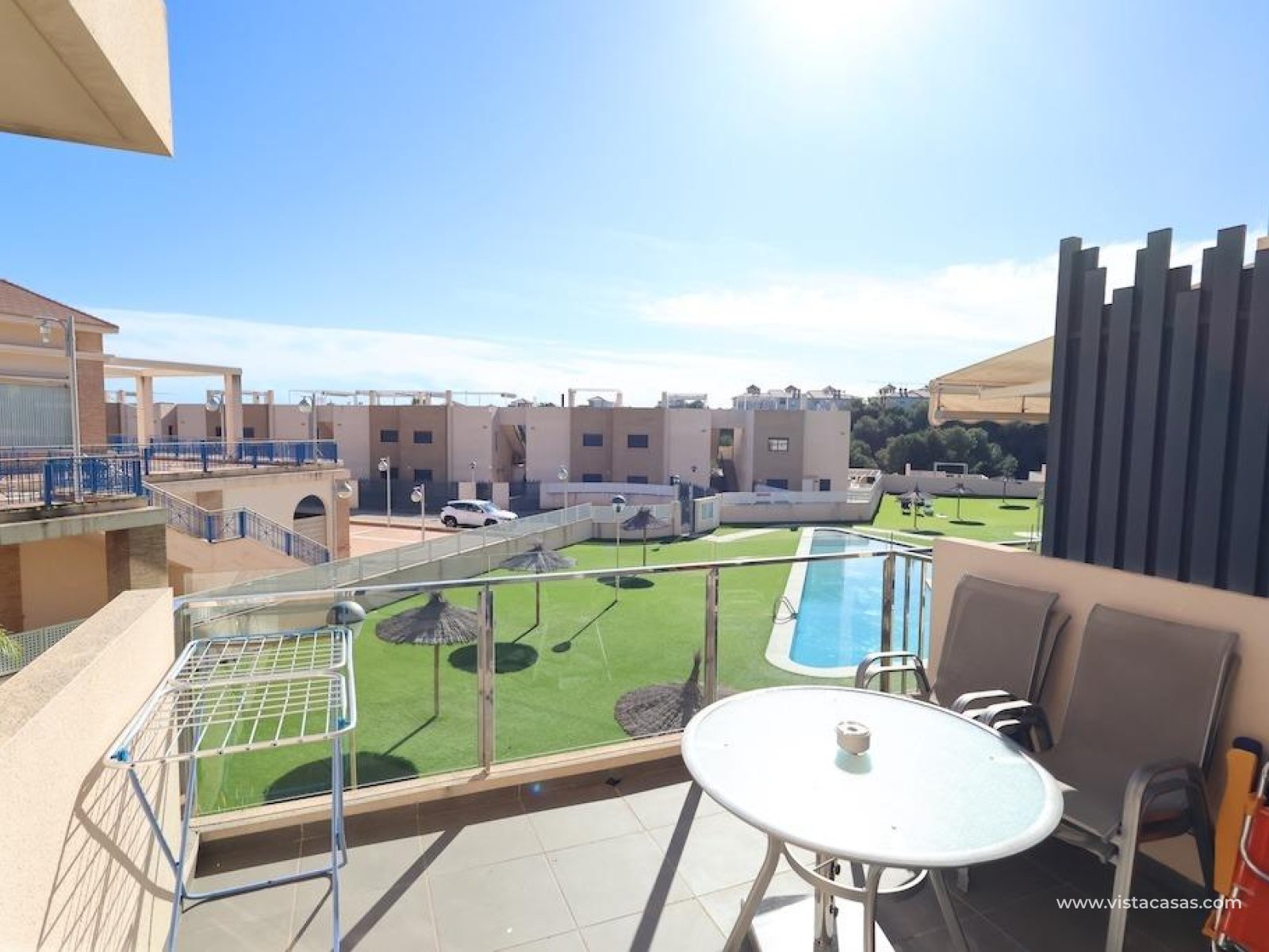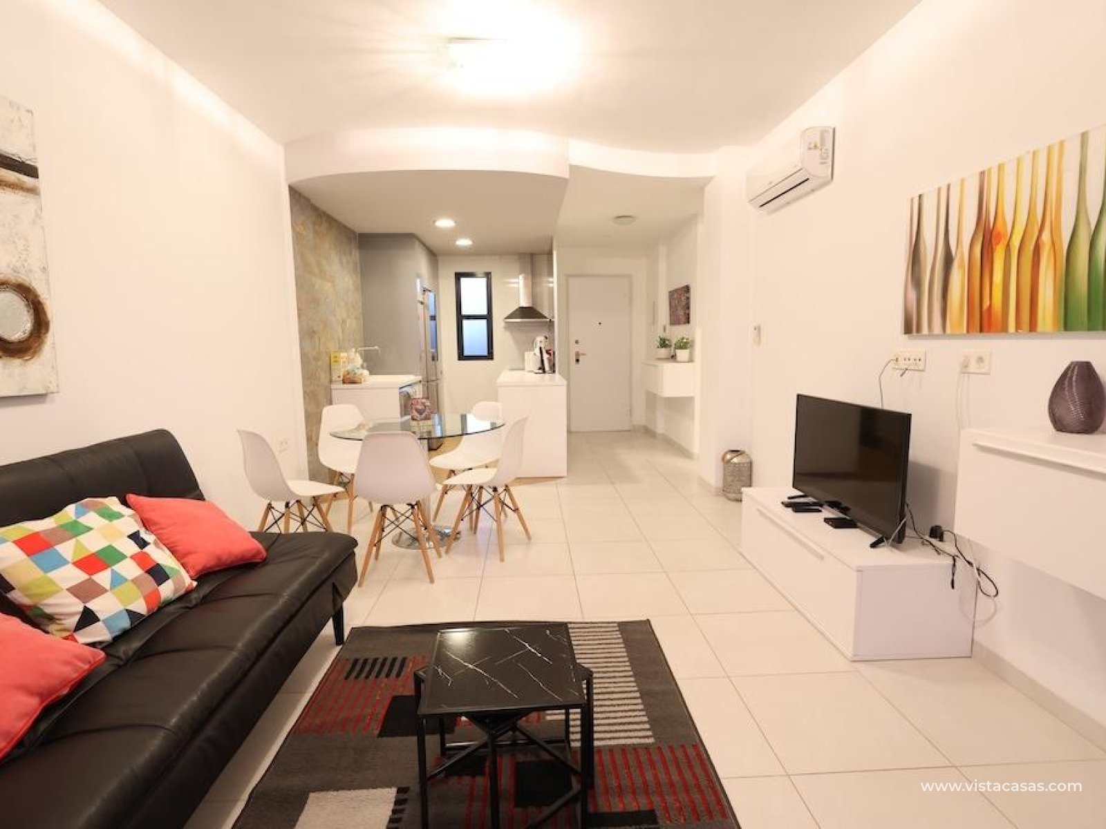 La Zenia, Residencial Sabrina.. 77 m2 south-facing apartment featuring 2 bedrooms (1 en suite), 2 bathrooms, a spacious living-dining room, an open-plan kitchen, and a terrace. The property is sold furnished and with air conditioning. It offers extensive communal areas with a community pool, as well as a storage room and parking. The apartment has a tourist licence and currently generates excellent returns.