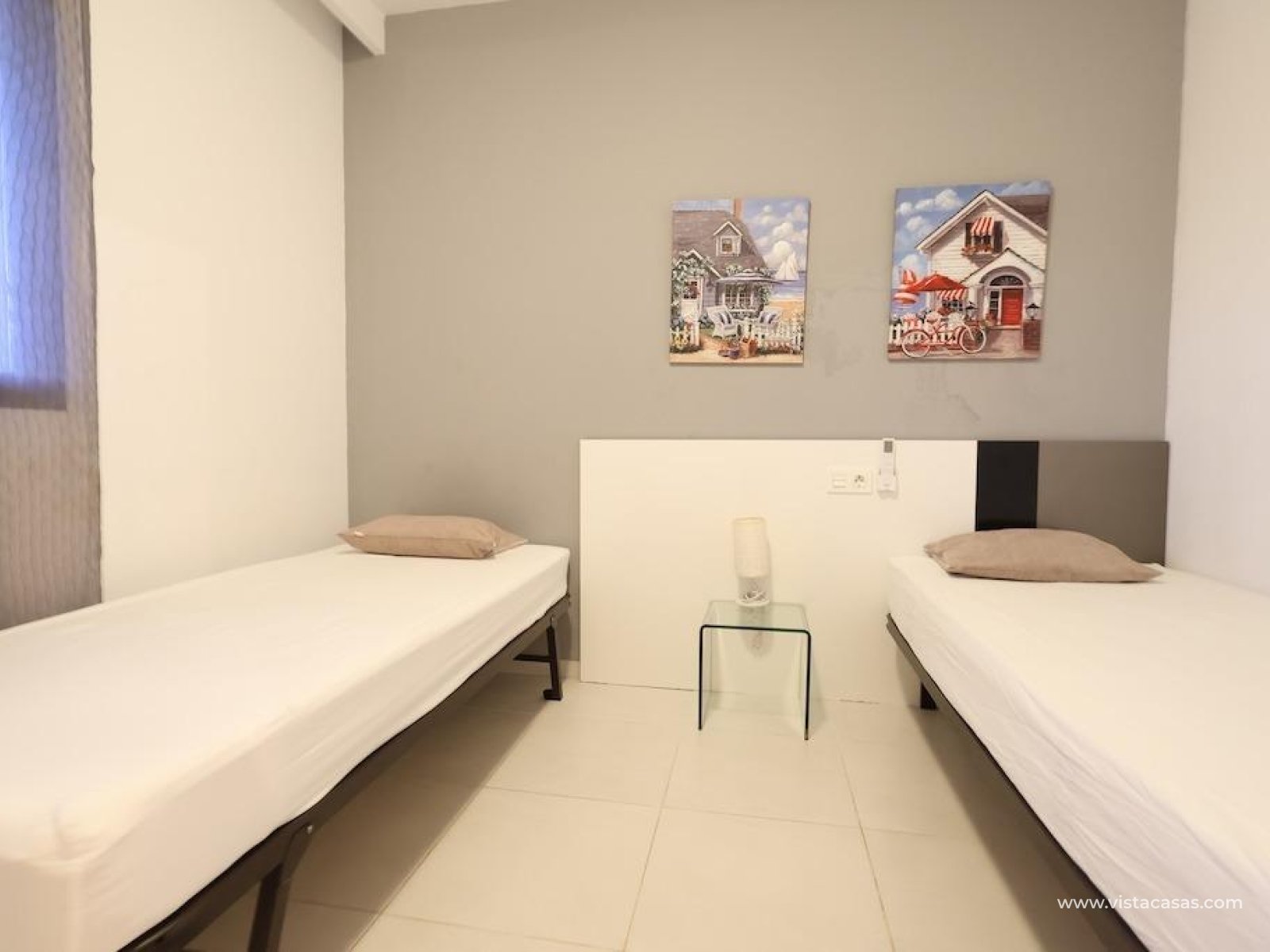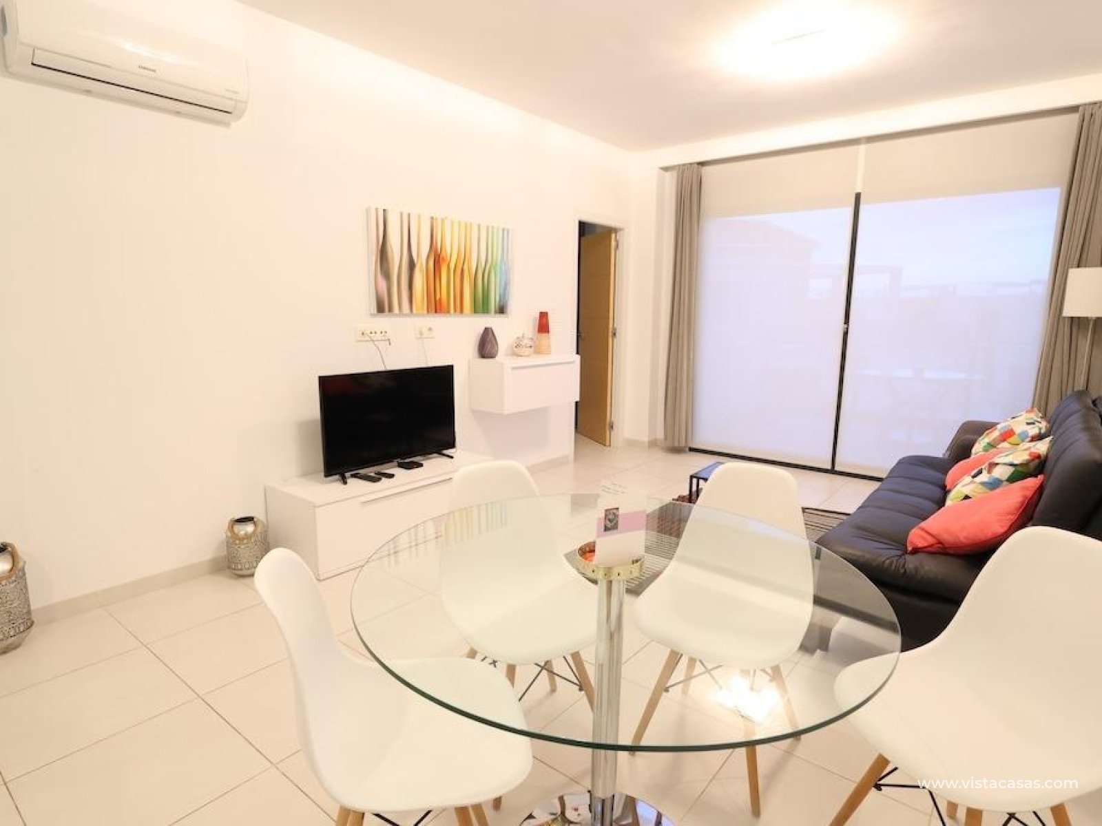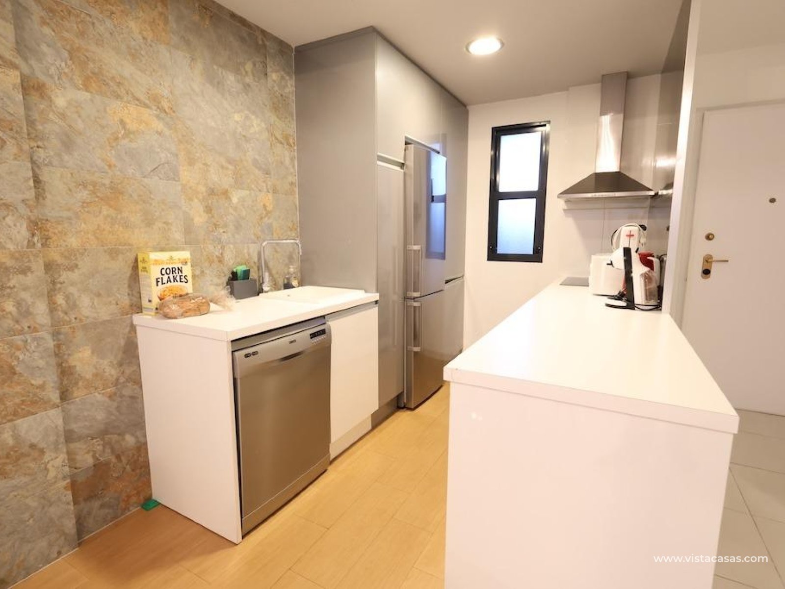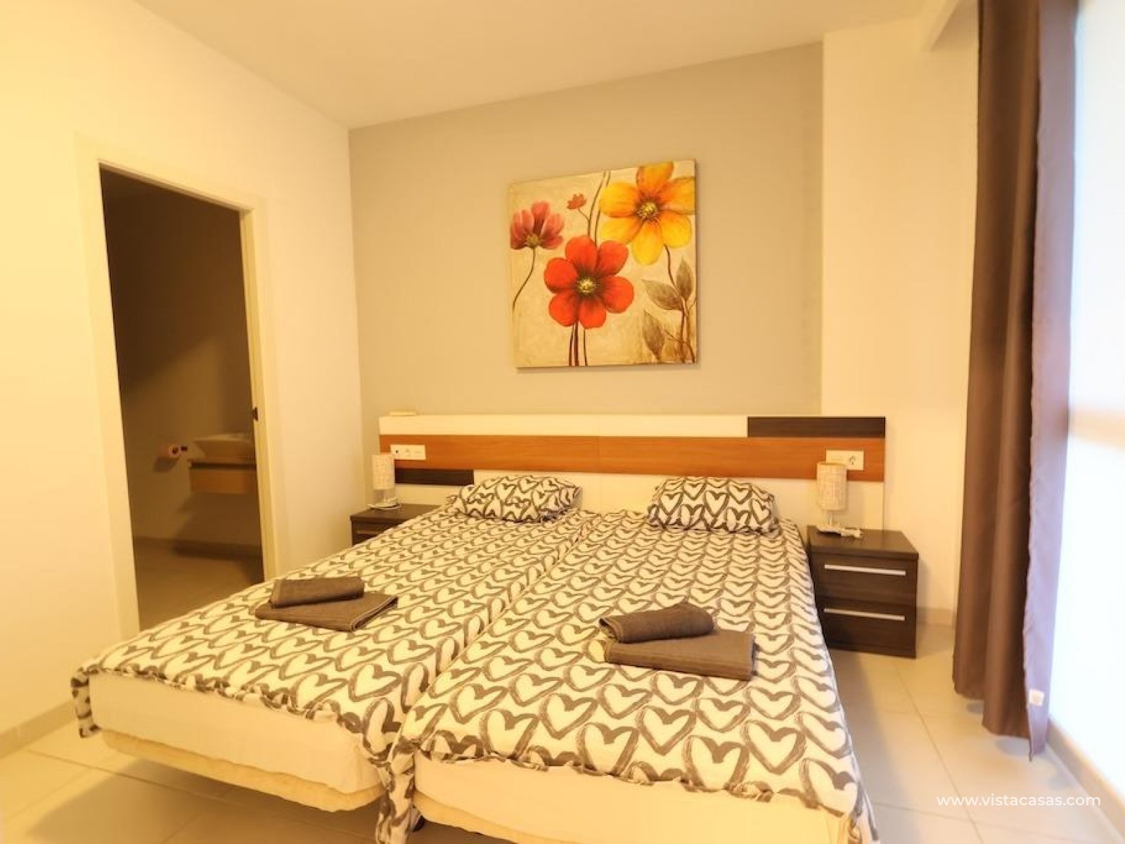 La Zenia, Residencial Sabrina.. 77 m2 south-facing apartment featuring 2 bedrooms (1 en suite), 2 bathrooms, a spacious living-dining room, an open-plan kitchen, and a terrace. The property is sold furnished and with air conditioning. It offers extensive communal areas with a community pool, as well as a storage room and parking. The apartment has a tourist licence and currently generates excellent returns.