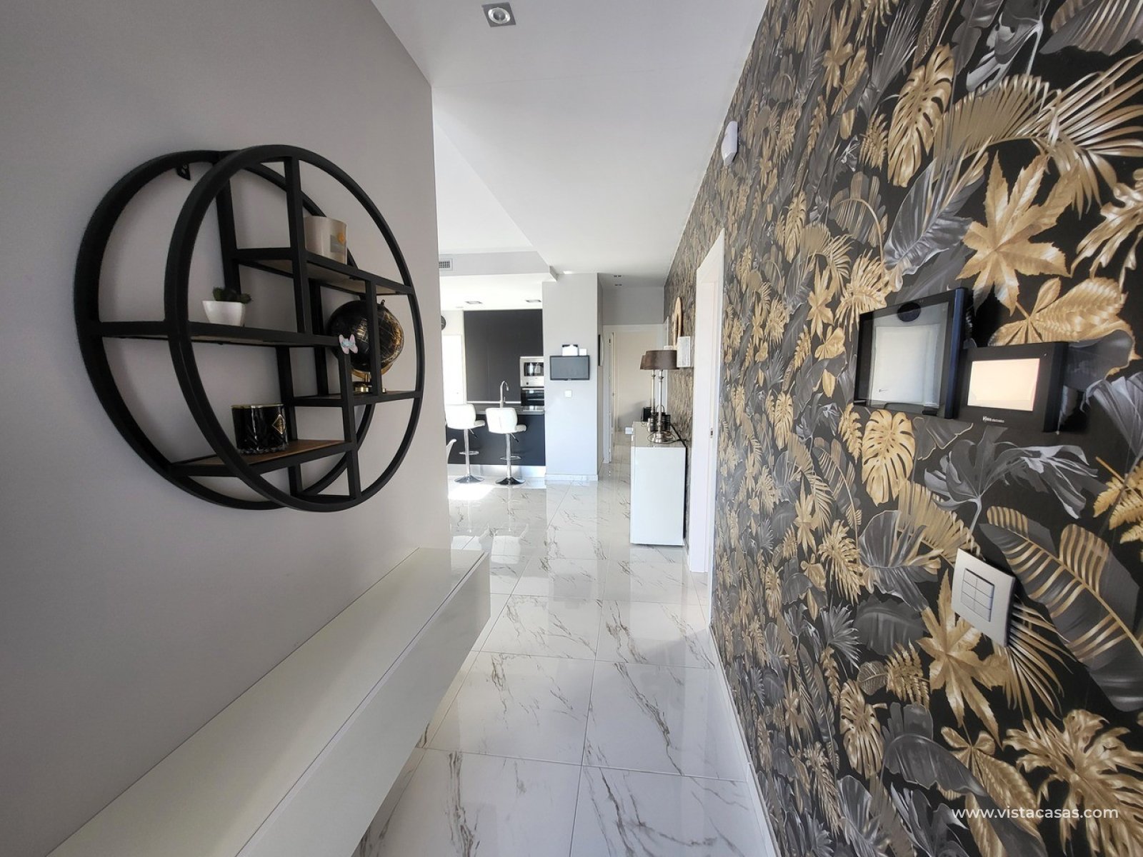 Discover this stunning luxury single-storey villa, located in the sought-after Pink Paradise urbanisation. Designed to combine elegance, comfort and cutting-edge technology, this exclusive property offers an exceptional lifestyle. The villa features 3 spacious bedrooms with built-in wardrobes and 2 bathrooms, including a master en-suite. The bright and generous open-plan living and dining area is flooded with natural light thanks to large glass doors opening onto the garden. The fully equipped open-plan kitchen blends seamlessly into the living space, while a separate laundry room provides a practical area for a washing machine. This is a smart home, equipped with customised home automation technology, offering enhanced comfort, decentralised management, increased security and excellent energy efficiency. Outside, the property boasts a beautiful private swimming pool and an impressive 104 m² private solarium, a true outdoor oasis complete with a fully equipped outdoor kitchen, awning, spa, and breathtaking views over the Torrevieja salt lakes. The villa includes a wide range of premium extras, such as: Outdoor kitchen Awning on the solarium External storage room Alarm system Security cameras Full home automation Video intercom Individual air conditioning in each room Outdoor plants and landscaping Wi-Fi on the solarium Ideally located close to Villamartín Golf Course, the property offers easy access to supermarkets, bars, restaurants and shops. The beaches of La Zenia and the Zenia Boulevard shopping centre are just 10 minutes by car, as are several prestigious golf courses. A rare opportunity to acquire an exceptional villa in an idyllic setting.