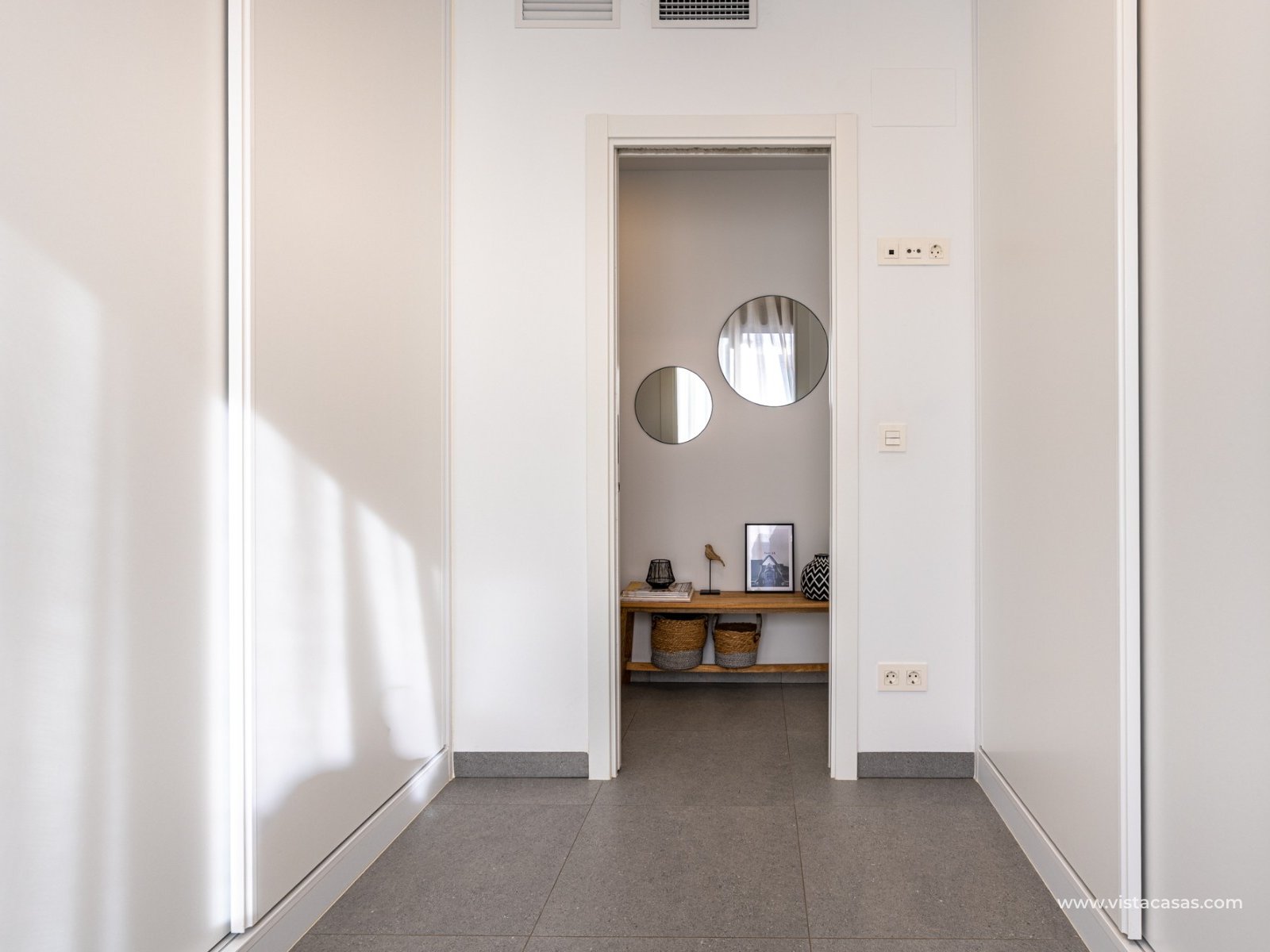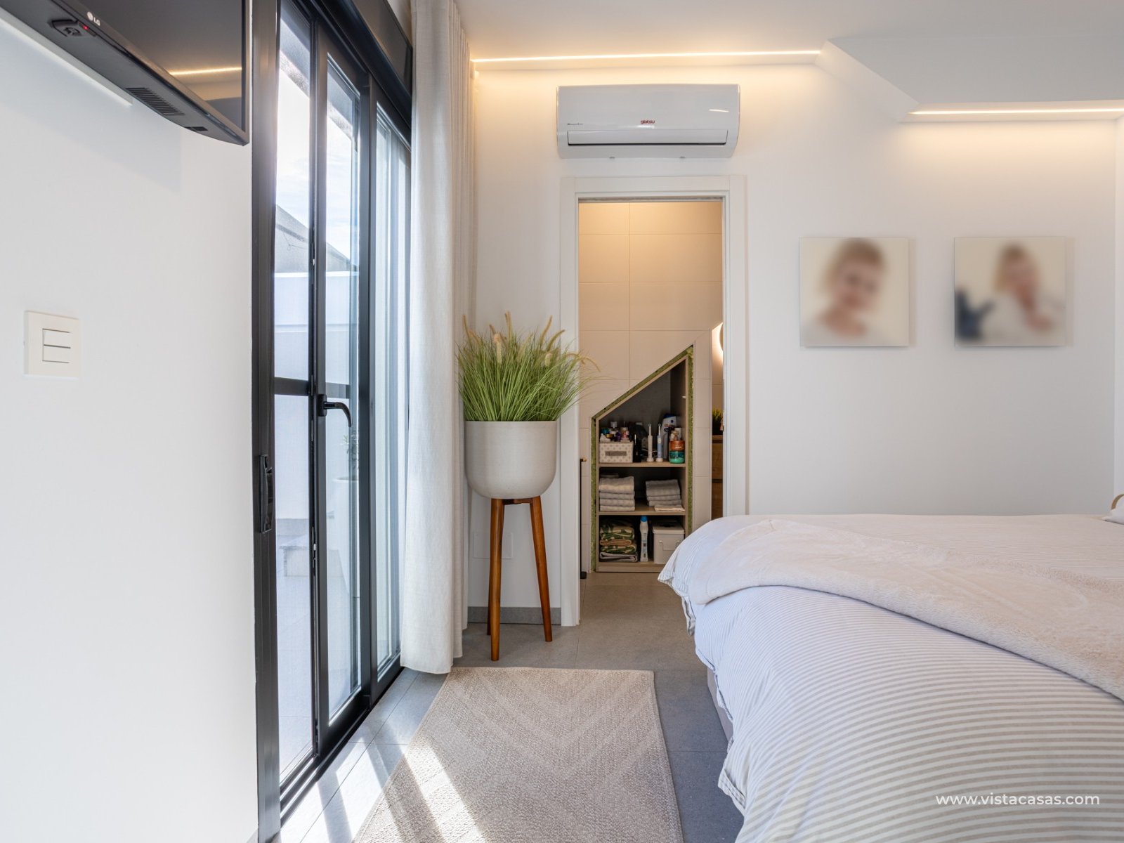 This charming detached villa offers the perfect balance of comfort, privacy, and Mediterranean living, located in a quiet residential area of Torre-Pacheco, just minutes from all amenities. Built on a 151.71 m² private plot, the property has 85 m² of constructed space, all on one level, making it practical, accessible, and easy to maintain. The villa is designed to make the most of natural light thanks to its East orientation, ensuring bright interiors throughout the day. Inside, the home features three spacious bedrooms, all with built-in wardrobes, and two modern bathrooms, one of which is ensuite to the master bedroom. there is also a laundry and extra wardrobe area, very useful yet discreet. The open-plan kitchen flows seamlessly into the living and dining area, creating a welcoming and functional space ideal for both everyday living and entertaining guests. The property is in excellent condition, ready to move into, and is sold fully furnished, including appliances and air conditioning for year-round comfort. Outdoors is where this villa truly shines. The property boasts a private swimming pool, surrounded by a well-proportioned garden area, perfect for relaxing, sunbathing, or enjoying outdoor meals. A covered porch provides a shaded seating area, while the terrace and solarium offer additional space to enjoy the sun, entertain, or simply unwind with open views and privacy. There is a shade area upstairs on the solarium, along with an exterior kitchen, perfect for barbeques. The home also includes private parking within the plot and an intercom system for added security. Prime LocationBeaches: 20 minutesMurcia International Airport: 15 minutesLeisure areas, shops & restaurants: 5 minutesGolf courses: 5 minutes This property is ideal as a permanent residence, holiday home, or rental investment, thanks to its excellent location, outdoor space, and move-in-ready condition. A fantastic opportunity to enjoy the Costa Cálida lifestyle with comfort, sunshine, and privacy.